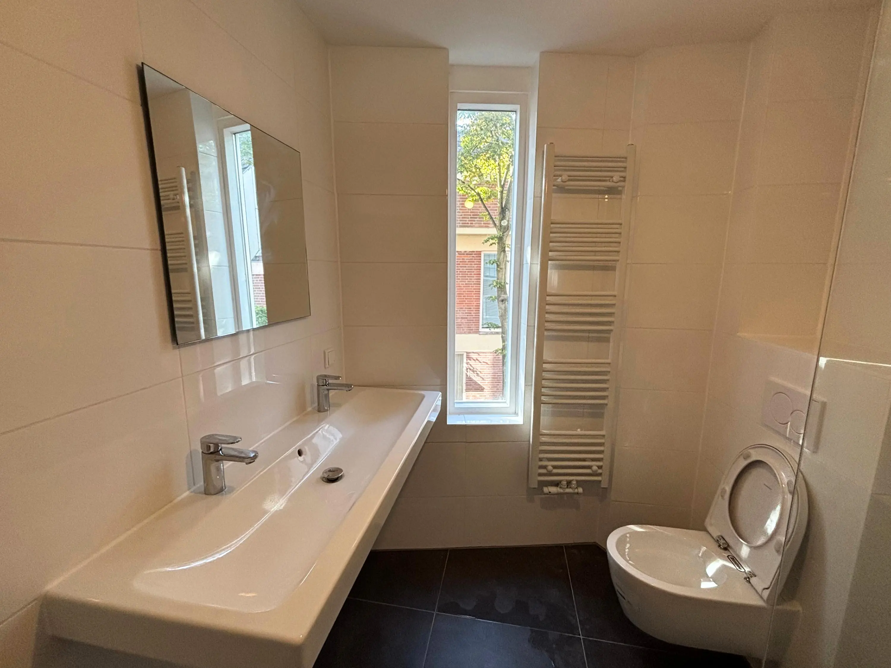 De badkamer, bereikbaar vanaf de overloop, is voorzien van een inloopdouche, toilet, wastafel en handdoekenradiator. Op de tweede verdieping bevinden zich twee ruime en lichte slaapkamers, plus een extra kamer die ideaal kan worden ingericht als studeerkamer.