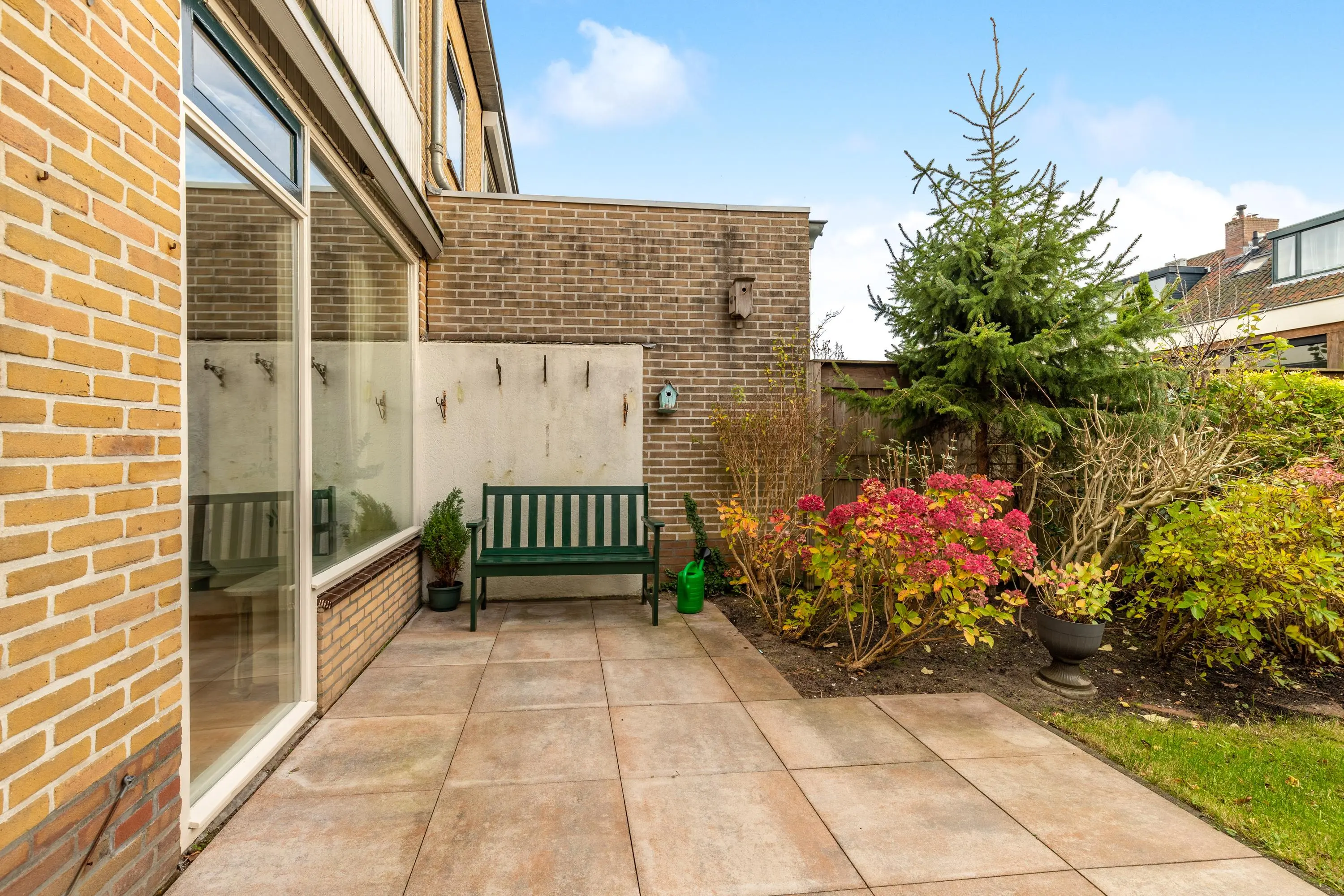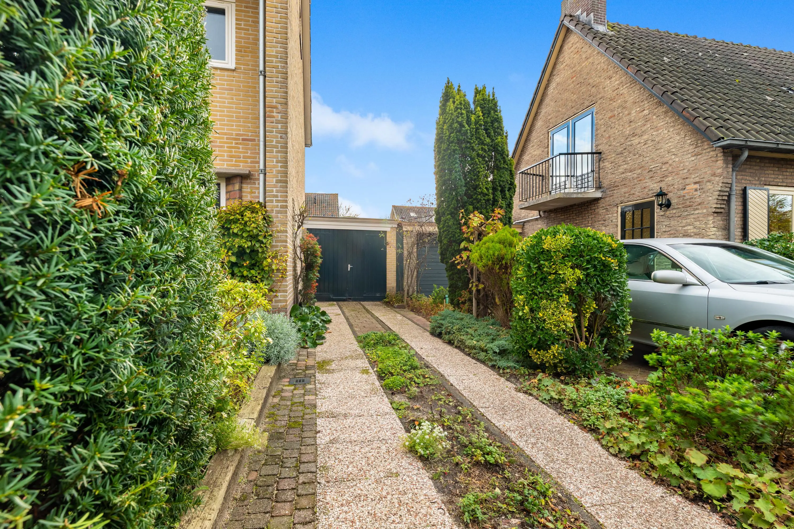 De woning beschikt over een eigen oprit met ruimte voor twee auto's. De royale voortuin biedt veel privacy en de mogelijkheid om deze naar eigen smaak in te richten. De achtertuin ligt op het zuidwesten, waardoor je hier vrijwel de hele dag van de zon kunt genieten. De garage is zowel via de voorzijde als via de zijdeur in de achtertuin te bereiken en is met zijn diepte van ruim tien meter bijzonder ruim. Het achterste deel is handig afgescheiden als aparte berging.