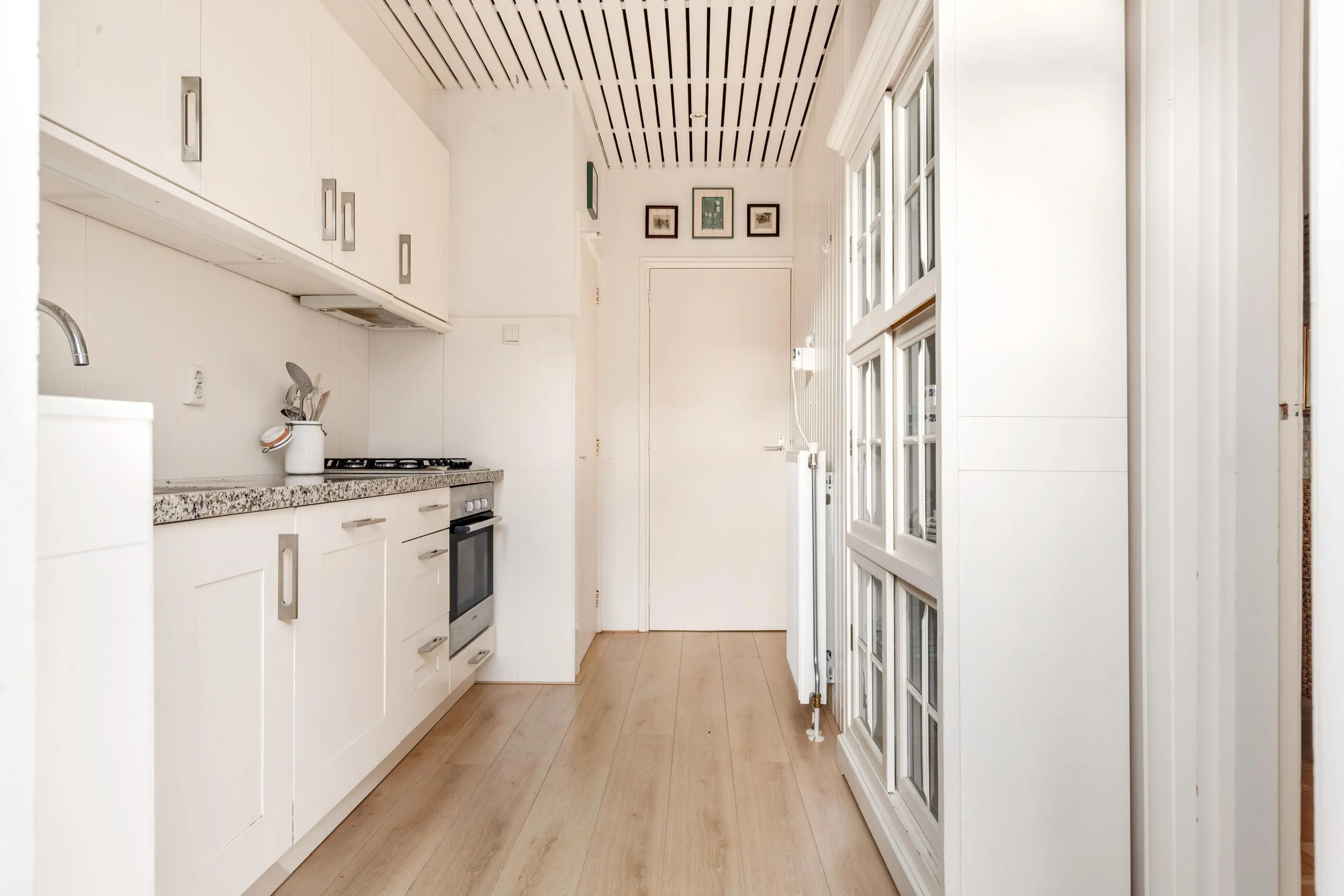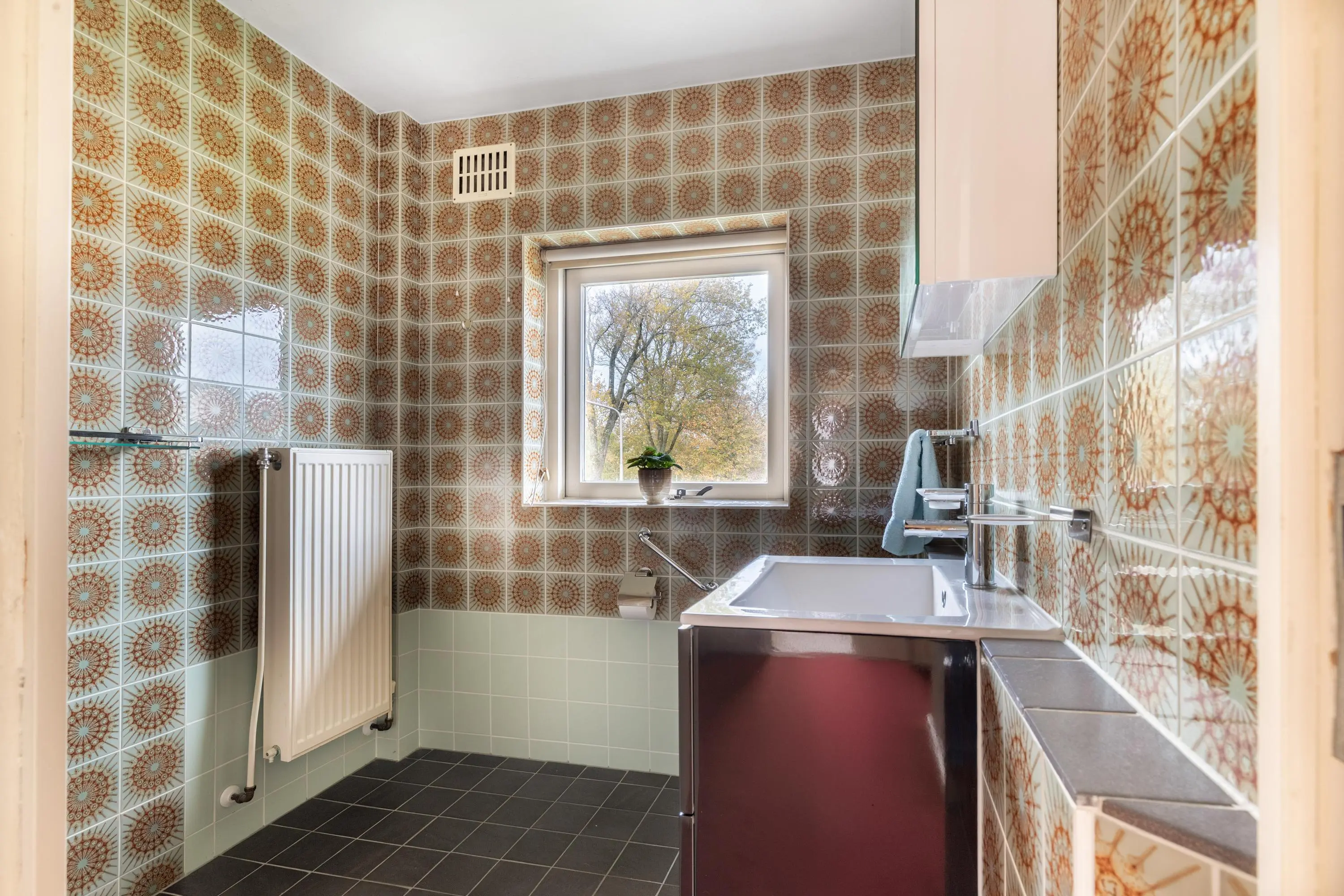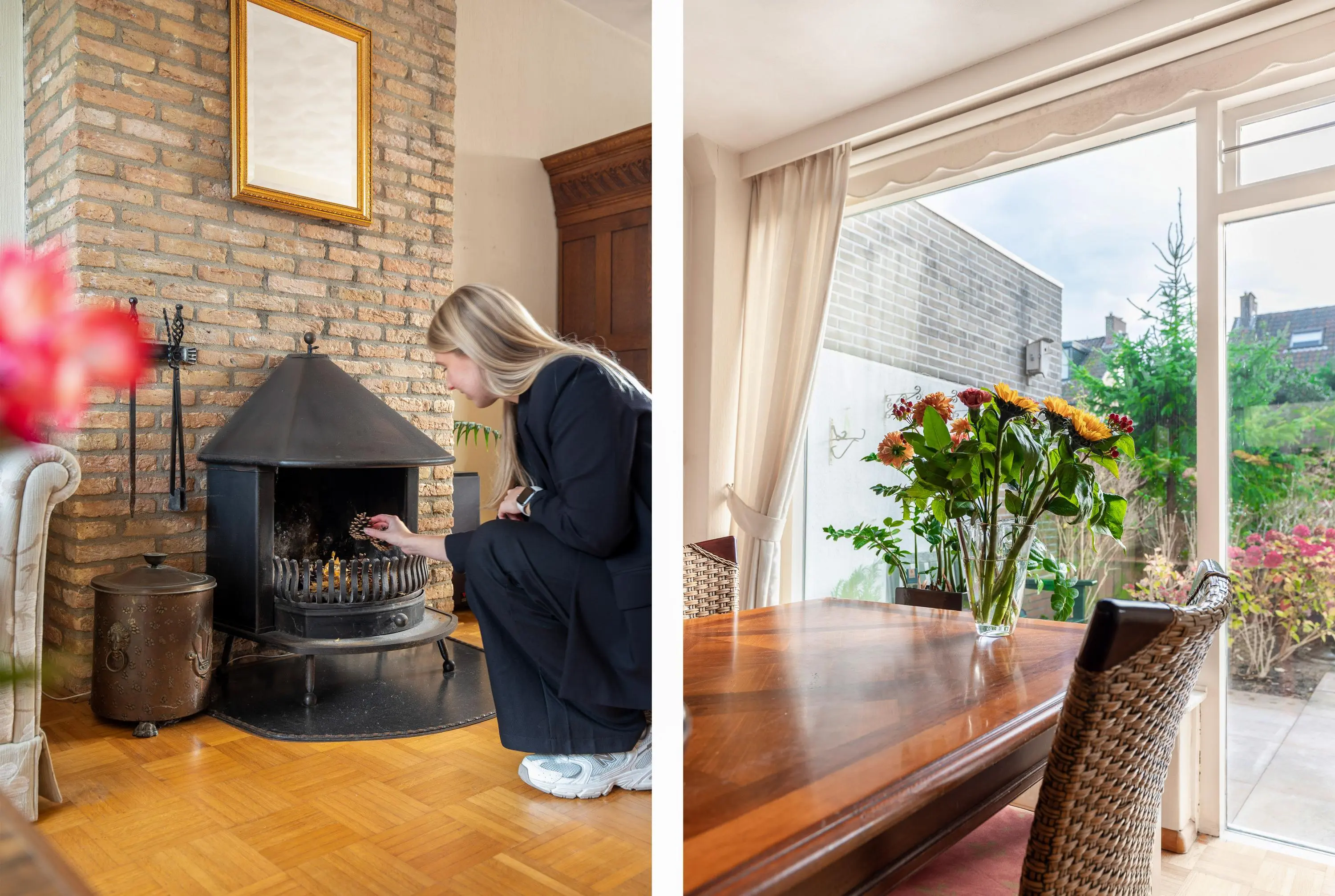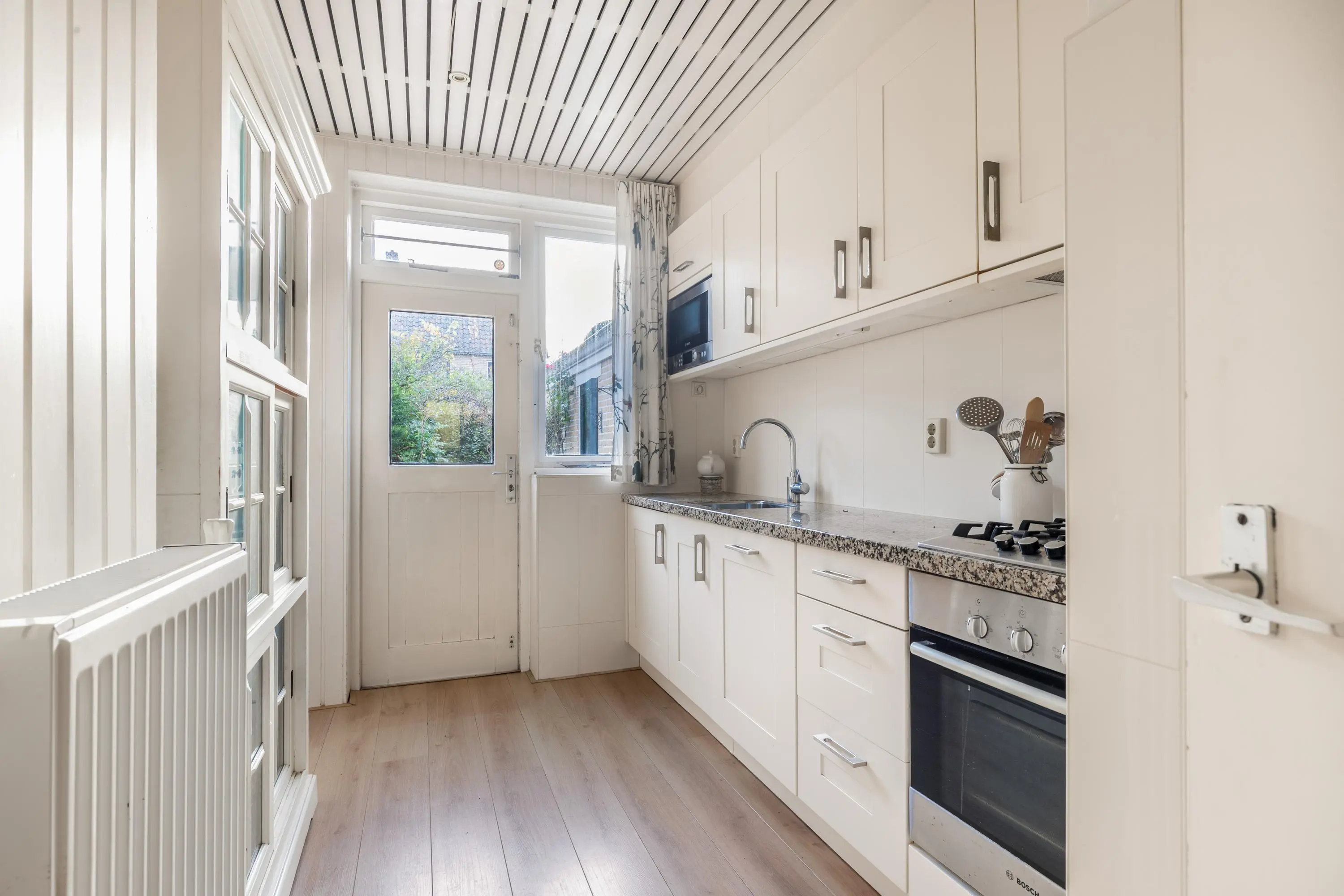 Via de entree kom je in de hal met toegang tot de meterkast, het toilet, de trapopgang, woonkamer en keuken. De doorzonwoonkamer is heerlijk licht dankzij de grote raampartijen aan de voor- en achterzijde. In het midden van de ruimte zorgt een gezellige houthaard voor extra sfeer. Aan de achterzijde ligt de keuken, die in verbinding staat met de tuin. Met een doorbraak naar de woonkamer is hier eenvoudig een ruime woonkeuken te realiseren. De rechte keuken is voorzien van een magnetron, oven, 4-pits gasfornuis, afzuigkap en vaatwasser. Via de loopdeur stap je zo de zonnige tuin in.