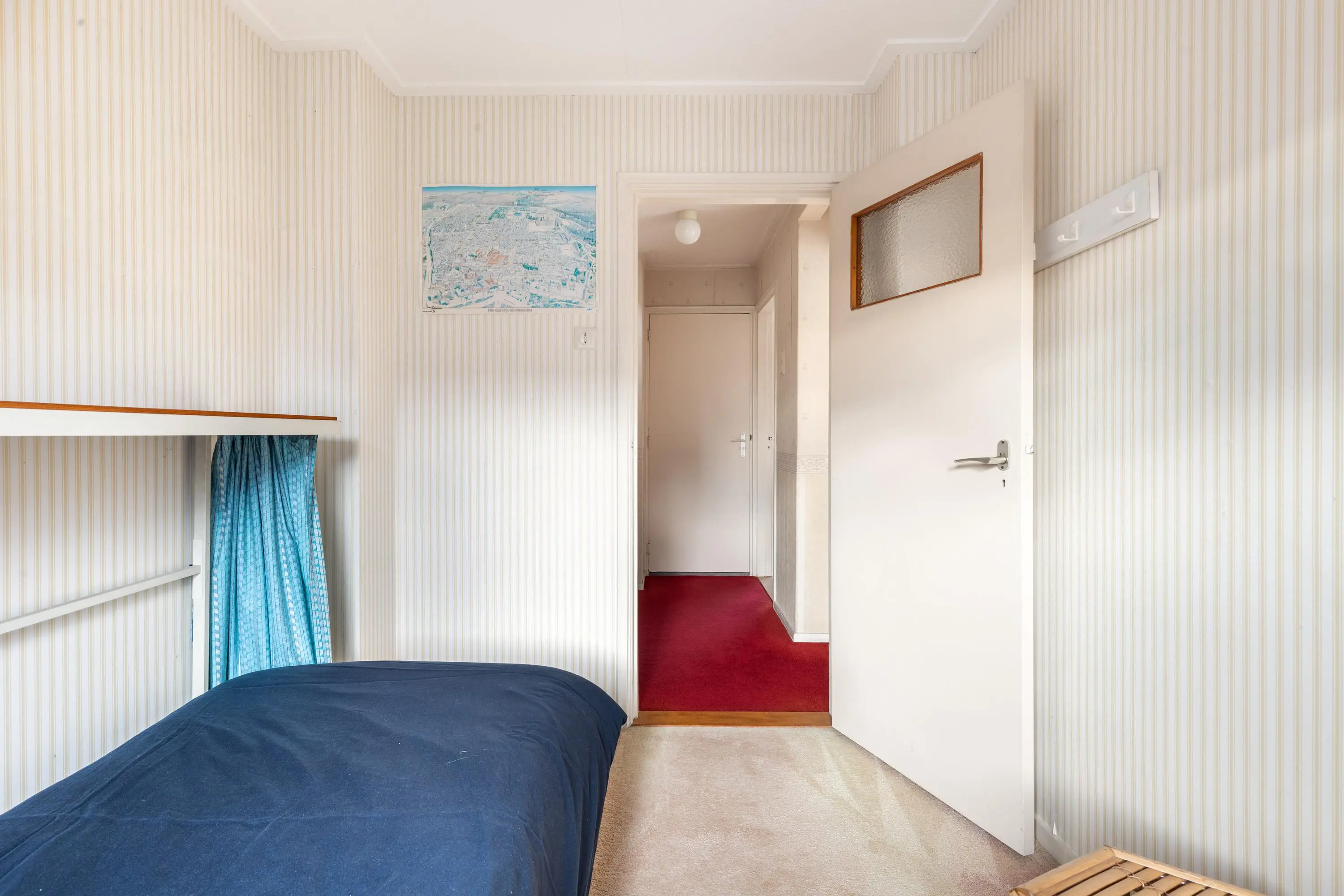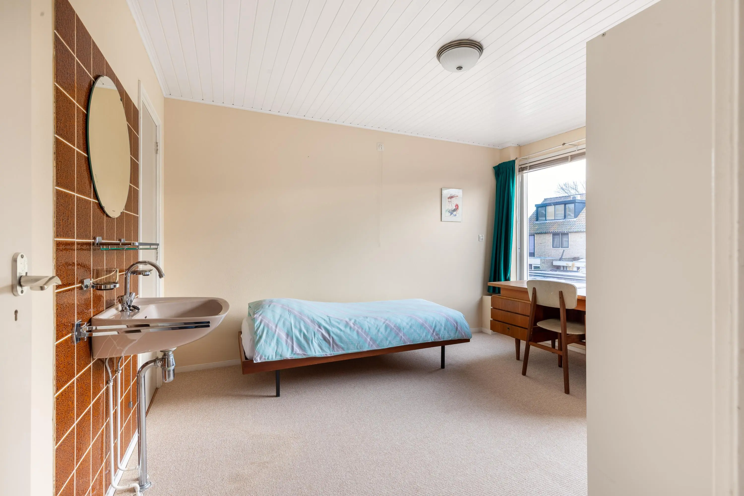 Op de eerste verdieping bevinden zich drie slaapkamers. De kamer aan de voorzijde beschikt over een charmant balkon en een wastafelmeubel. De badkamer is eenvoudig ingericht met een douche, wastafelmeubel en een broyeurtoilet. Op de tweede verdieping bevindt zich een ruime vierde slaapkamer, mede dankzij de dakkapel aan de achterzijde. Vanaf de overloop zijn de technische ruimte en een handige bergkast bereikbaar. In de technische ruimte vind je de cv-ketel en aansluitingen voor wasmachine en droger.