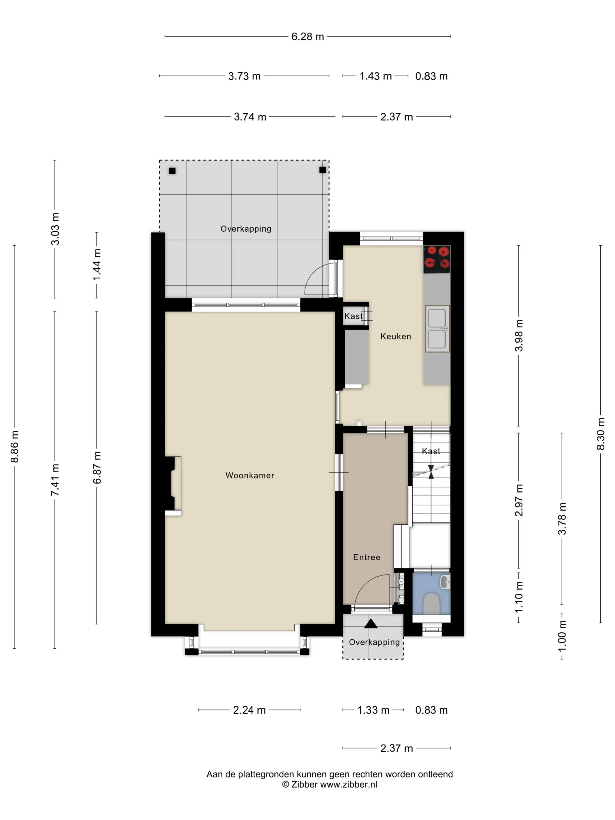 - bijzondere breedte van de woning (lees= 6.25 meter)