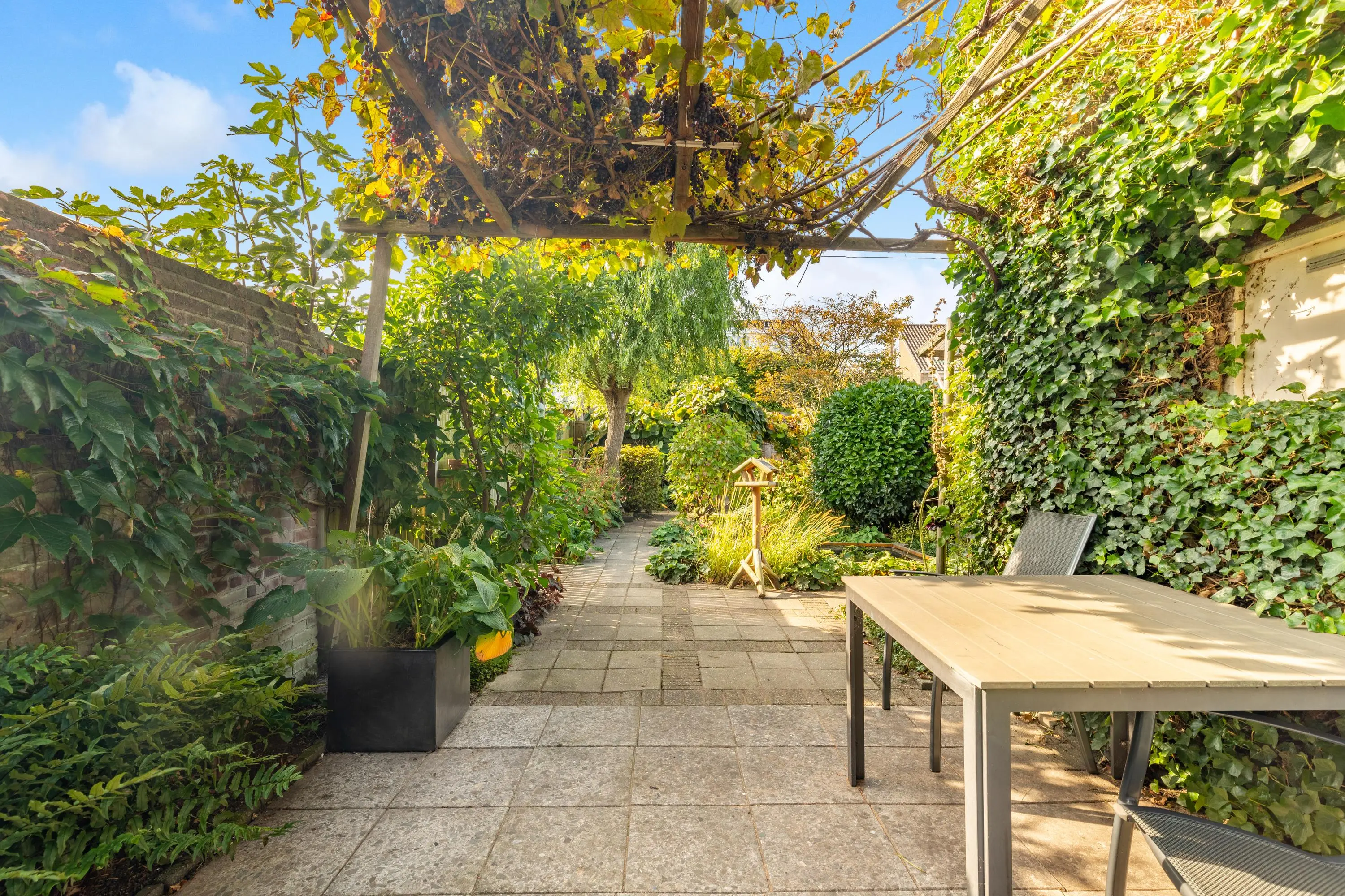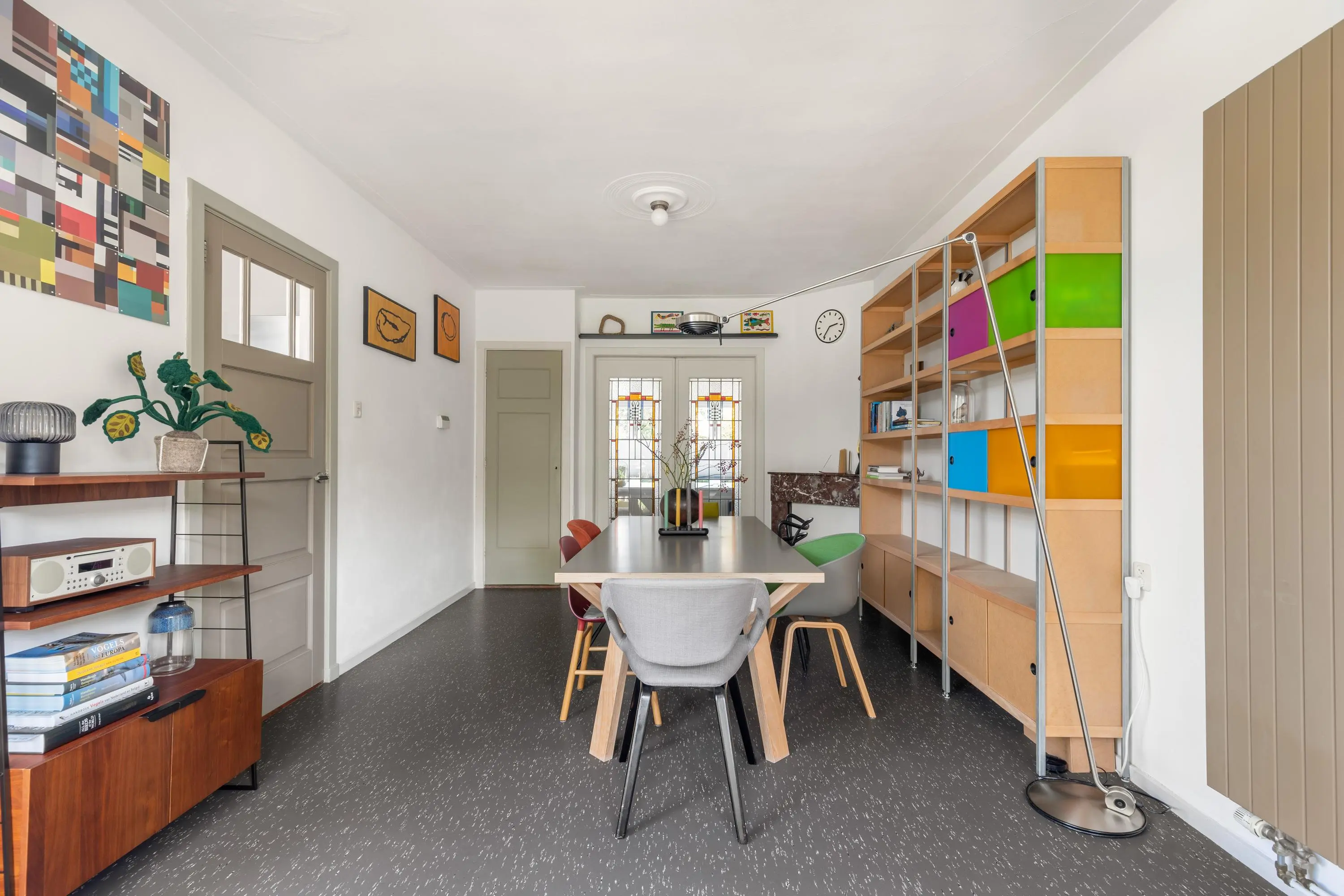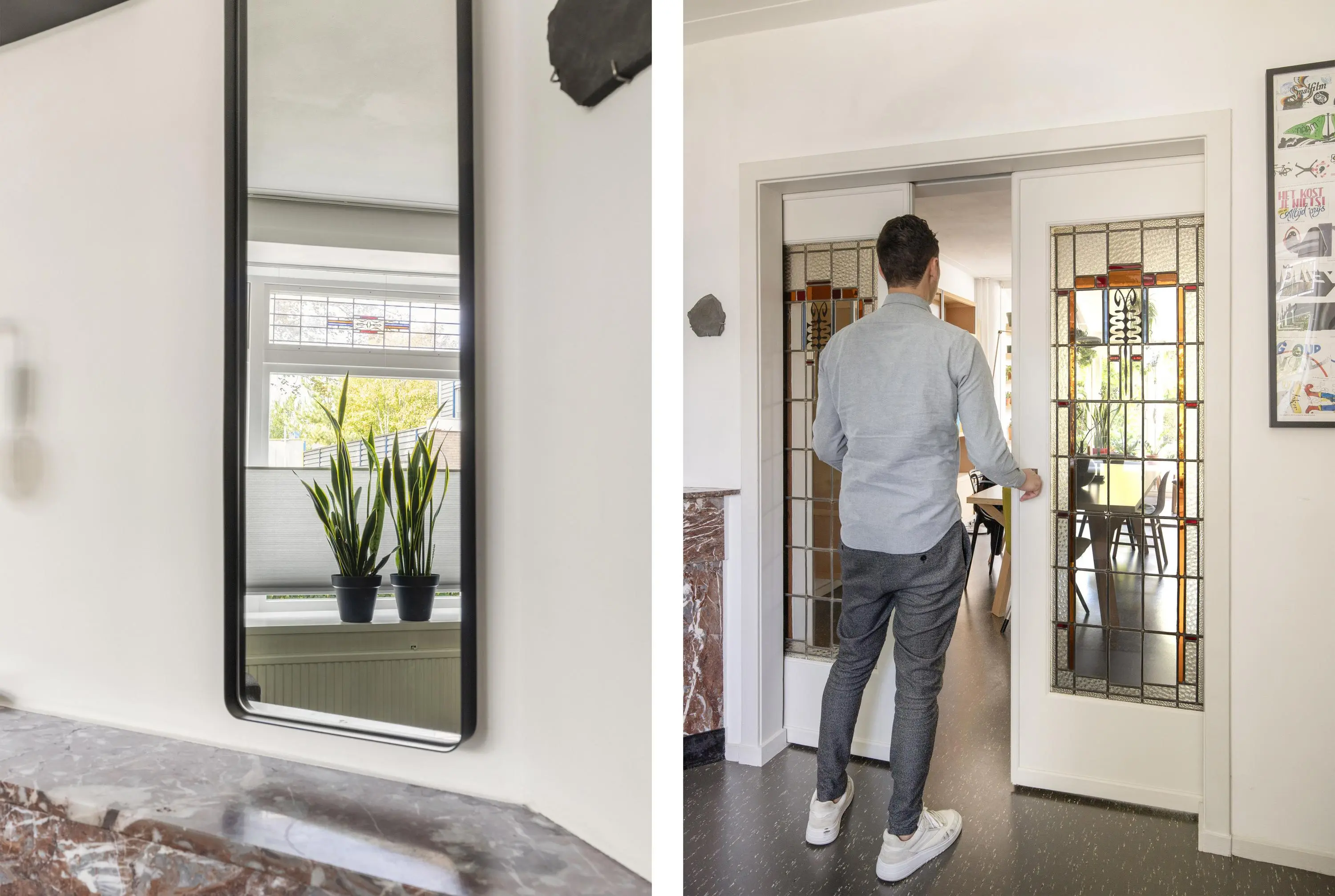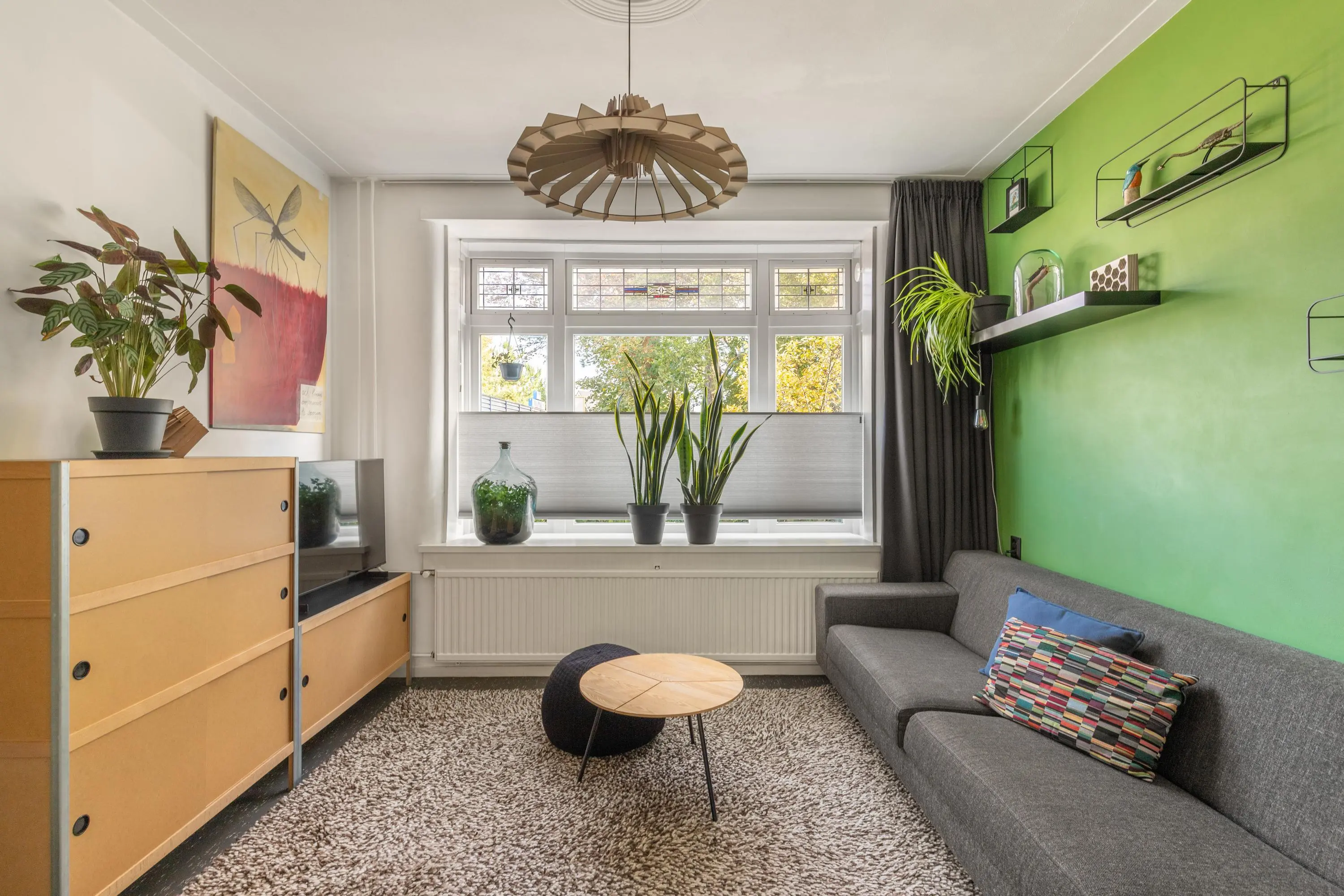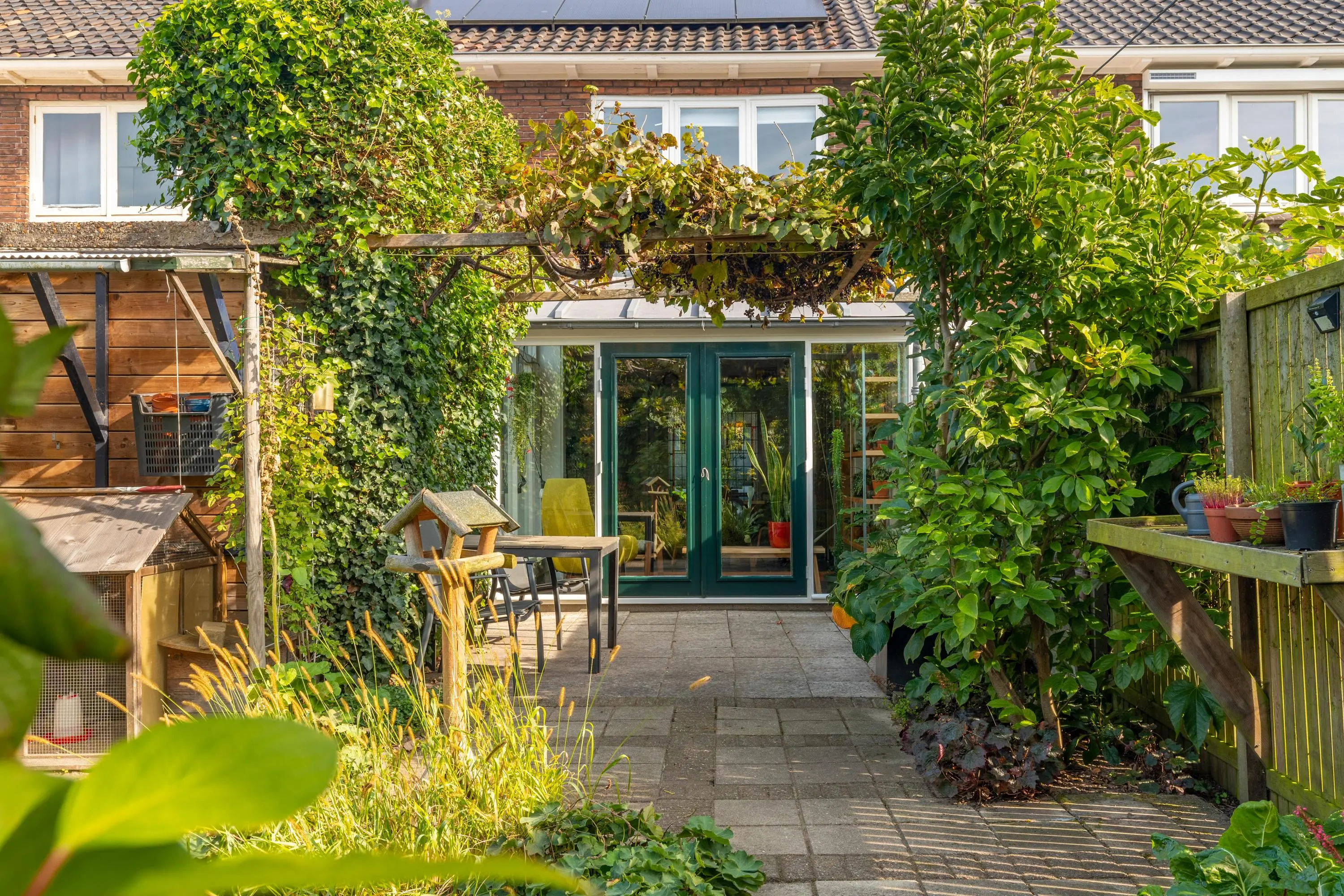 Bij binnenkomst valt direct op hoe open en licht de woning aanvoelt. De prachtige glas-in-looddeuren geven de ruimte extra karakter en de woonkamer biedt bovendien een prettige doorloop naar de zonnige tuinkamer en de fraai aangelegde achtertuin. De keuken bevindt zich aan de achterzijde van de woning en is voorzien van diverse inbouwapparatuur, waaronder een inductie kookplaat, afzuigkap, heteluchtoven en koel-vriescombinatie. De keuken biedt daarnaast ook toegang tot de achtertuin.