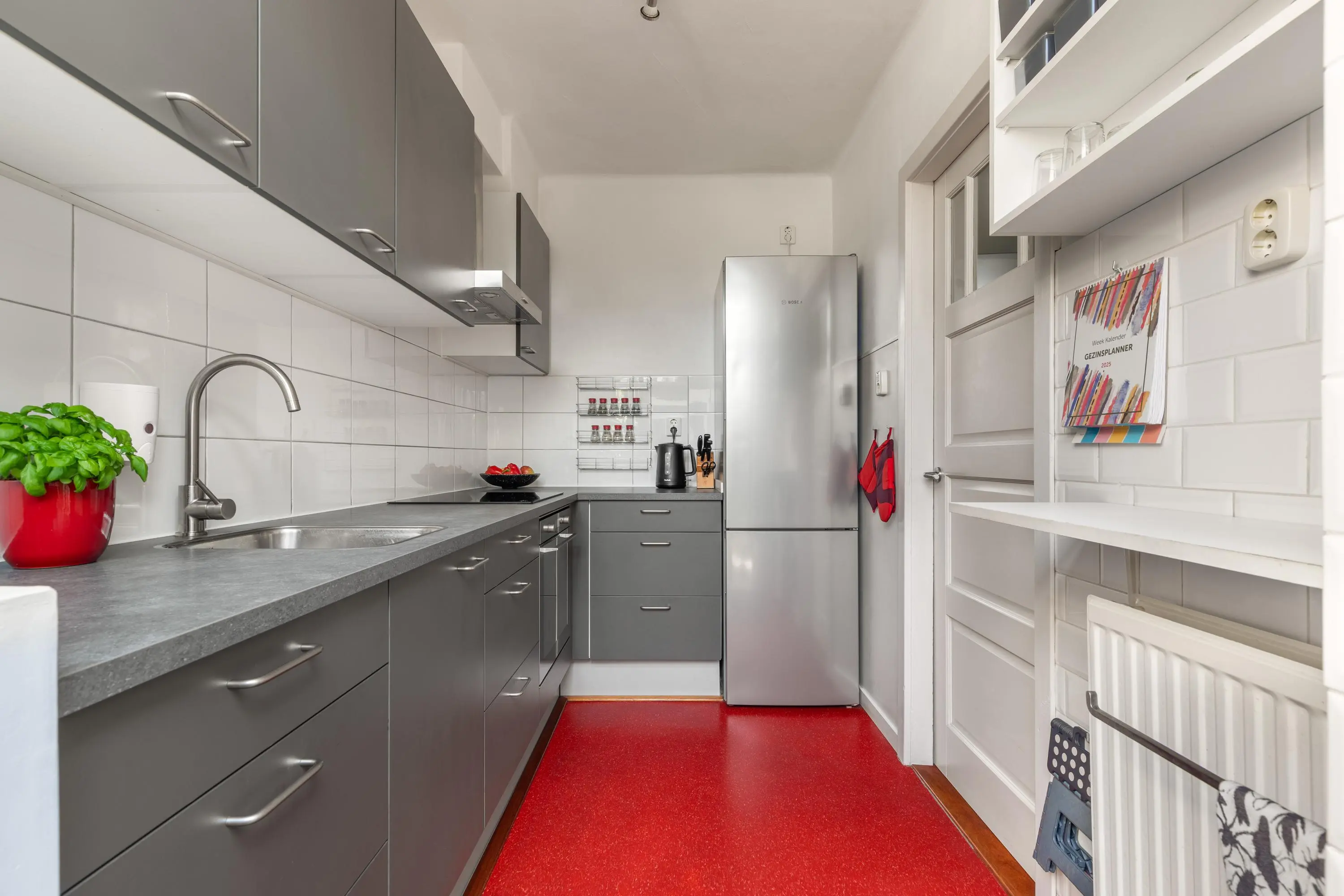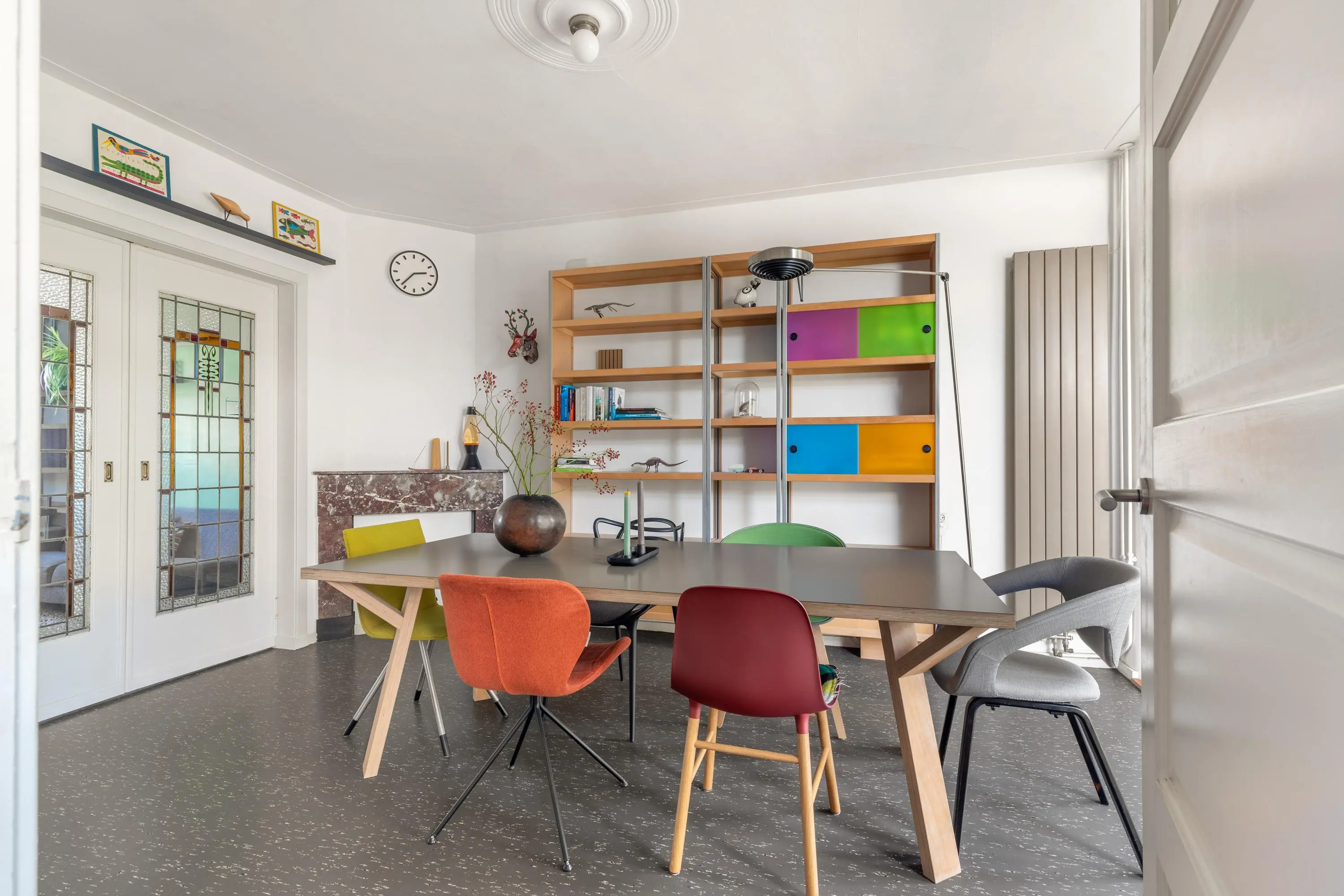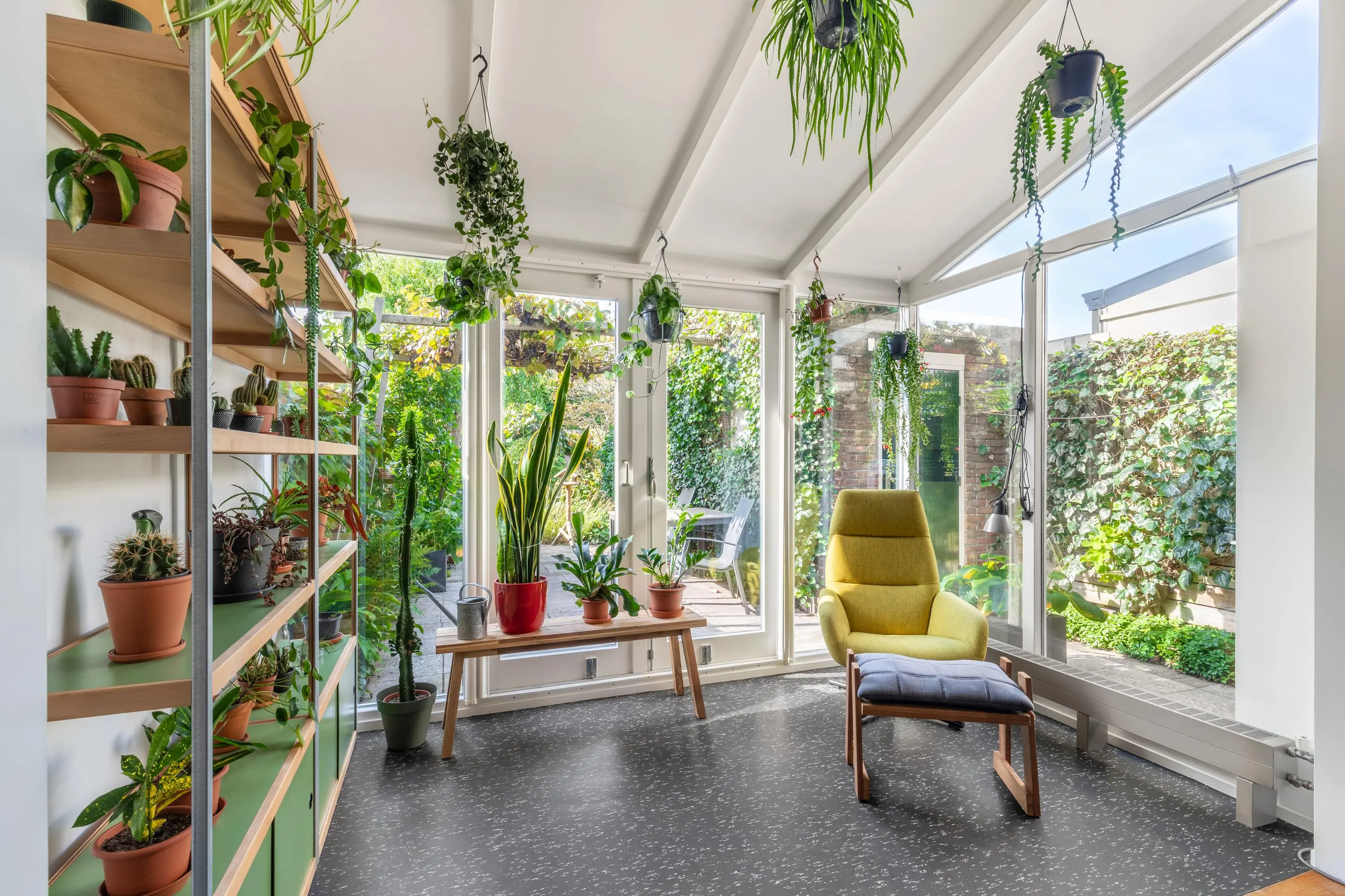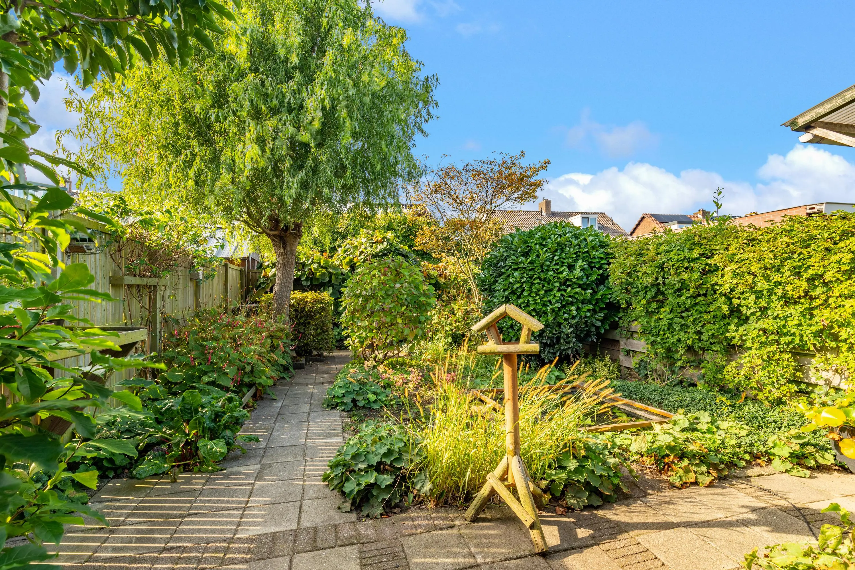 Bij binnenkomst valt direct op hoe open en licht de woning aanvoelt. De prachtige glas-in-looddeuren geven de ruimte extra karakter en de woonkamer biedt bovendien een prettige doorloop naar de zonnige tuinkamer en de fraai aangelegde achtertuin. De keuken bevindt zich aan de achterzijde van de woning en is voorzien van diverse inbouwapparatuur, waaronder een inductie kookplaat, afzuigkap, heteluchtoven en koel-vriescombinatie. De keuken biedt daarnaast ook toegang tot de achtertuin.