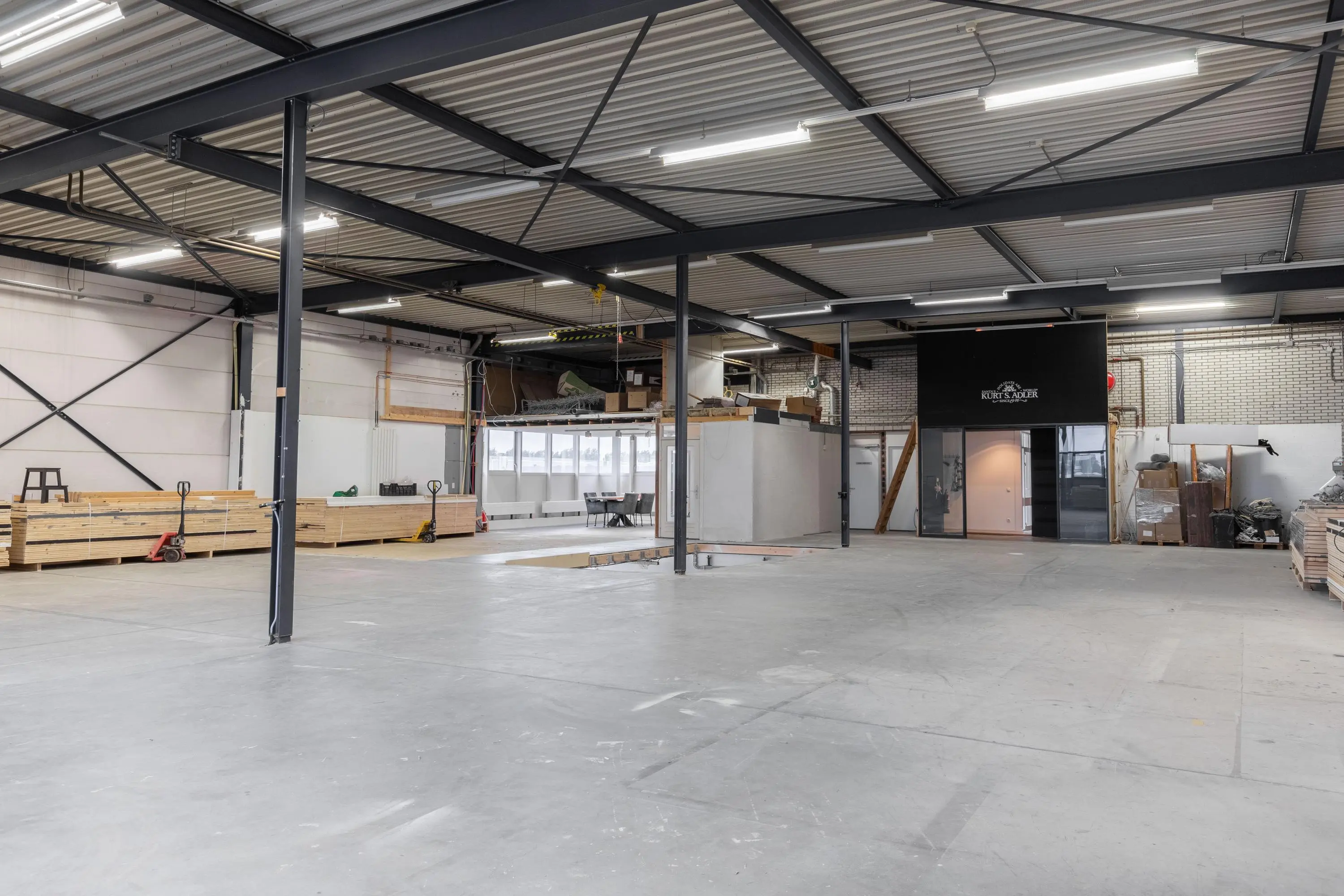 558 m² is available for ambitious entrepreneurs, including 277 m² of warehouse space, 16 m² of office/entrance space on the ground floor, and 265 m² of office space on the first floor.