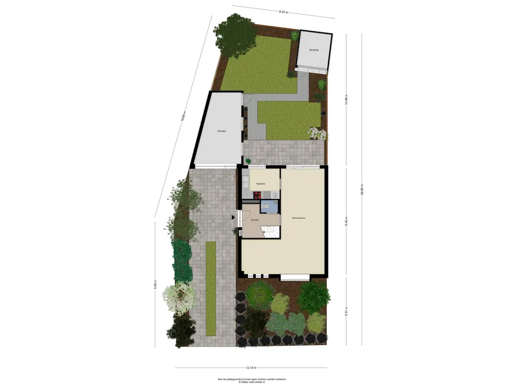 De achtertuin is gelegen op het oosten en beschikt naast de garage ook over een praktische stenen berging.