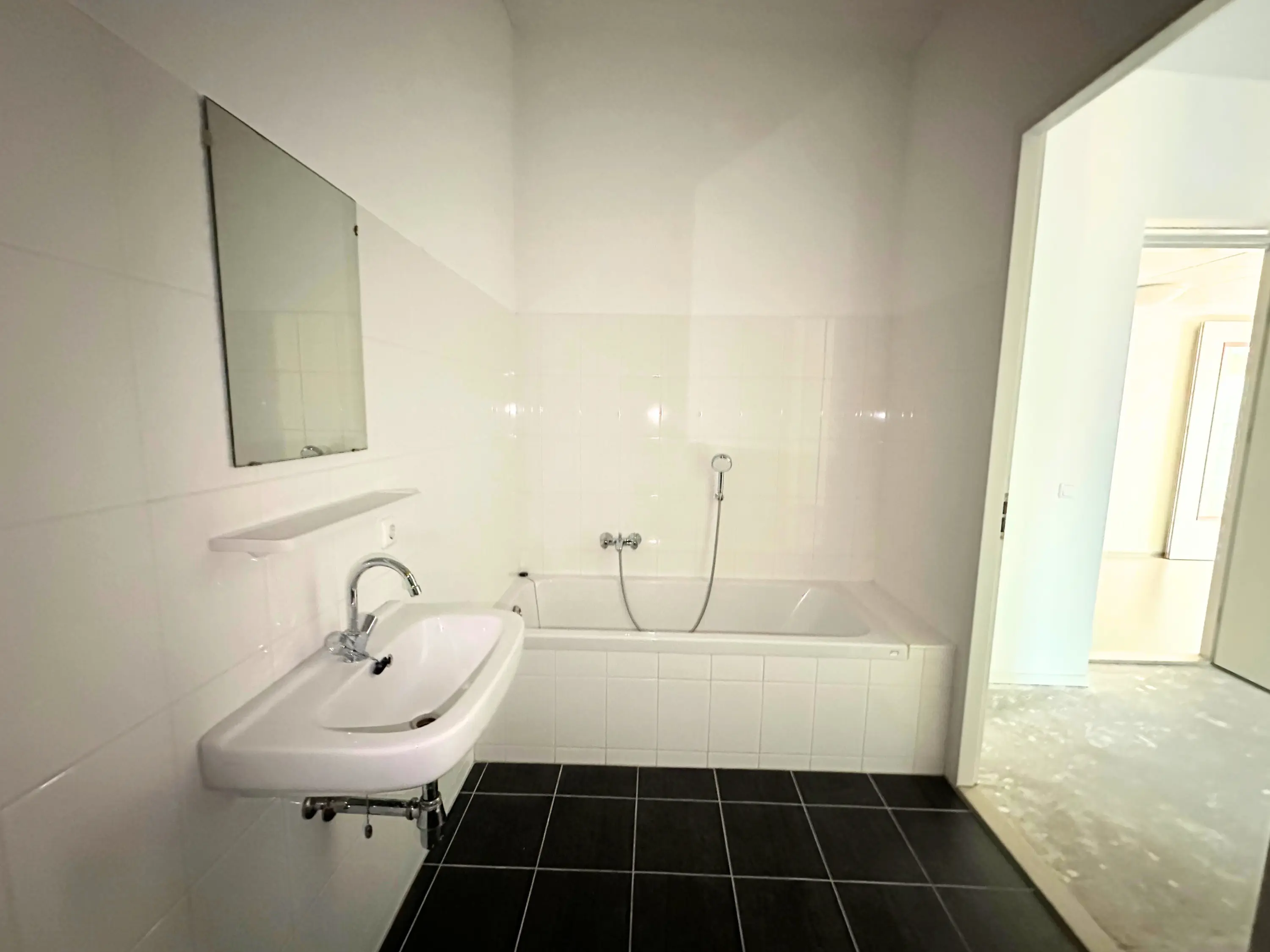 Through the central entrance with elevator and staircase, you reach the apartment on the first floor. Upon entering, you step into a spacious hallway that provides access to all rooms.