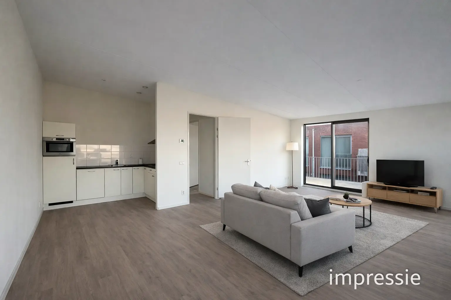De royale woonkamer is heerlijk licht dankzij de grote raampartijen en schuifpuien richting het balkon. Hier is volop ruimte voor een comfortabele zithoek en een grote eettafel. Vanuit zowel de woonkamer als de slaapkamers heb je toegang tot het balkon van circa 12 m², gelegen op het westen een fijne plek om van de middag- en avondzon te genieten.