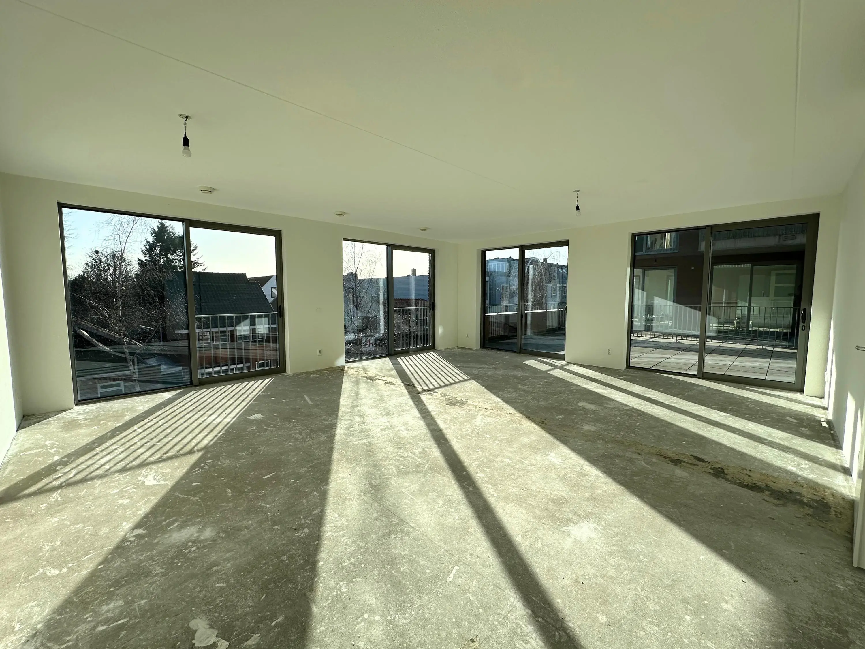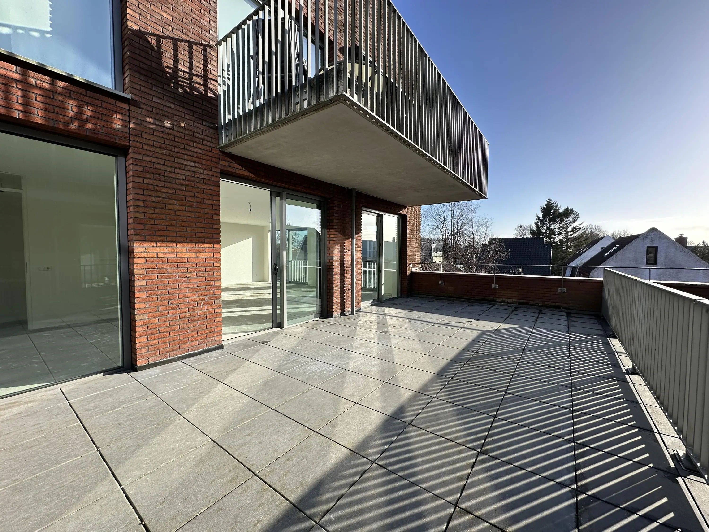 Via de schuifpui in de woonkamer bereik je het riante terras van maar liefst circa 63 m². Het terras biedt meer dan voldoende ruimte voor een loungehoek, eettafel en eventueel extra groen. Bovendien kijk je uit over de Heiligeweg.