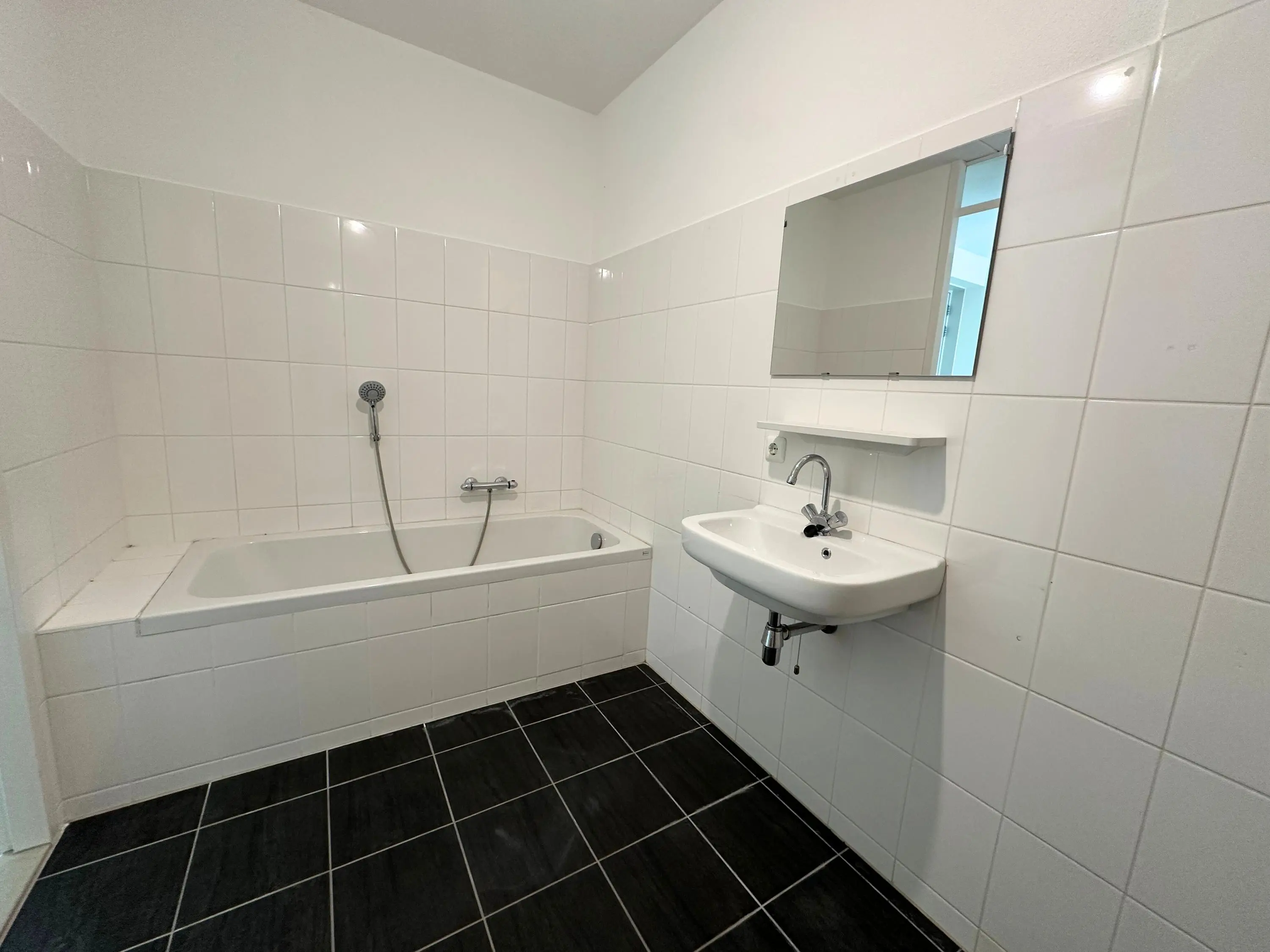 Het appartement beschikt over twee goed bemeten slaapkamers. De ruime badkamer is uitgevoerd met zowel een ligbad als een douche, een wastafel en een toilet.