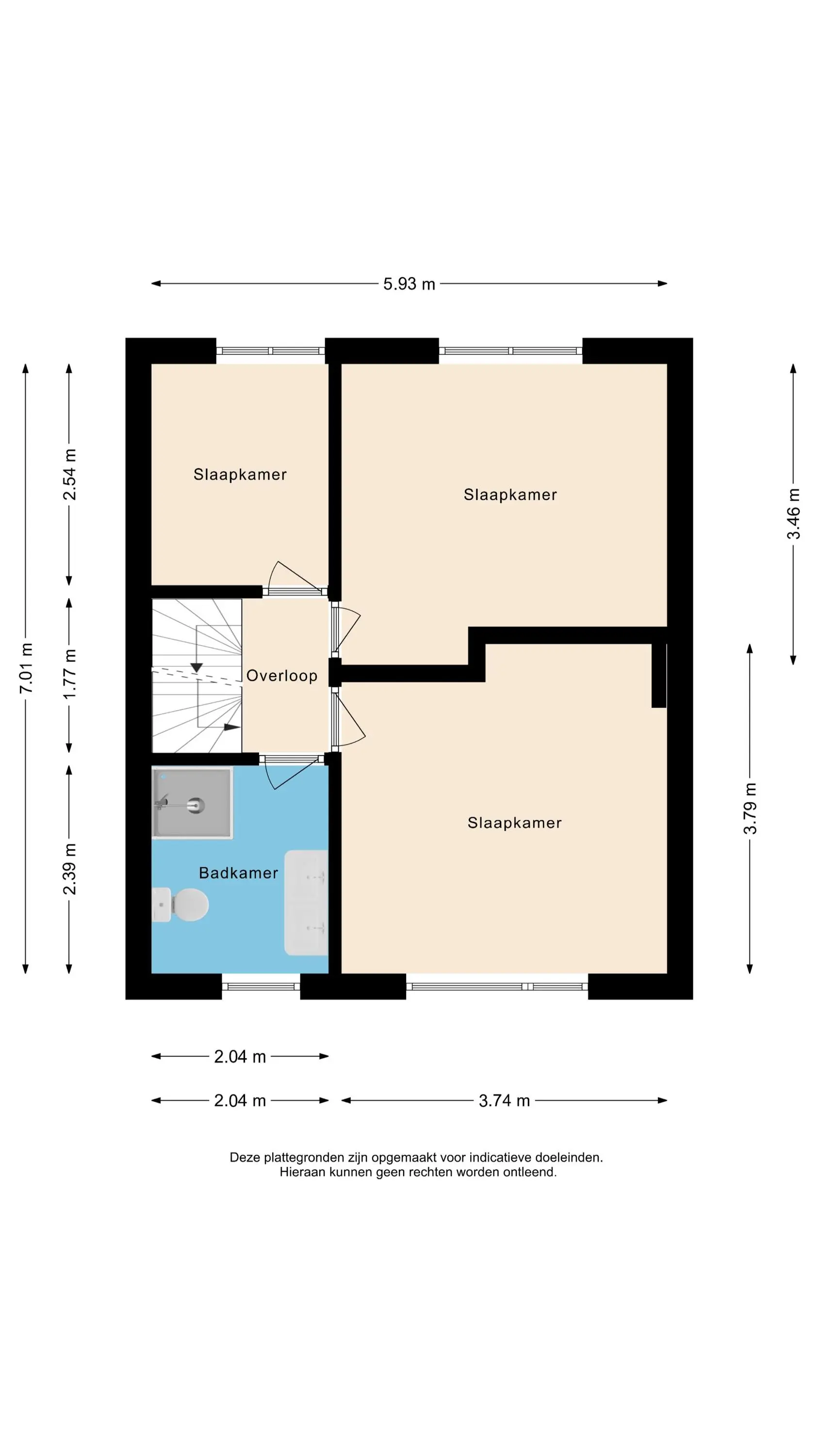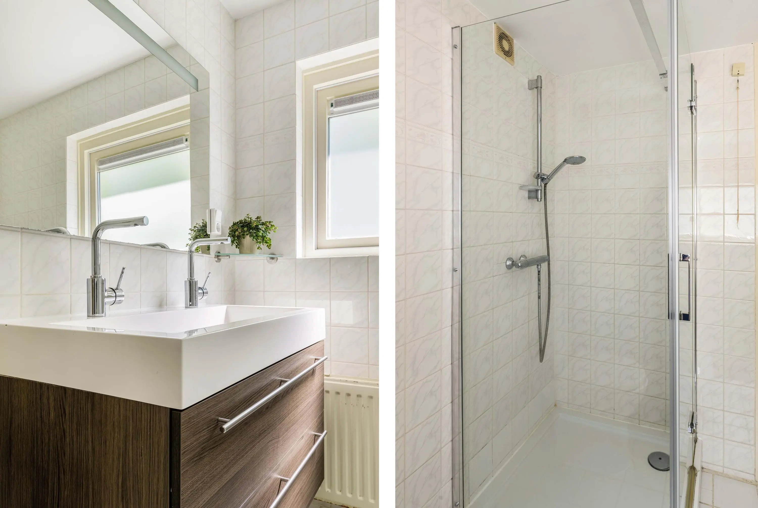Op de eerste verdieping tref je drie ruime slaapkamers. Dankzij de rolluiken houd je de kamers koel in de zomer en heerlijk donker voor een goede nachtrust. De badkamer is functioneel en voorzien van een wastafelmeubel, toilet en douche, al mag je hier qua uitstraling wellicht een moderniseringsslag verwachten. Dit biedt juist de kans om het helemaal naar eigen smaak in te richten.