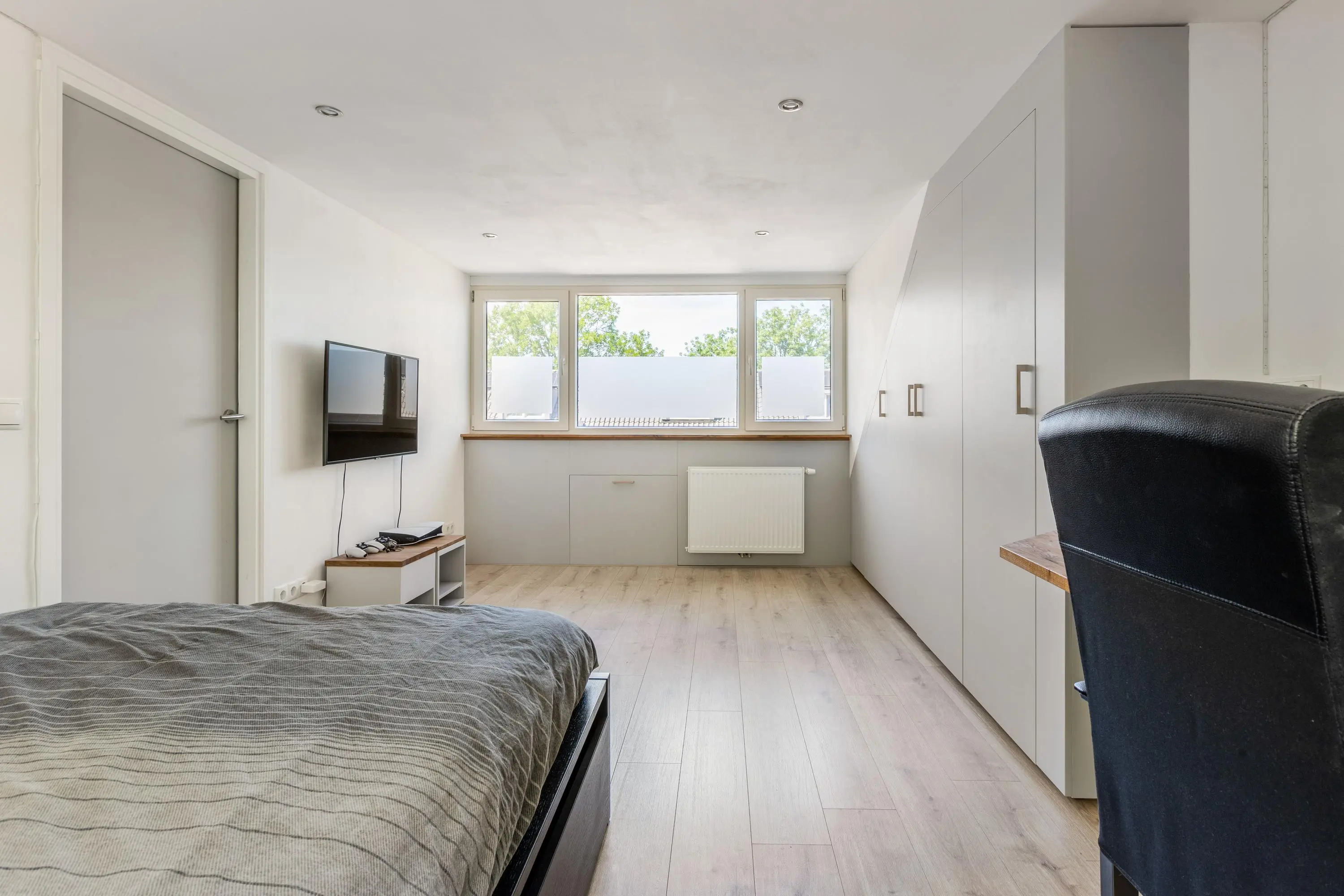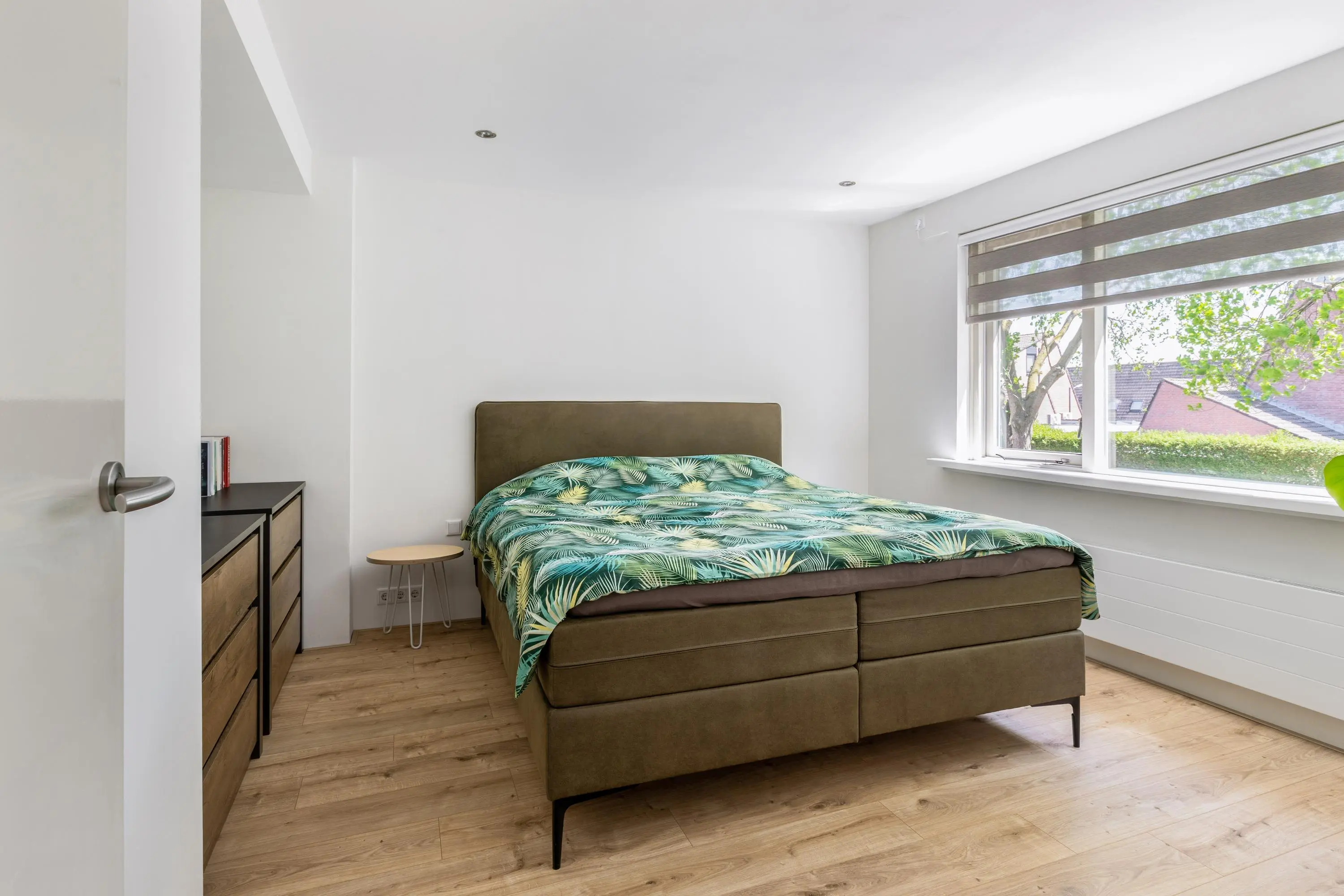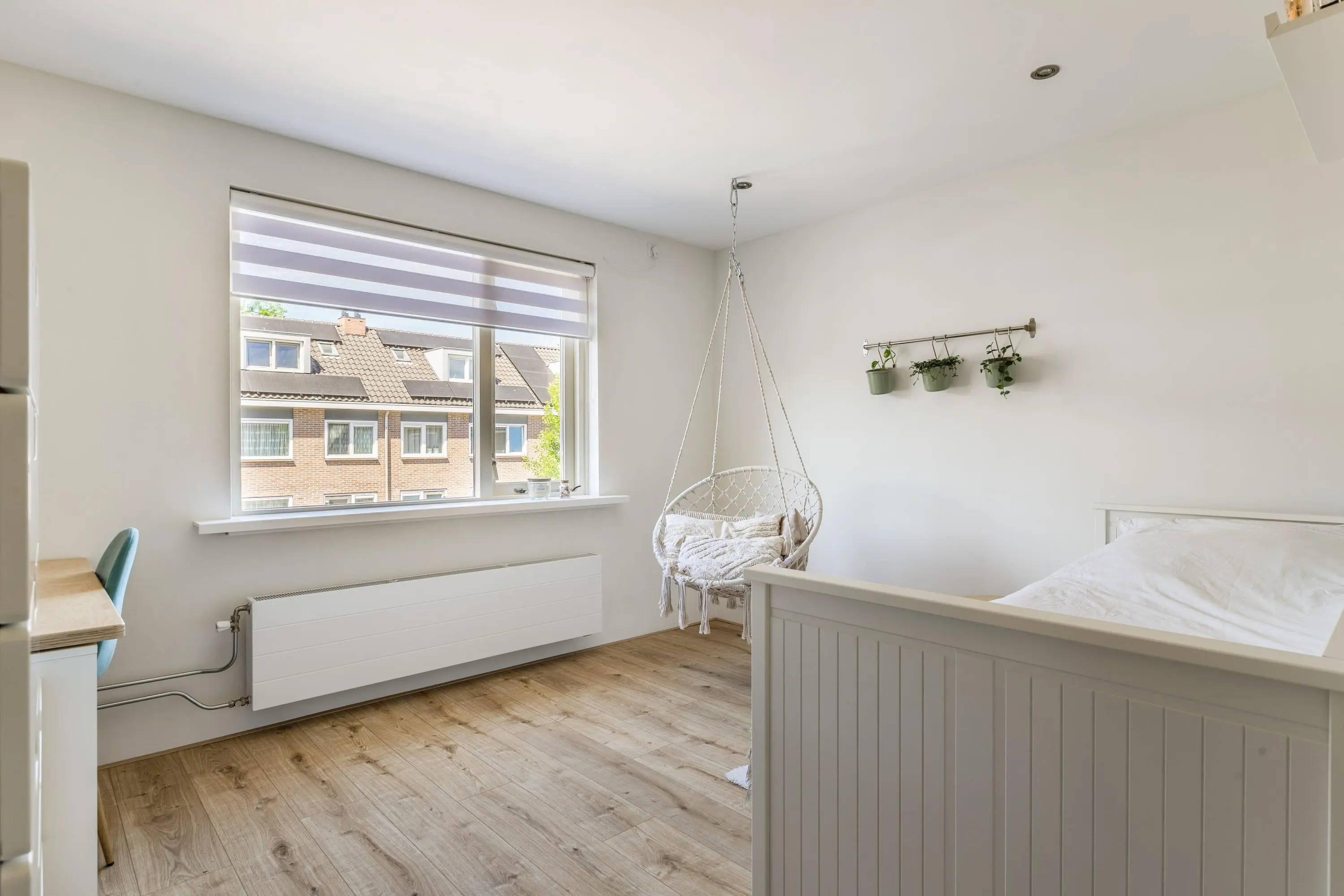 De tweede verdieping is een waar juweeltje. Door de dakkapellen aan beide zijden ontstaat een prachtige, ruime slaapkamer die dienst kan doen als ouderslaapkamer of logeerkamer. De aparte waskamer en de netjes afgewerkte knieschotten maken deze verdieping helemaal af. Overal zijn horren aanwezig. De cv-installatie is netjes weggewerkt op de overloop.