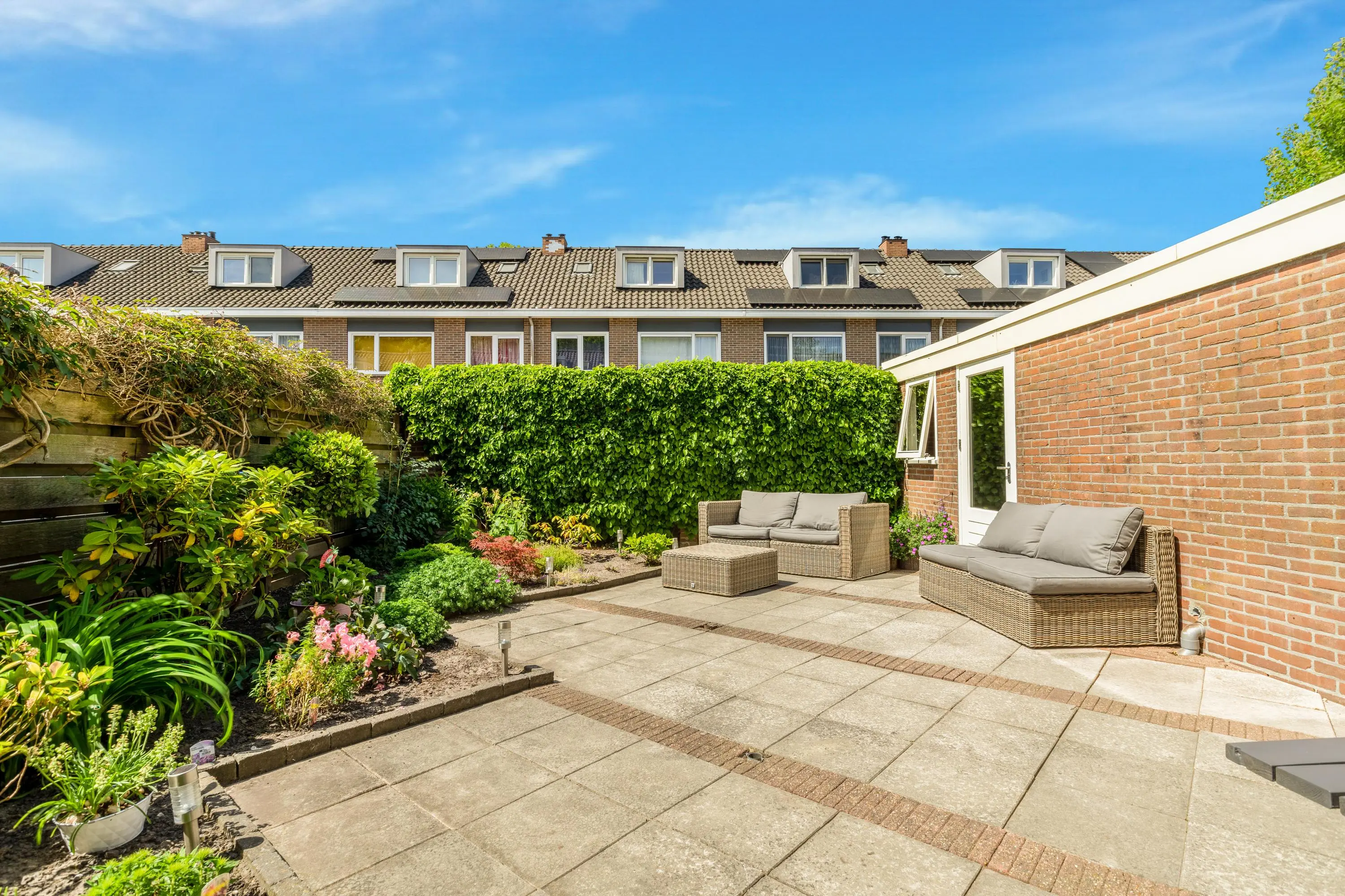 * Ruime achtertuin met garage én oprit voor drie auto's