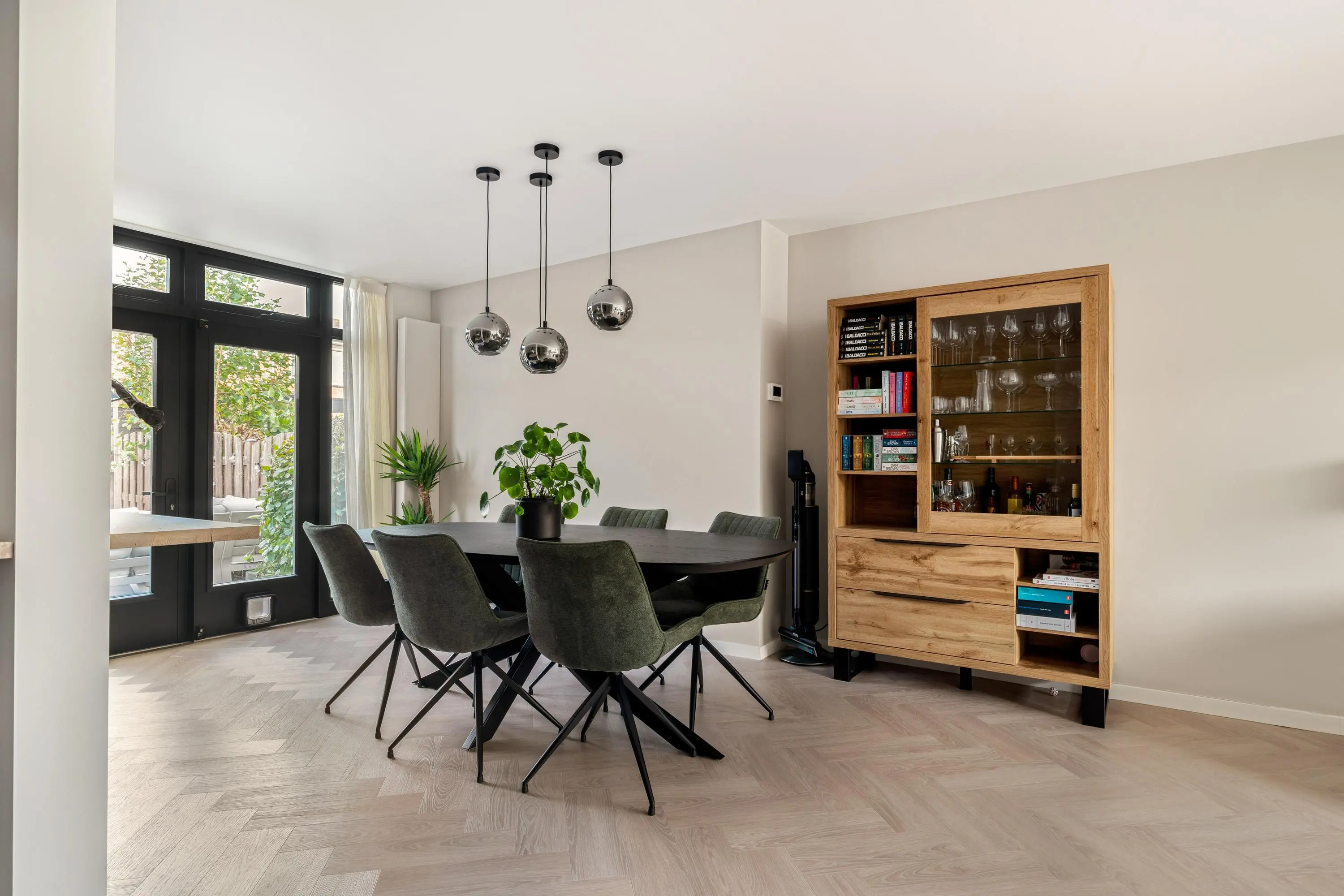 Deze volledig gemoderniseerde tussenwoning is tot in de puntjes afgewerkt, denk aan een visgraatvloer, lichte strak gestukte wanden en plafonds, en openslaande deuren die de woonkamer naadloos verbinden met de zonnige achtertuin. Hier hoef je niets meer te doen dan je meubels neerzetten en genieten.