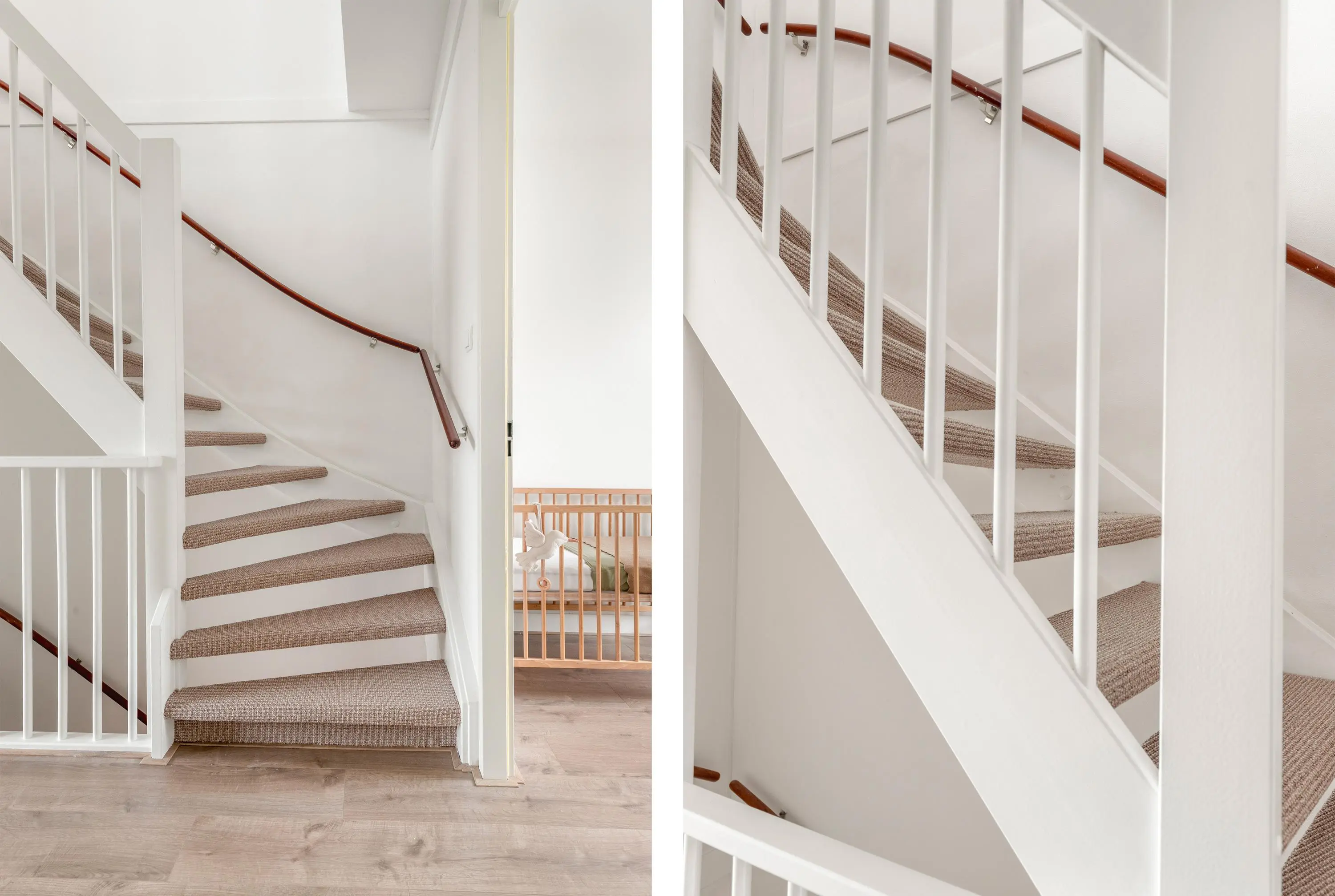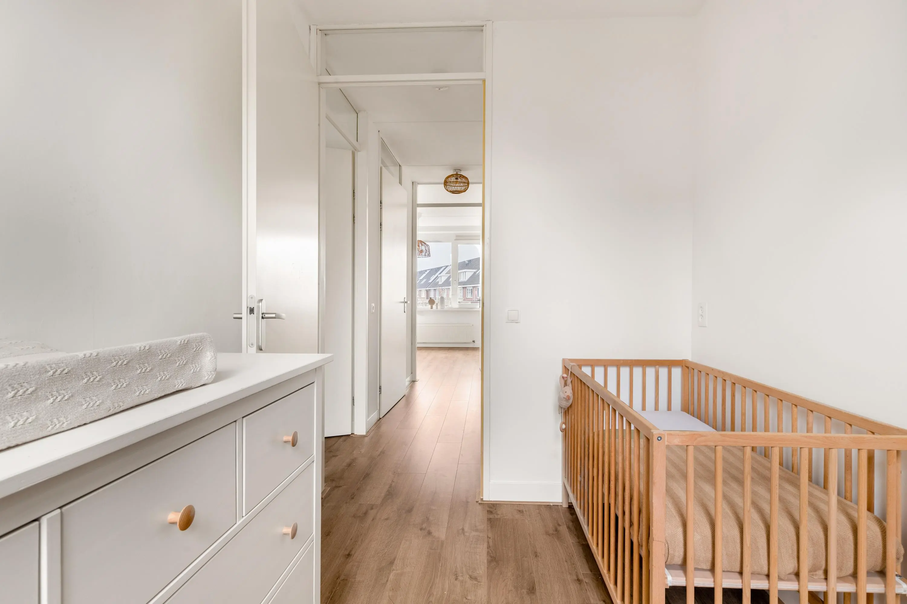 Op de eerste verdieping zijn drie slaapkamers en de badkamer gesitueerd. Deze badkamer is voorzien van een dubbel wastafelmeubel, toilet en douche. De tweede verdieping biedt nog eens twee volwaardige slaapkamers, een praktische wasruimte én een tweede, moderne badkamer met ruime inloopdouche en wastafelmeubel. Ideaal voor opgroeiende kinderen of gasten. Dankzij de hoge nok beschikt de woning bovendien over een handige vliering met extra bergruimte.