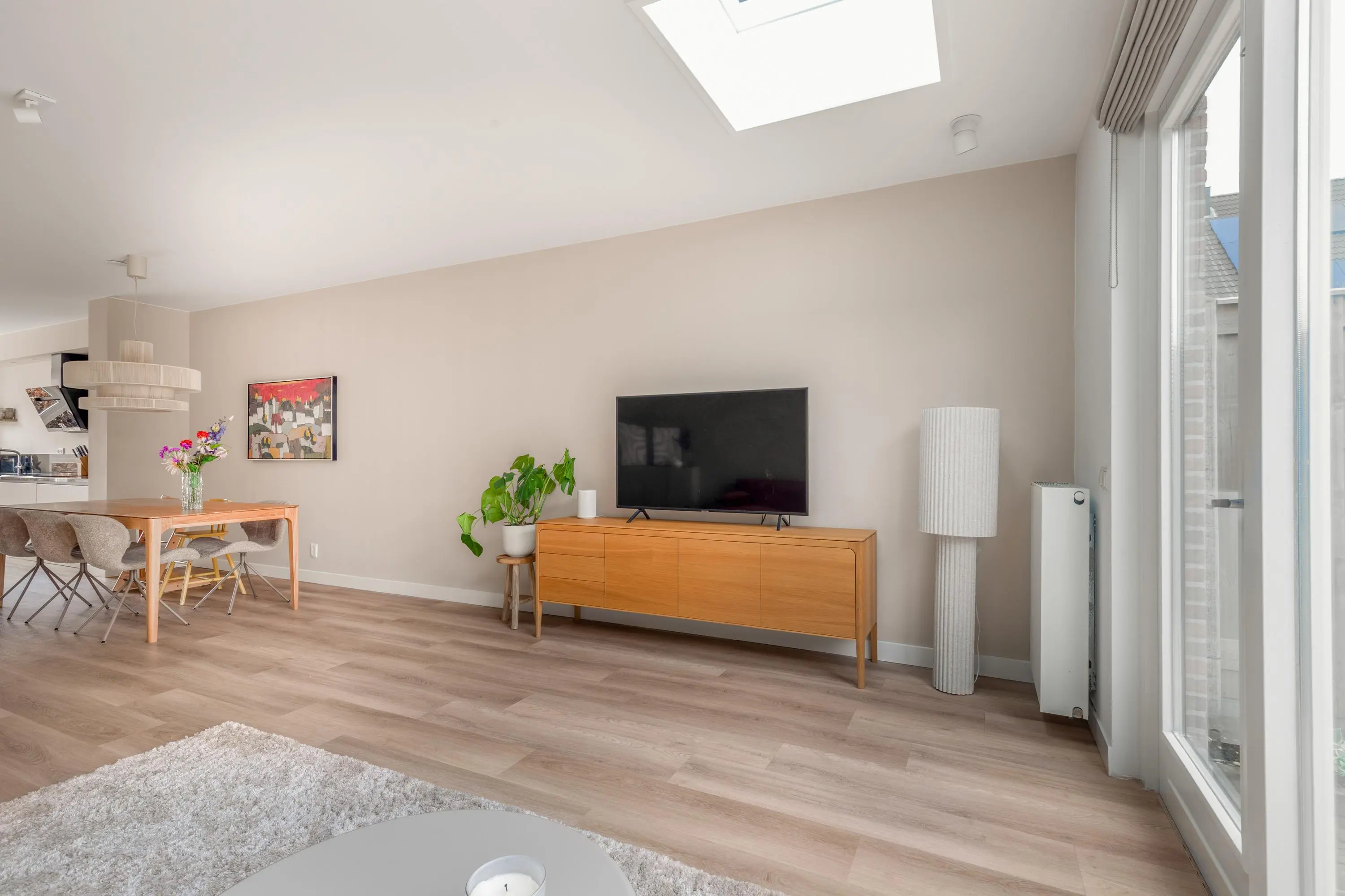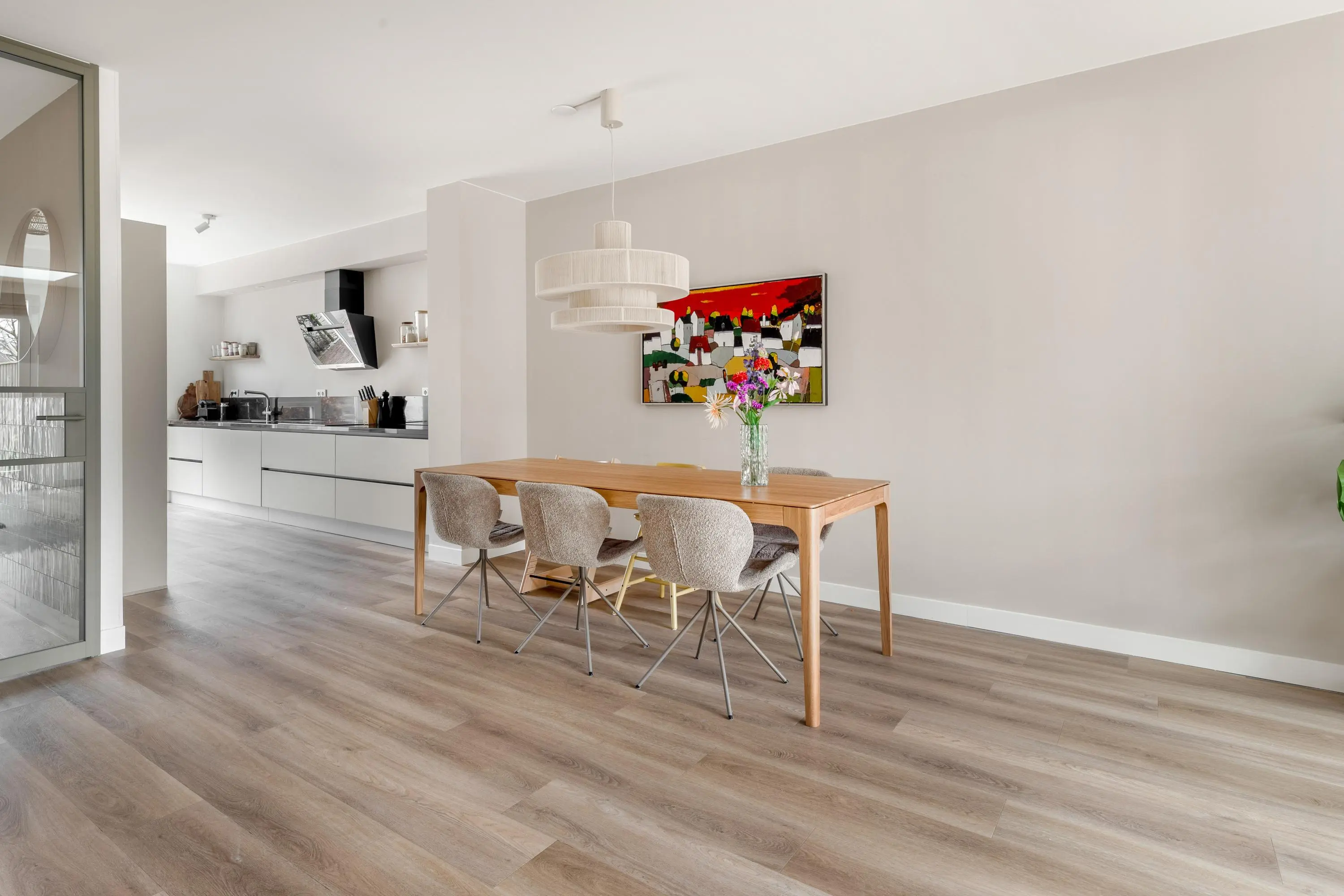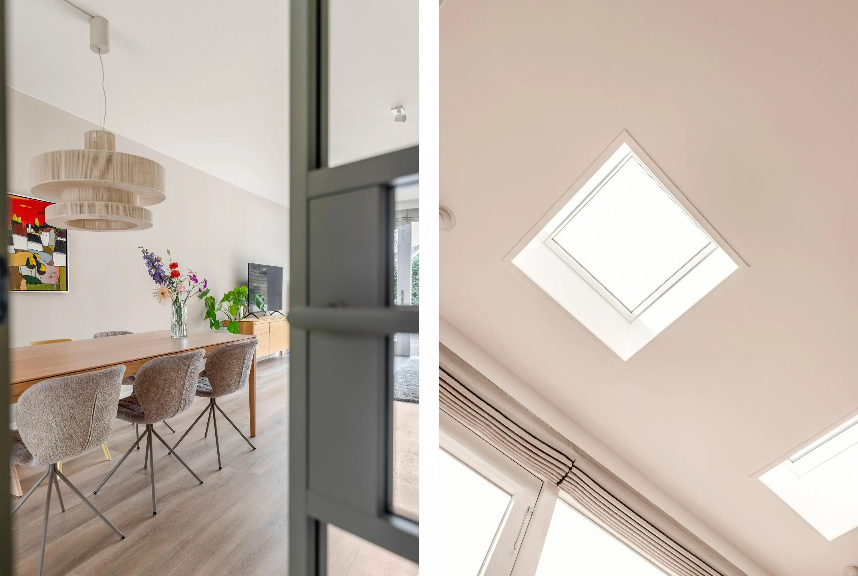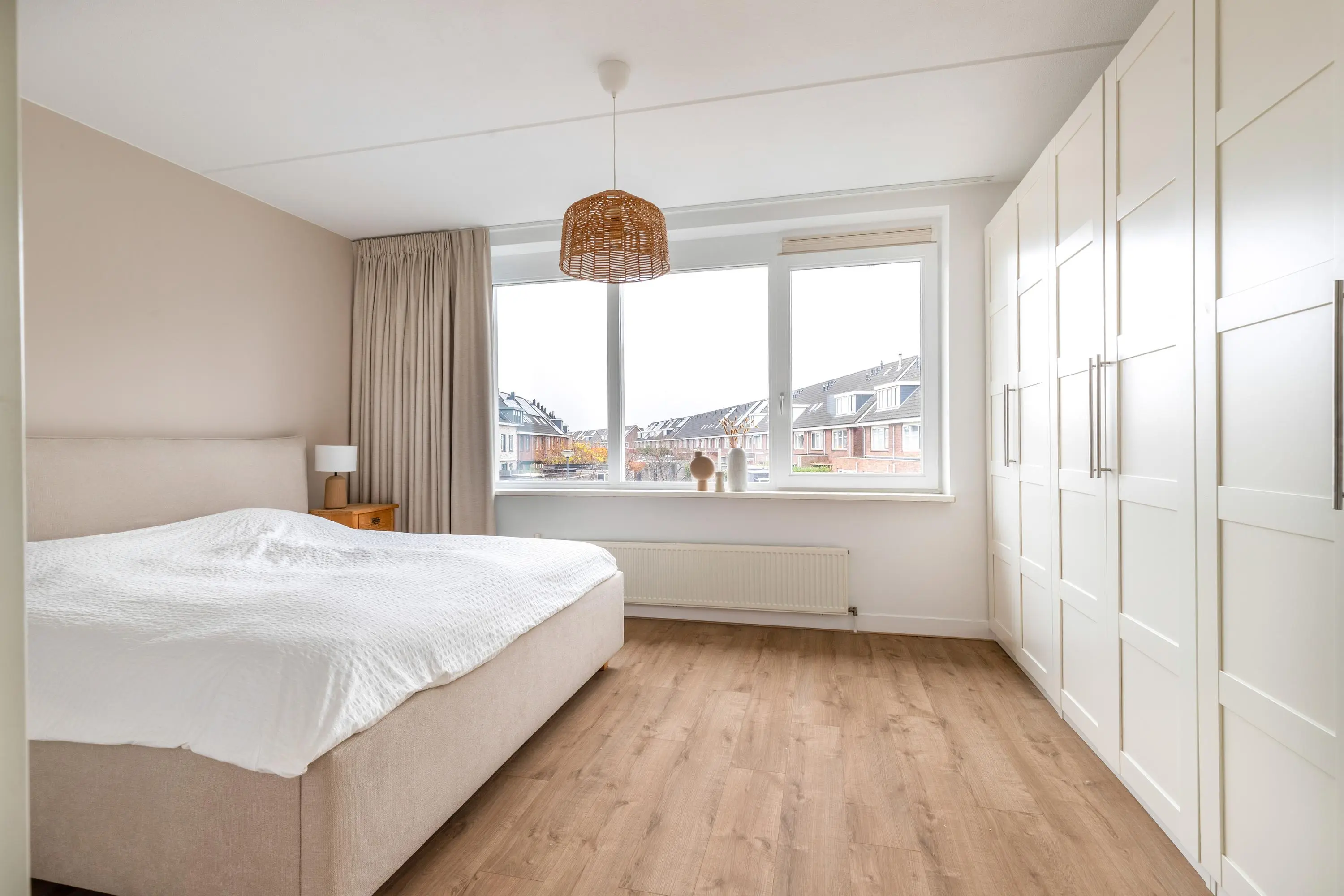 De woning is aan de achterzijde uitgebouwd en kenmerkt zich door de grote raampartijen en een dakraam, wat zorgt voor een heerlijke lichtinval. De gehele woning is met zorg en smaak ingericht, waardoor je hier als nieuwe bewoner direct kunt genieten van comfort en ruimte. Aan de voorzijde van de woning bevindt zich de moderne keuken, compleet uitgerust met een inductiekookplaat, afzuigkap, combi-oven, koelkast, vriezer, vaatwasser en een Quooker.