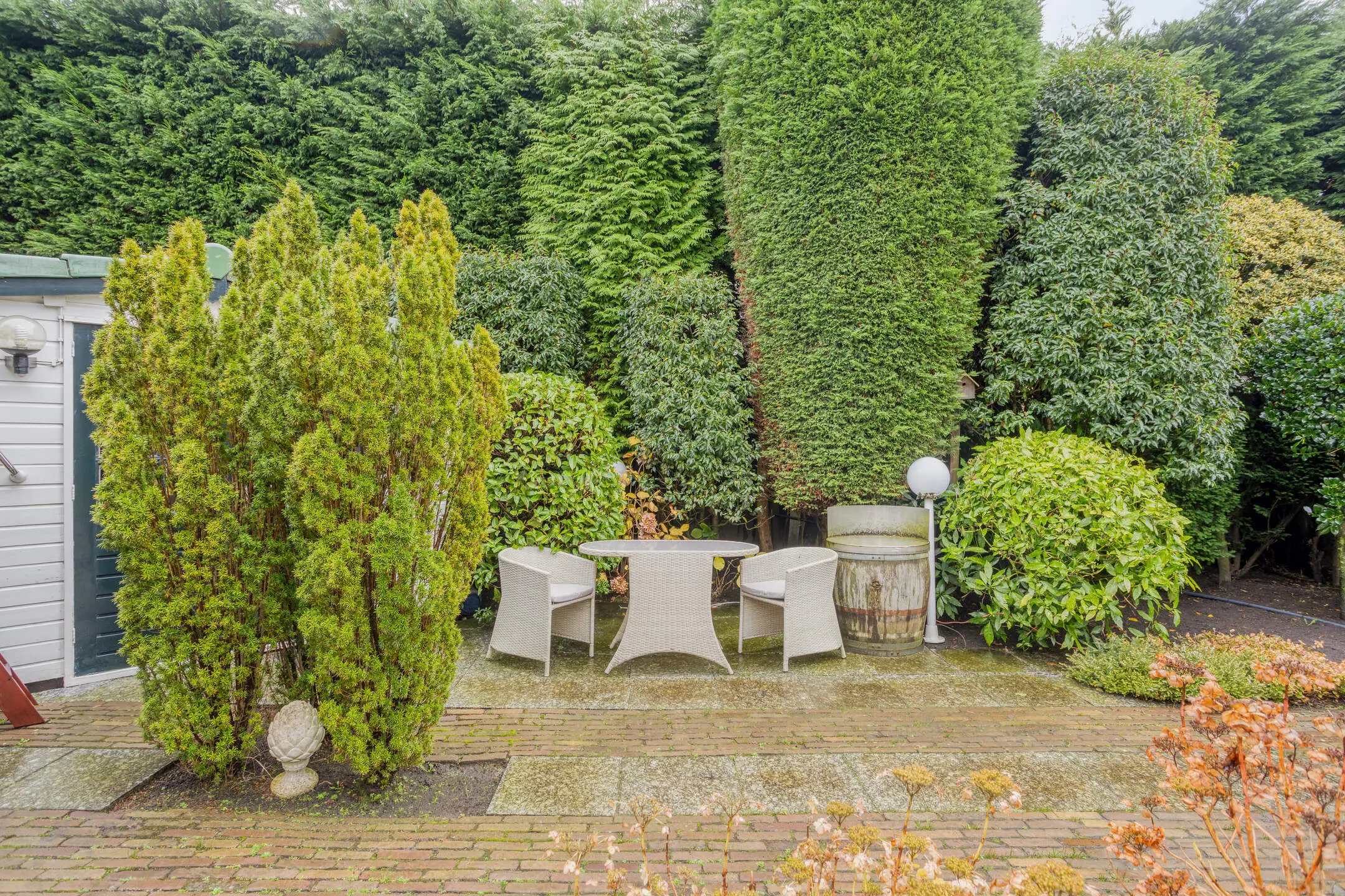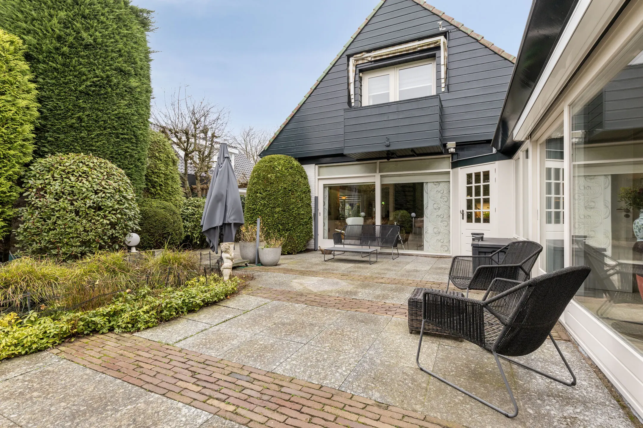 De achtertuin is riant te noemen, goed onderhouden en heeft een sproeisysteem. Makkelijk als de zomers warm zijn!