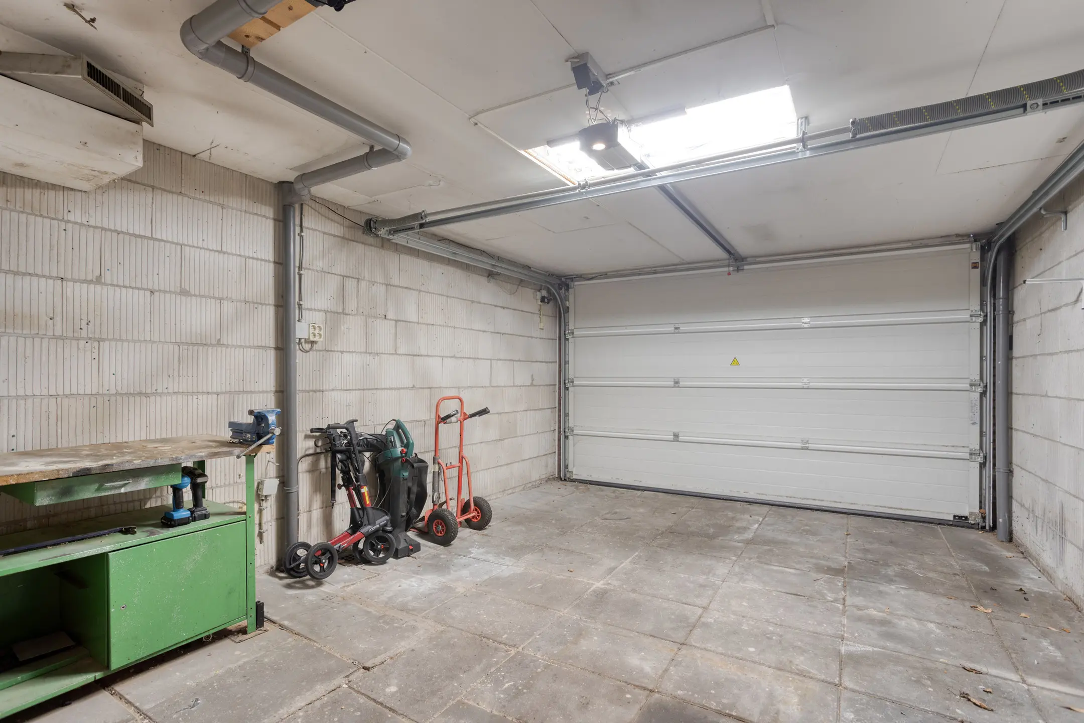-Garage met elektrische deur, verwarming en elektra, ideaal voor hobby of opslag.