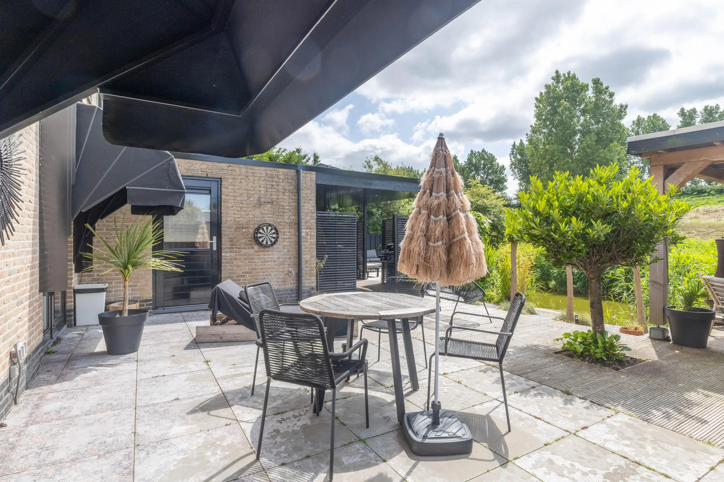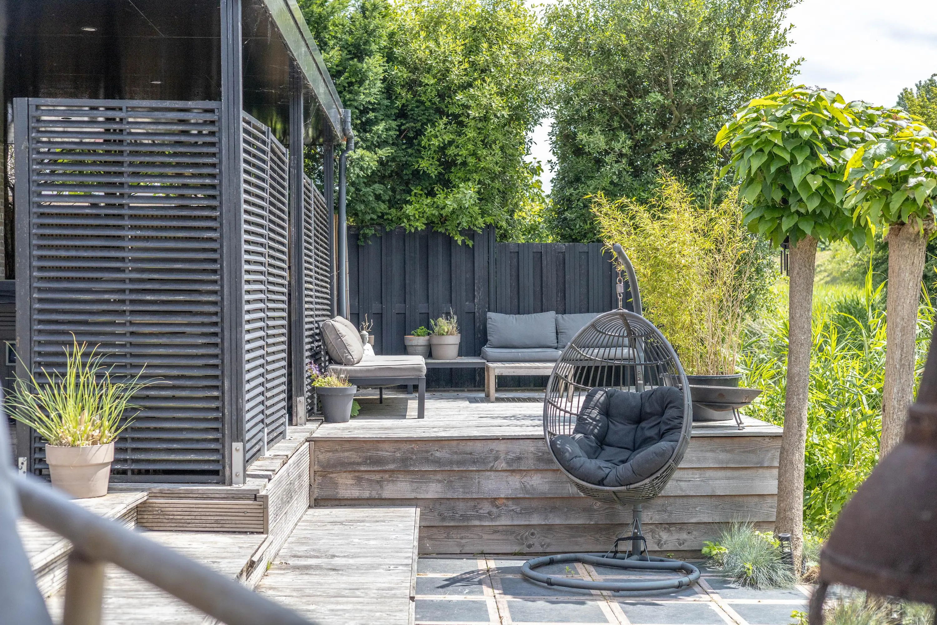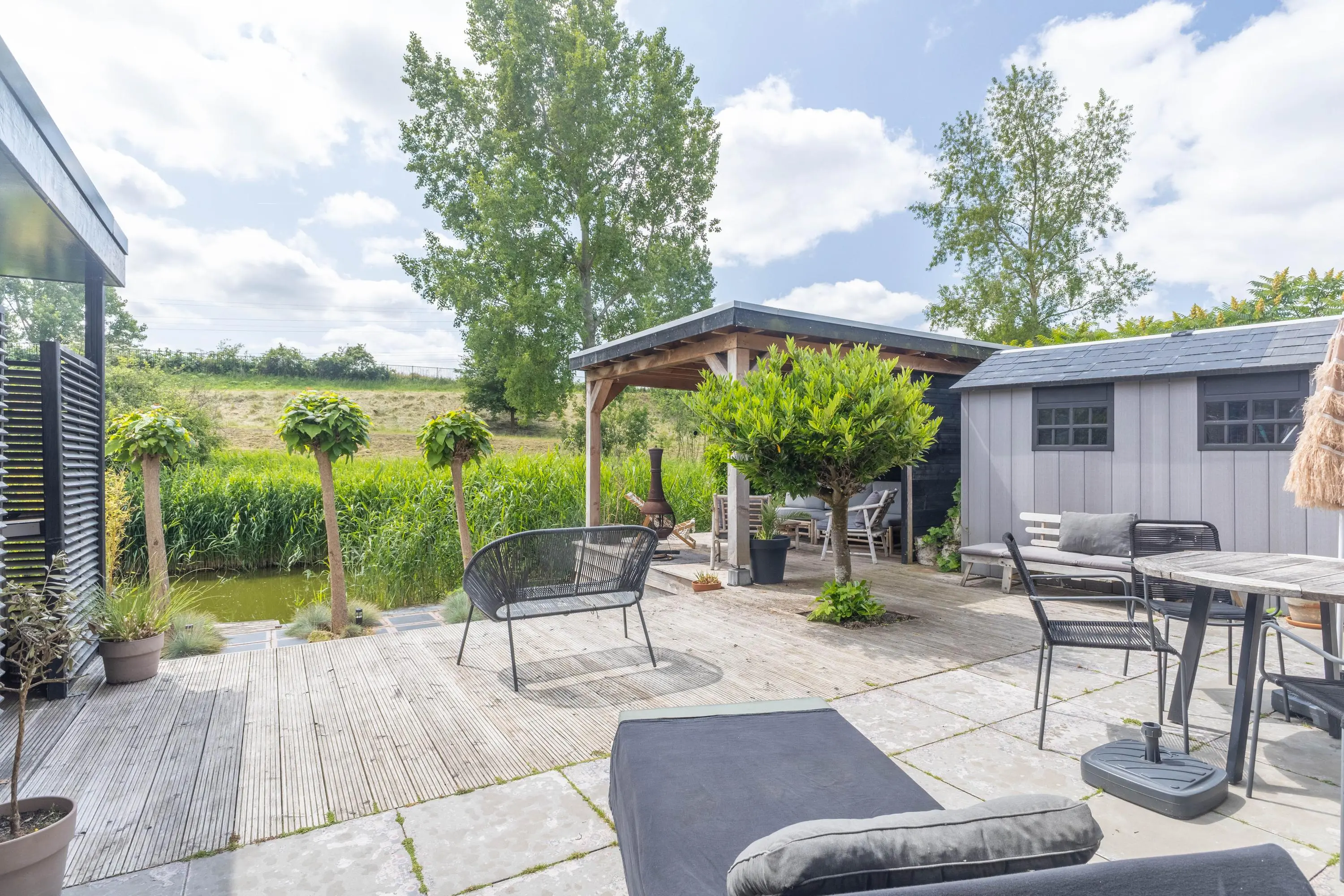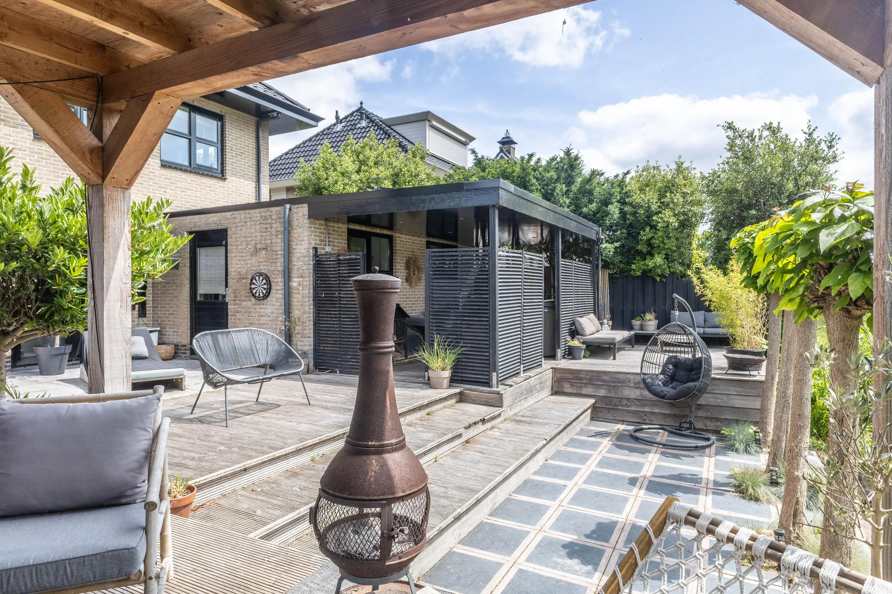 De achtertuin is gelegen op het zuiden en is door de vrije ligging aan de achterzijde zeer privacy vol. De huidige eigenaren hebben in de tuin ook kosten nog moeite gespaard met een sfeervolle overkapping, een extra overkapping met jacuzzi en meerdere terrassen is dit een tuin om in te genieten.