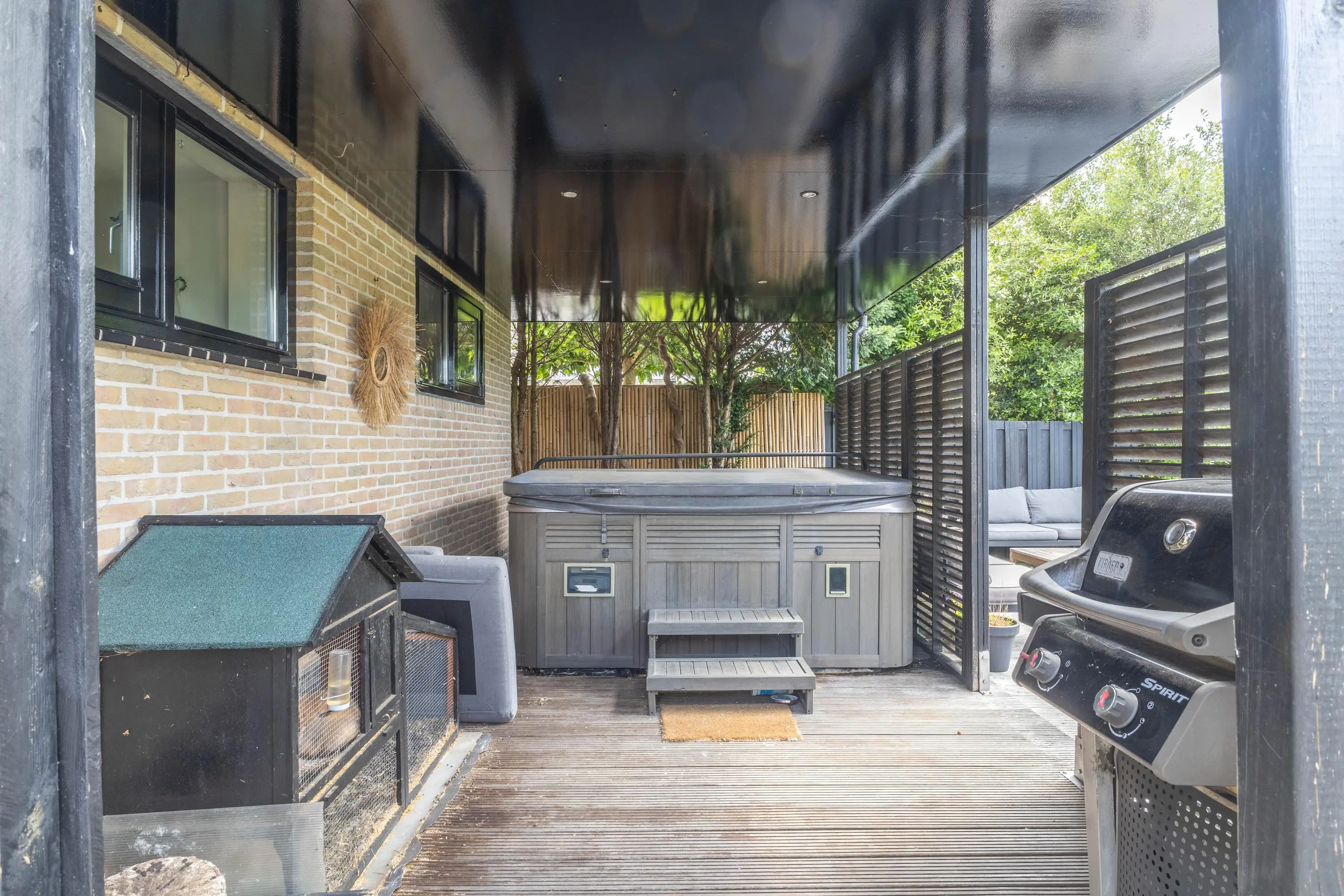 - Achtertuin met meerdere overkappingen en jacuzzi;