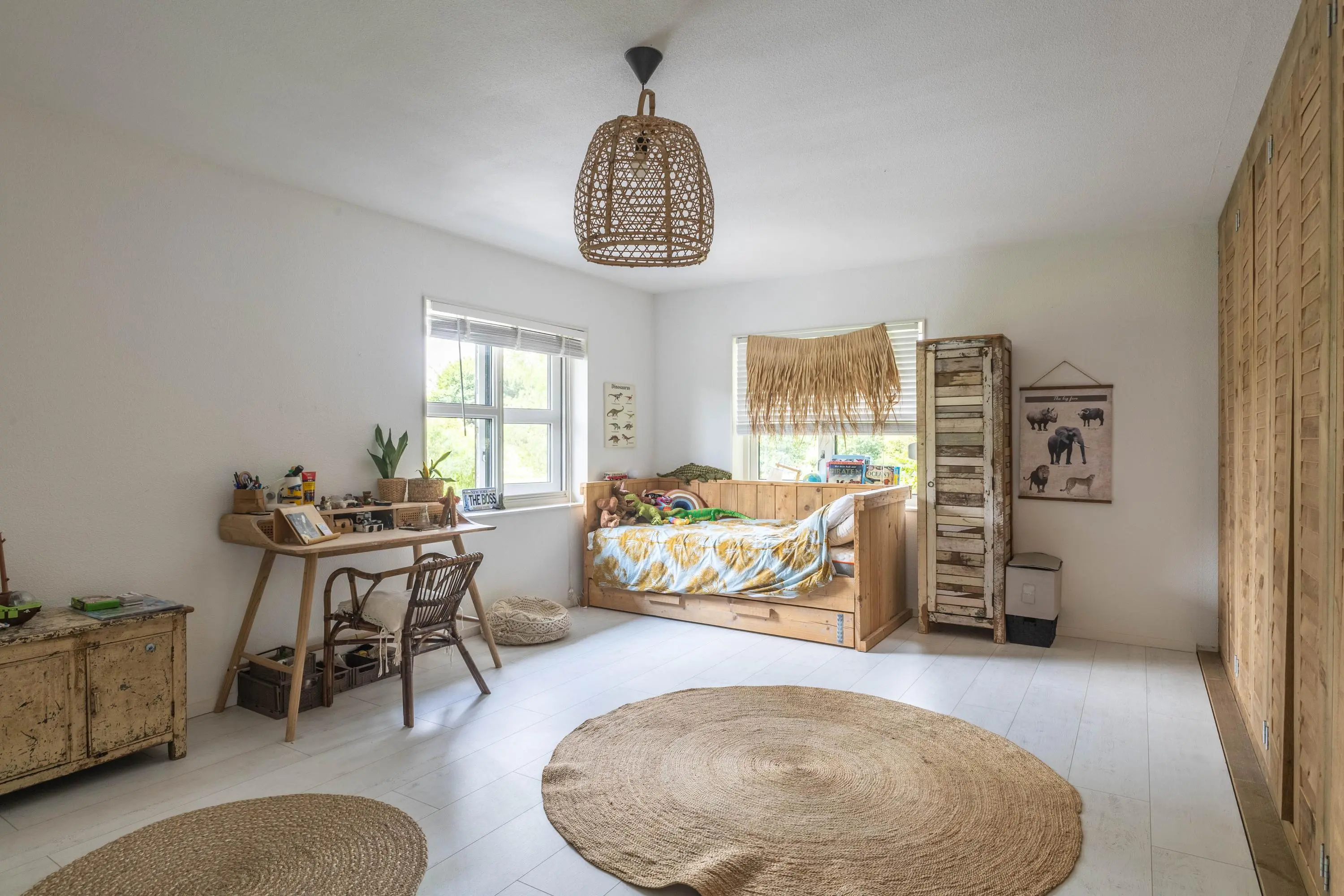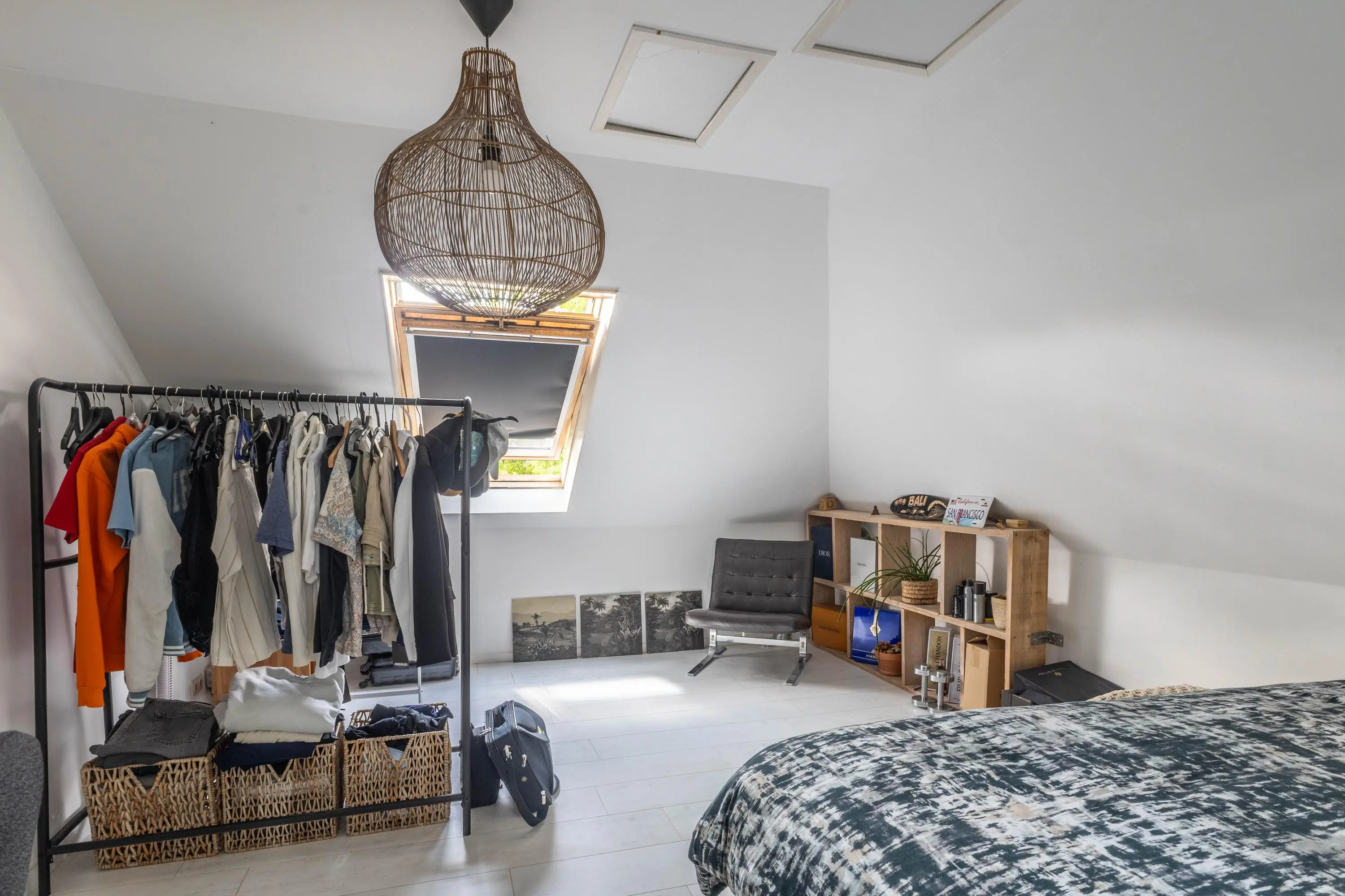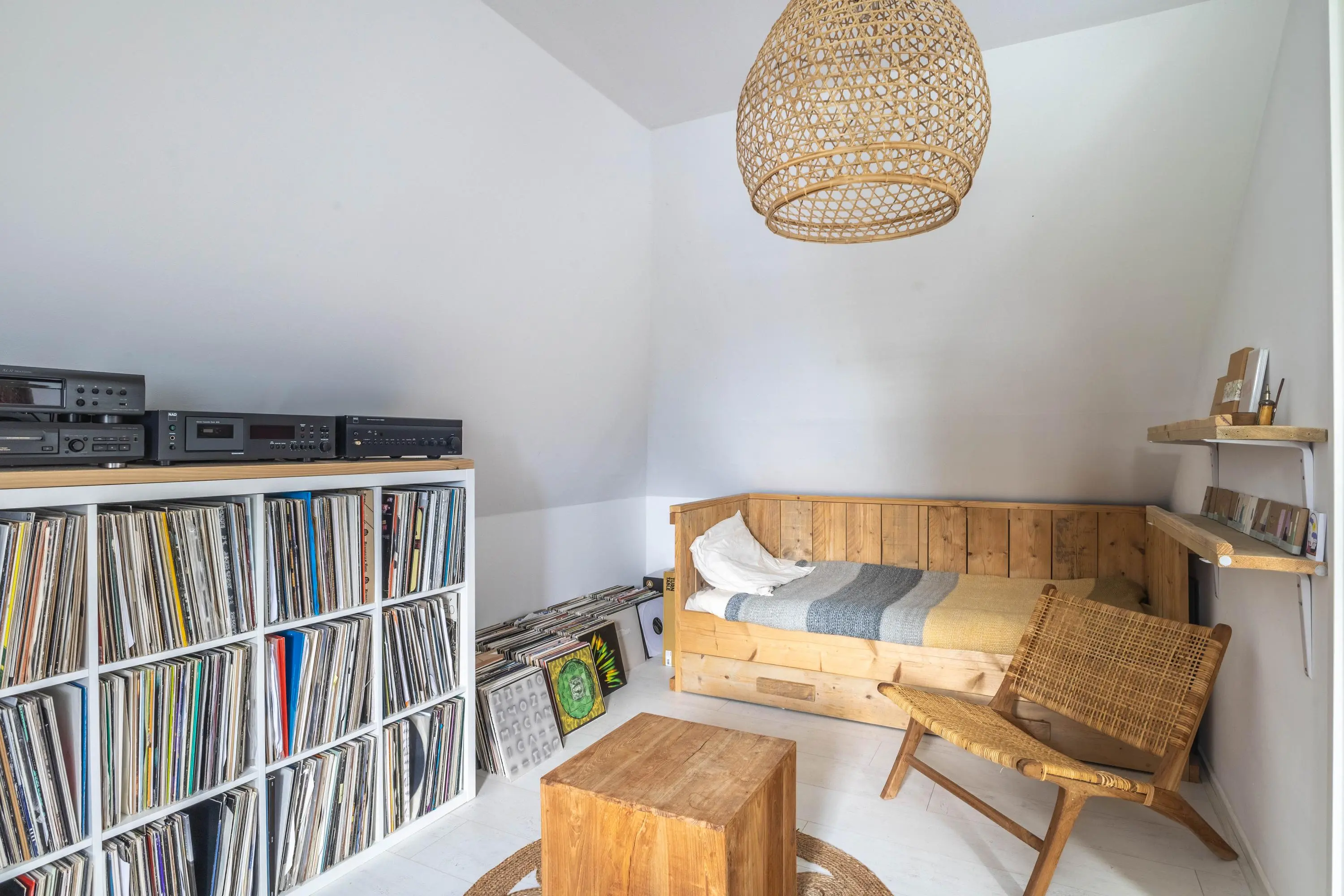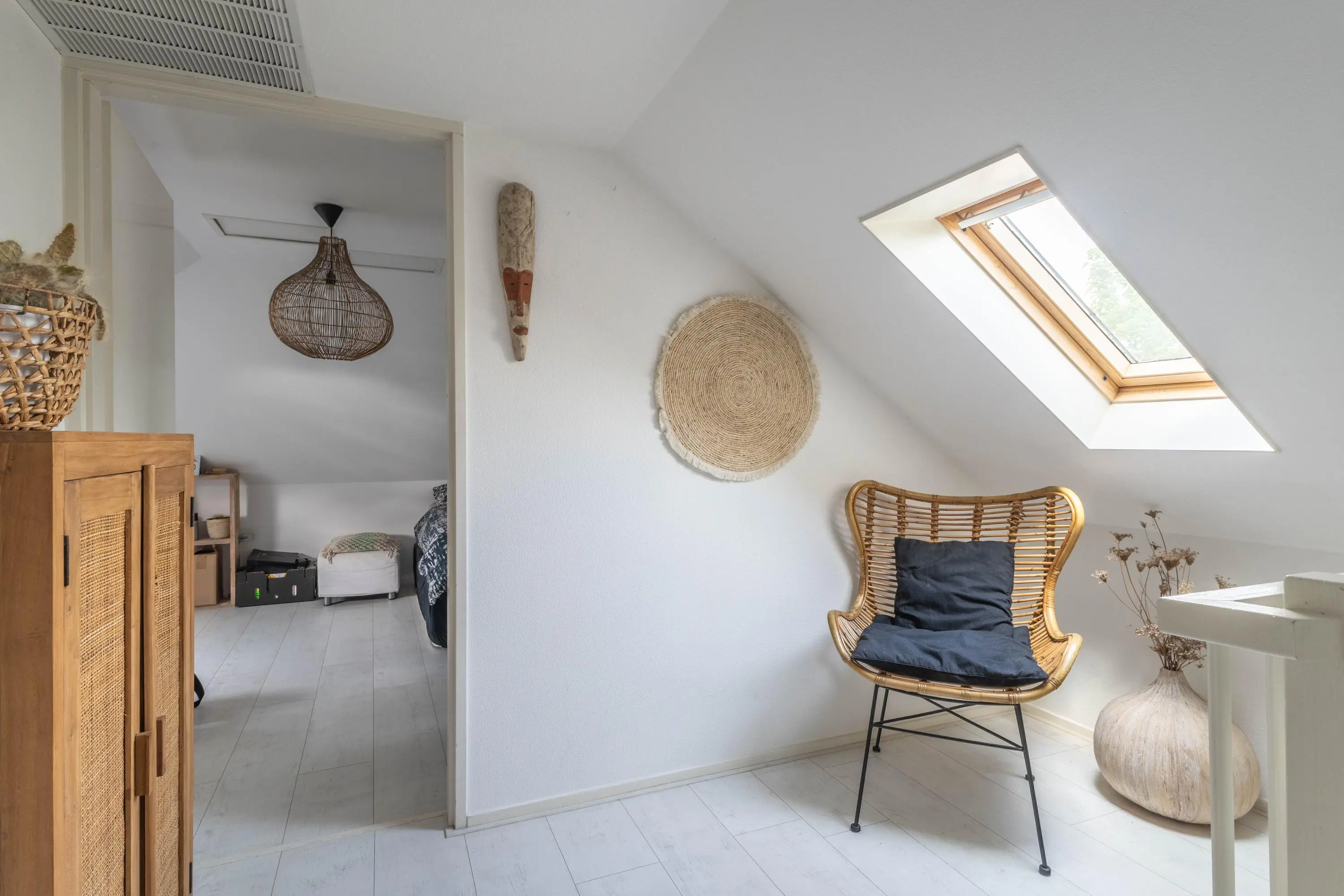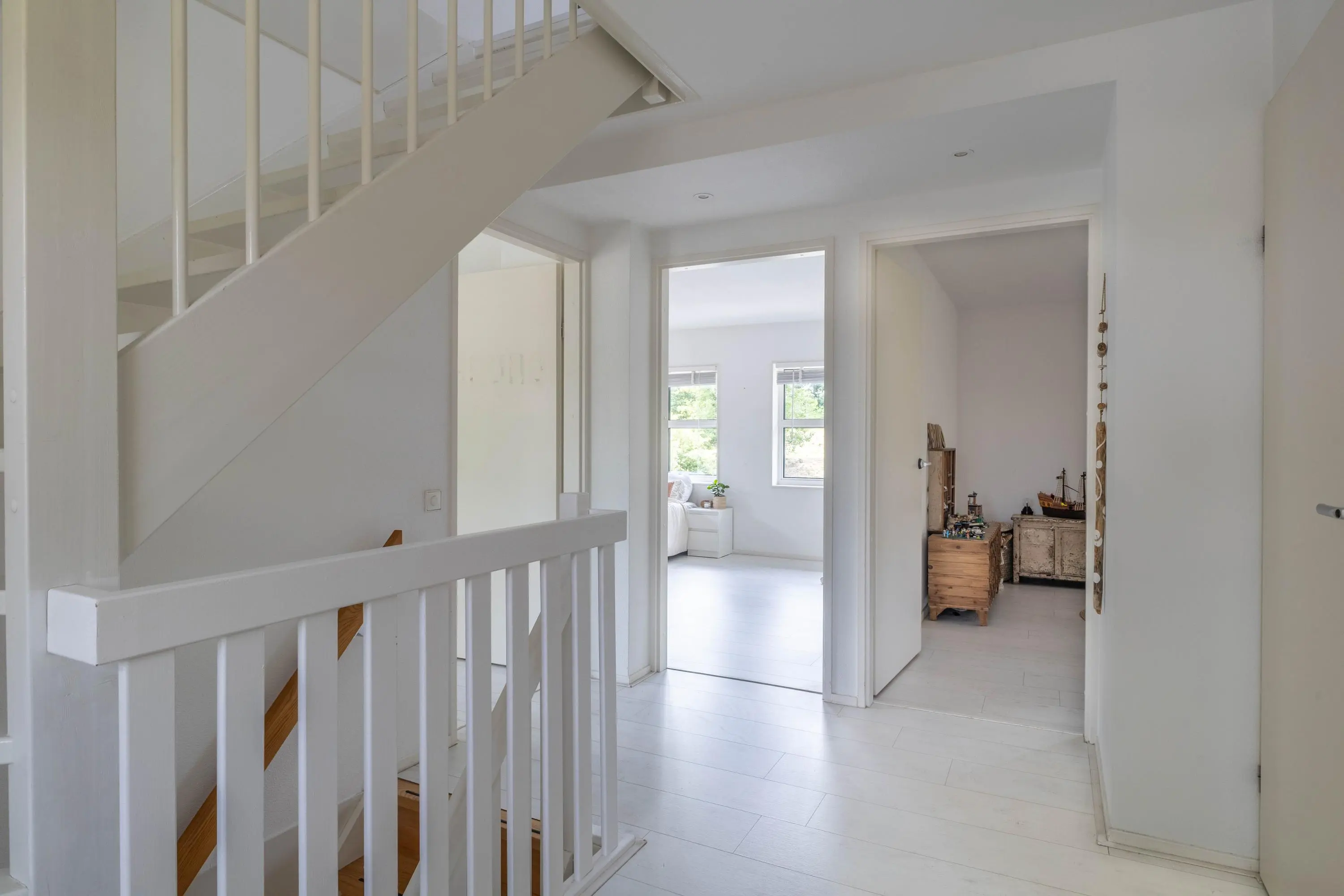 De tweede verdieping voorziet nog eens in twee ruime slaapkamers en de installatieruimte met hete lucht verwarmingsinstallatie, cv-ketel en wtw-unit.