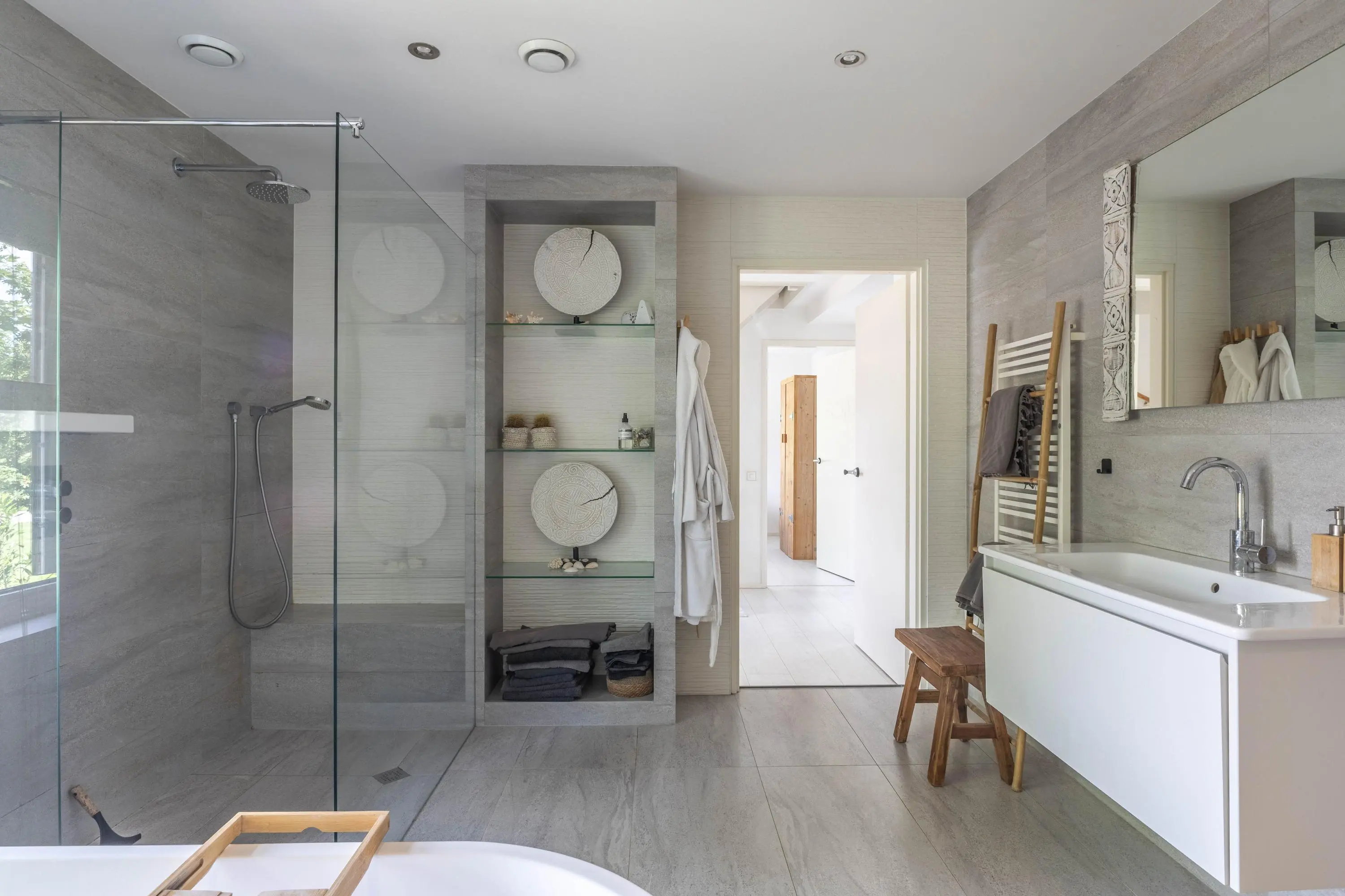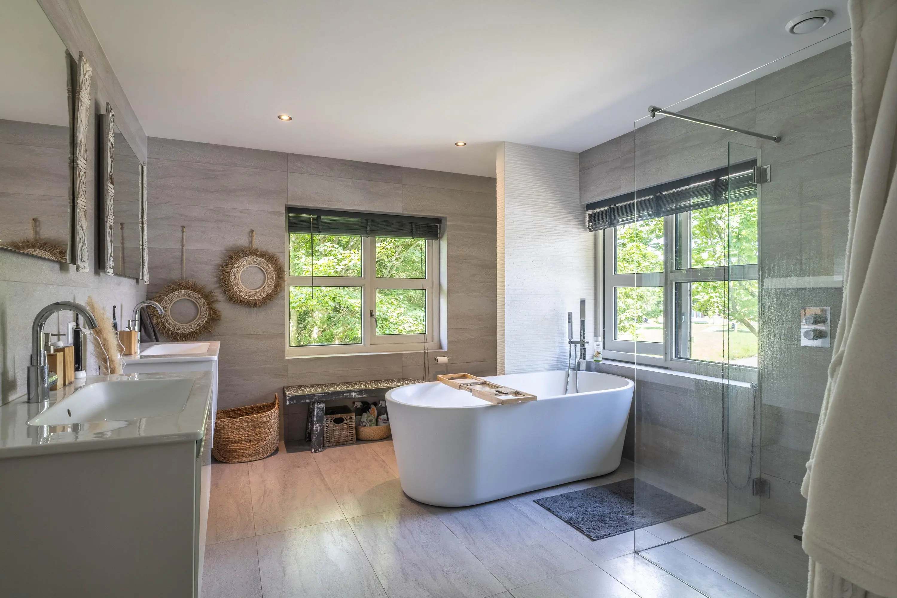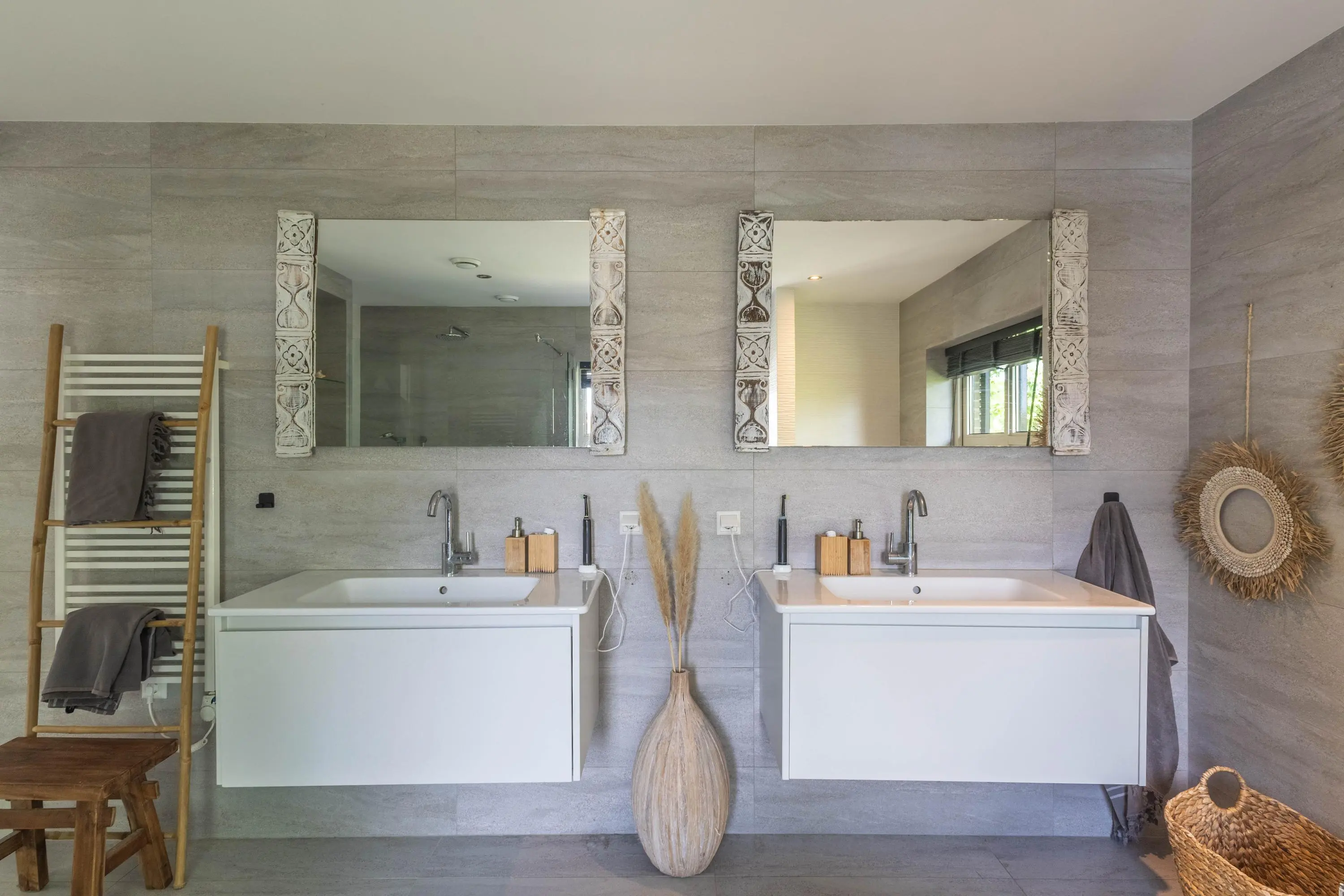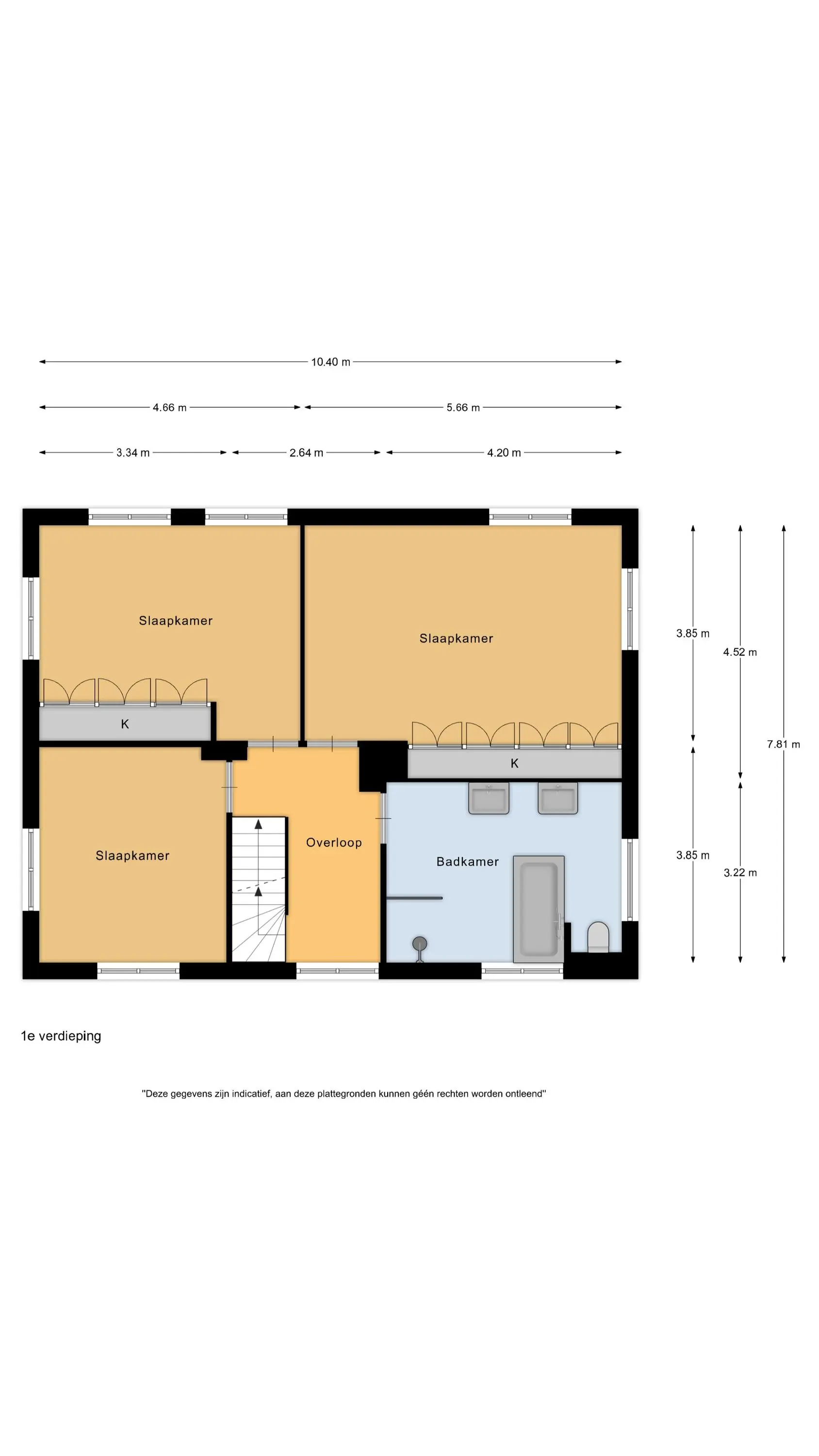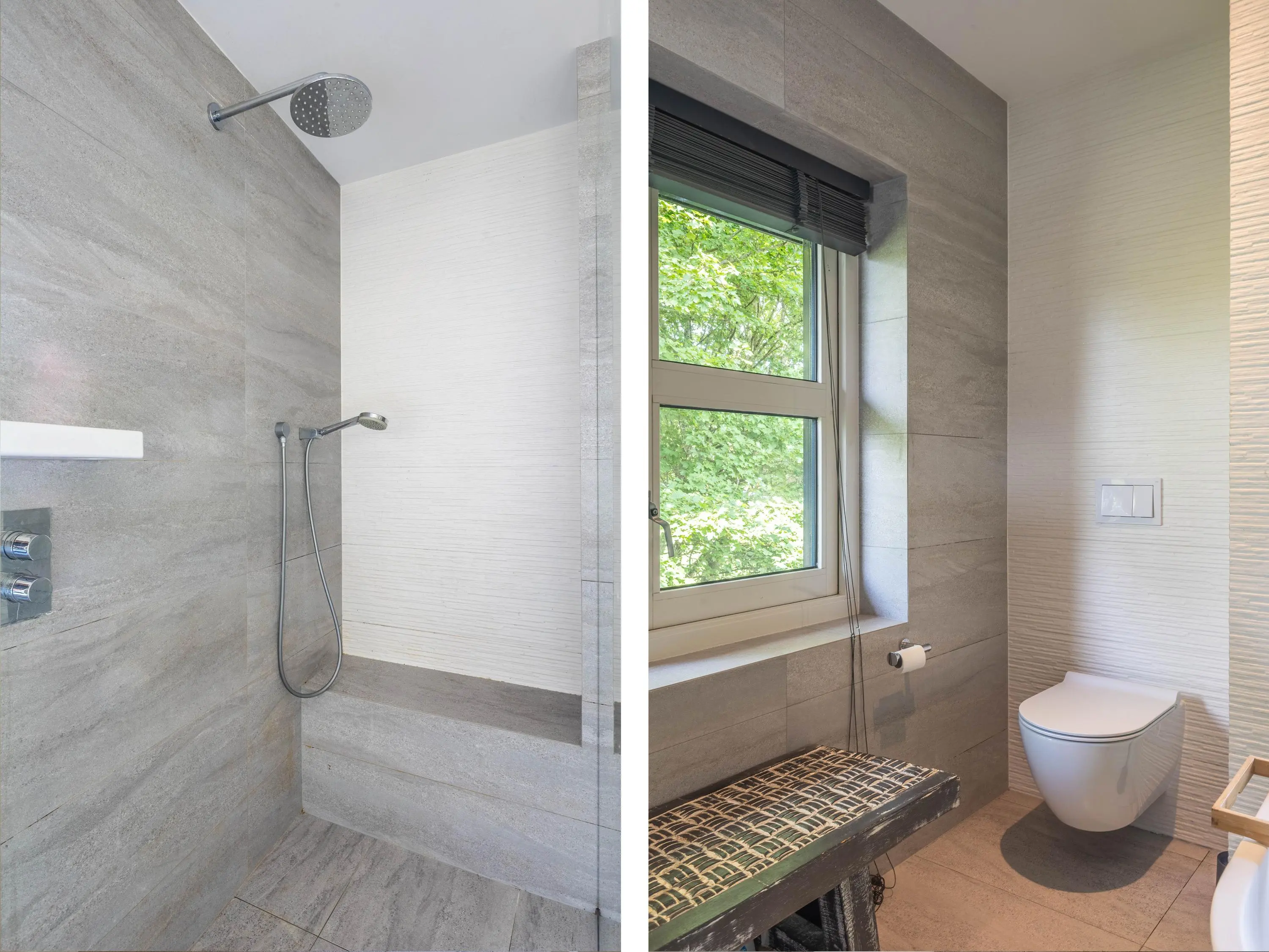Op de eerste verdieping heb je de beschikking over drie zeer ruim bemeten slaapkamers, waarvan twee voorzien van luxe inbouwkasten. De badkamer is er een die niet zou misstaan in een wellness, met een riante inloopdouche, vrijstaand ligbad, dubbele wastafel en toilet heb je alles in eigen huis.