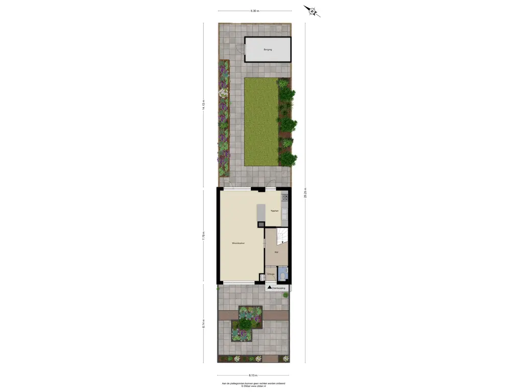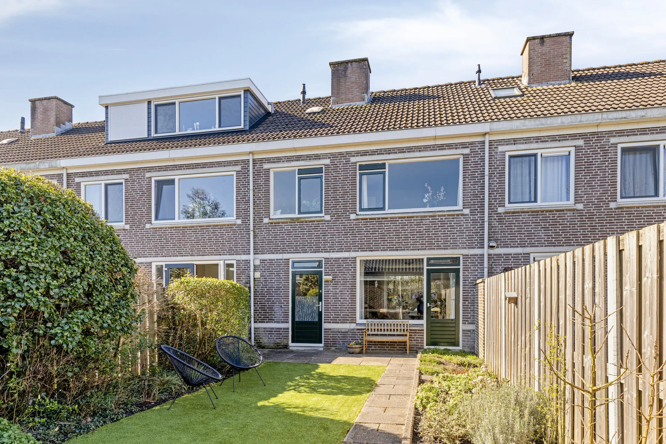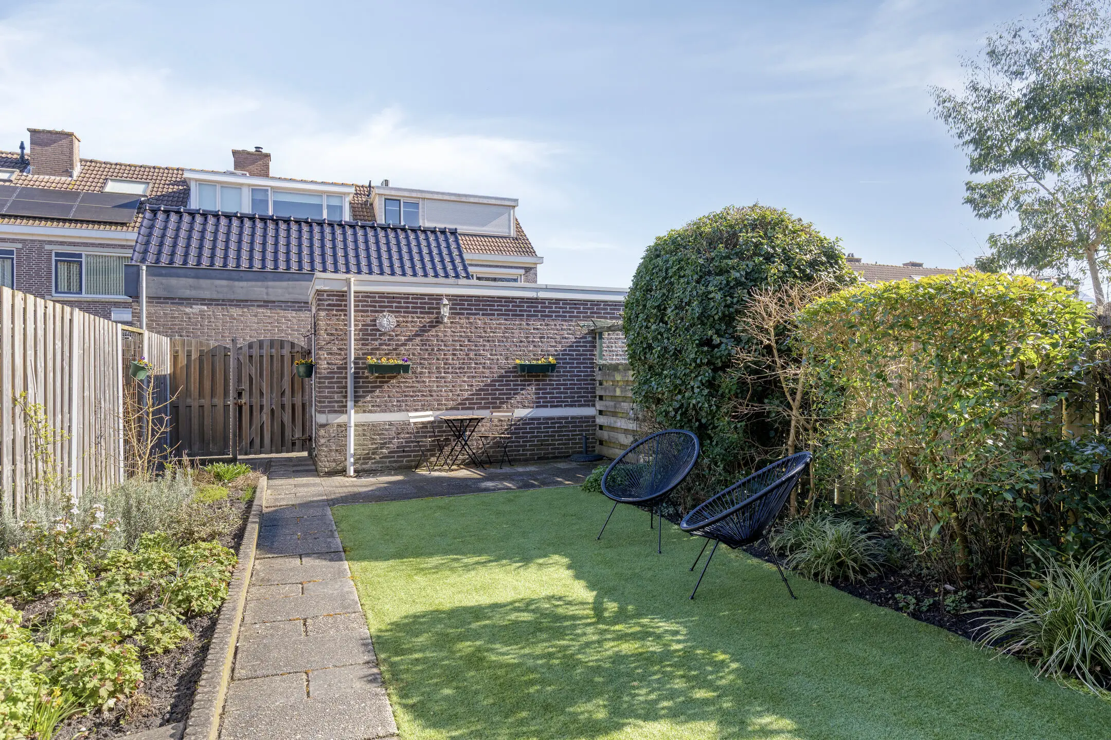 Loop je naar buiten, dan wacht de tuin als een verlengstuk van je woonkamer. Met een diepte van 11 meter is er alle ruimte om te genieten: een ontbijt in de ochtendzon, een barbecue op een zwoele zomeravond, of simpelweg even niets doen. De stenen berging biedt praktische opbergruimte, zonder dat het ten koste gaat van de charme van de tuin.
