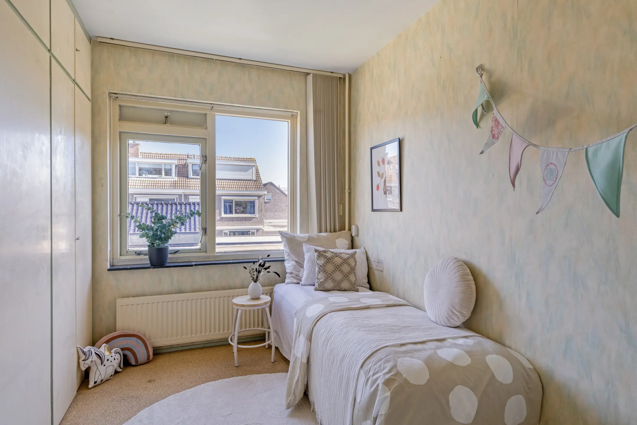 Op de eerste verdieping vind je drie slaapkamers. Of je nu een gezin hebt, thuiswerkt of gewoon ruimte wilt voor logees of hobby’s, hier kan het allemaal. Elke kamer heeft z’n eigen lichtinval en karakter, en voelt als een plek waar je je kunt terugtrekken. De badkamer beschikt over een douchecabine, tweede toilet, wastafel en een radiator waar je je handdoeken lekker kunt opwarmen. Op de tweede verdieping is de vierde ruime slaapkamer. Met achter de knieschotten genoeg ruimte om spullen op te bergen die je niet direct nodig hebt.