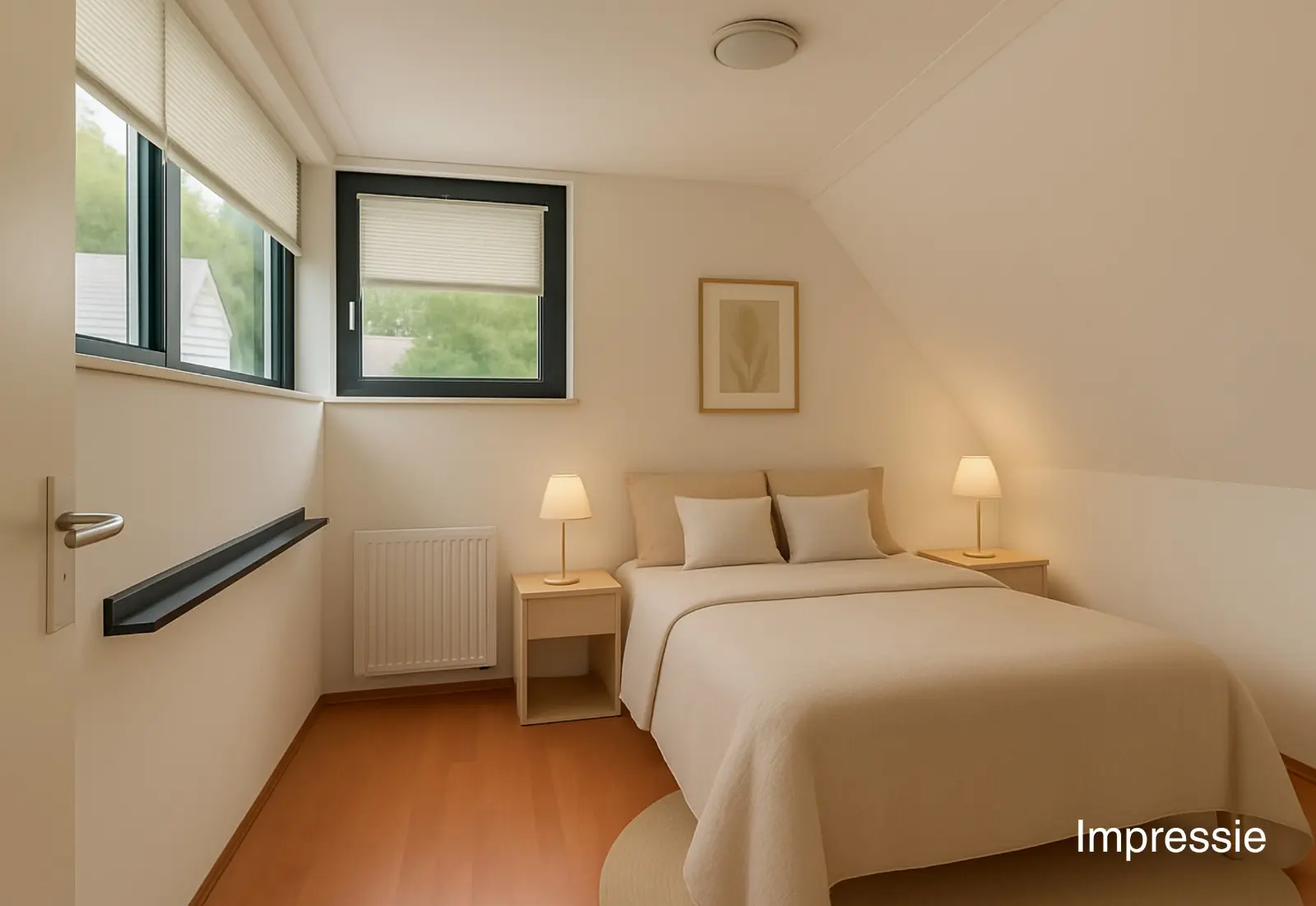Door naar de tweede verdieping van de woning, waar nogmaals één goed bemeten slaapkamer aanwezig is. Tevens is hier de technische ruimte gesitueerd met o.a. de C.V. ketel, mechanische installatie en de aansluiting voor de wasmachine en droger. Een verrassing op deze verdieping is de extra buitenruimte op het zuiden én de extra berging. Op deze verdieping bestaat ook de mogelijkheid om door een verbouwing, de buitenruimte en de berging om te bouwen tot een extra slaapkamer. Door de schuine kap van de woning, zijn de ruimtes zeer praktisch in te delen voor extra opbergruimte of optimaal te gebruiken voor bijvoorbeeld een kantoor en/of bureau.