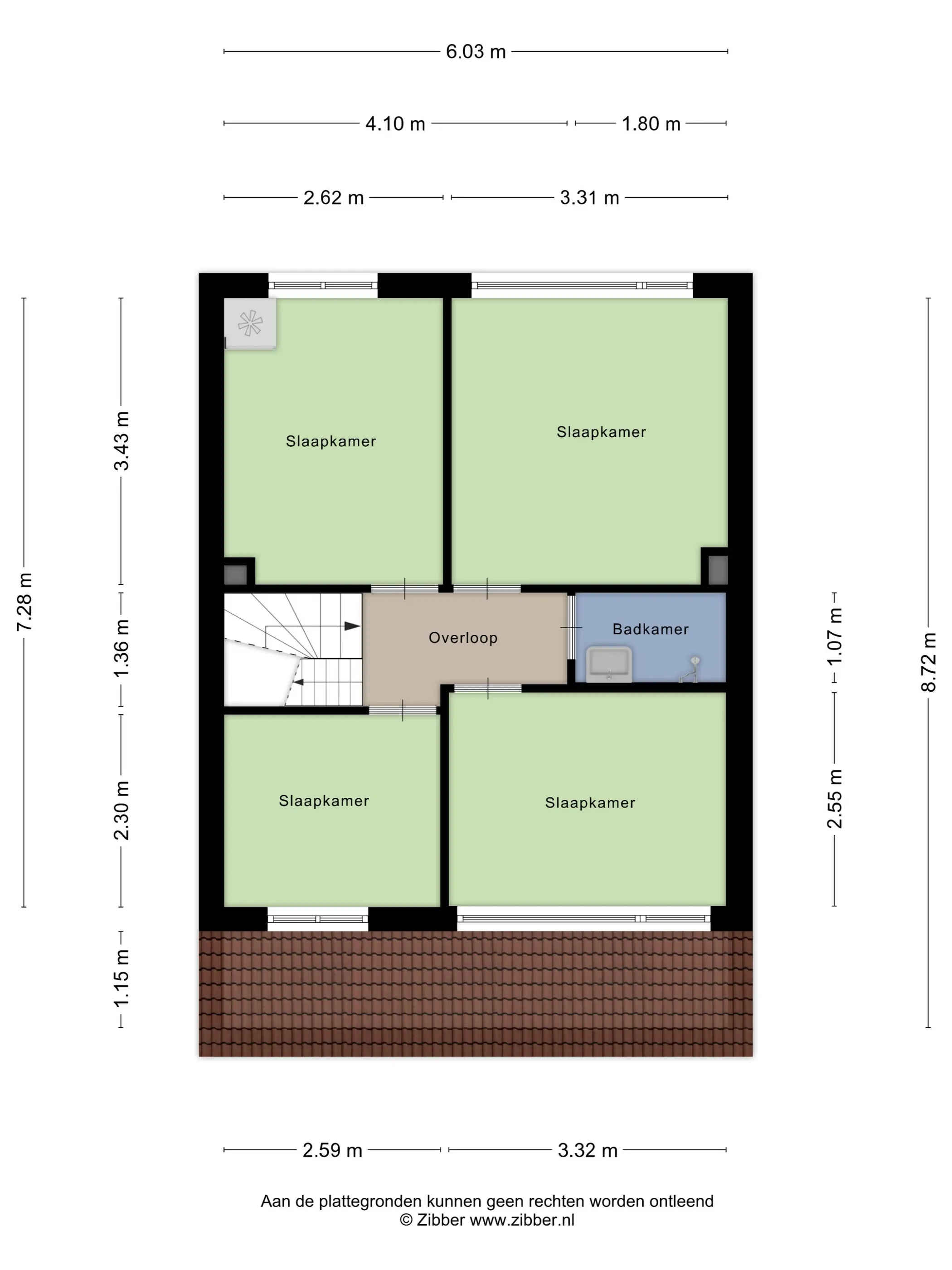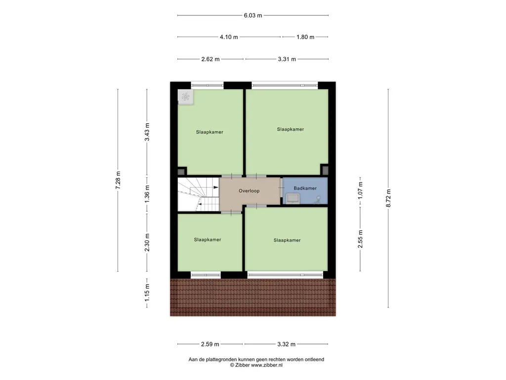Op de eerste verdieping bevinden zich vier slaapkamers en de badkamer. De kamers variëren in grootte en zijn ideaal in te richten als slaap-, werk- of hobbykamer. De badkamer is momenteel voorzien van een douche en wastafel. Indien een grotere badkamer gewenst is, wordt deze in vergelijkbare woningen regelmatig gerealiseerd door te verplaatsen naar één van de kleinere slaapkamers. Dit biedt interessante mogelijkheden om de verdieping geheel naar eigen wens in te delen.
