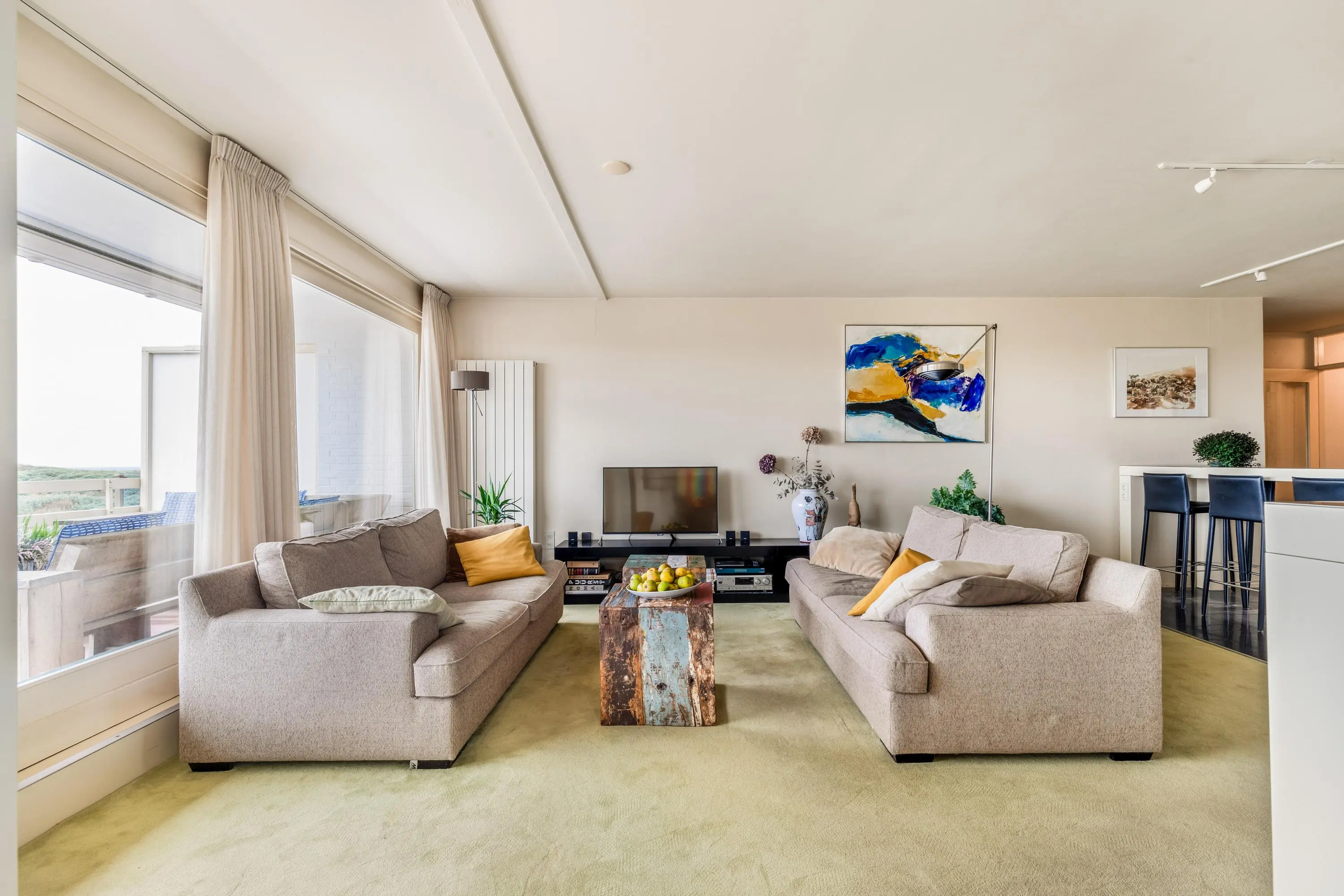 Bij binnenkomst valt direct de lichte woonkamer op. Dankzij de grote raampartijen komt er veel daglicht binnen en heb je een prachtig, vrij uitzicht over de duinen. De woning beschikt over een prettige woonkamer met een zit- en eetgedeelte. Er is vanwege de hoekligging veel licht in de keuken middels het zijraam. Daarnaast is de keuken ruim en beschikt het over diverse inbouwapparatuur, hier kan je eveneens genieten van het fraaie uitzicht. Vanuit de woonkamer schuif je de deur open naar het royale balkon van ca. 20 m² op het zuiden, een heerlijke plek om buiten te zitten en te genieten van de zon en de frisse zeelucht. Dankzij de gunstige ligging kun je hier bovendien de zon zien ondergaan. De slaapkamers zijn licht en bieden voldoende ruimte, waarvan één slaapkamer is voorzien van vaste kasten en de aansluiting voor wasmachine en droger. Verder is er een hal met een separaat toilet en een comfortabele badkamer met wastafelmeubel en inloopdouche.