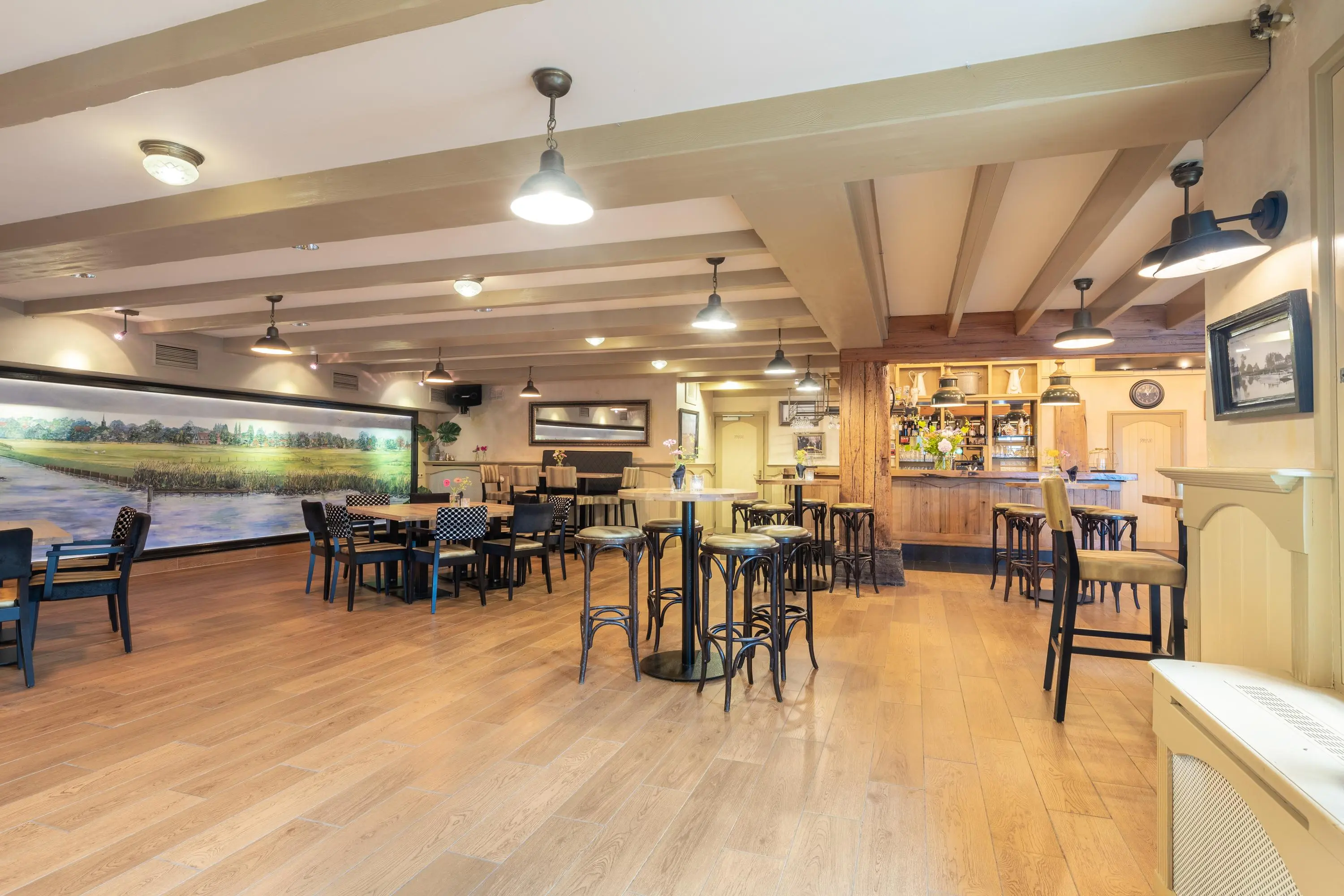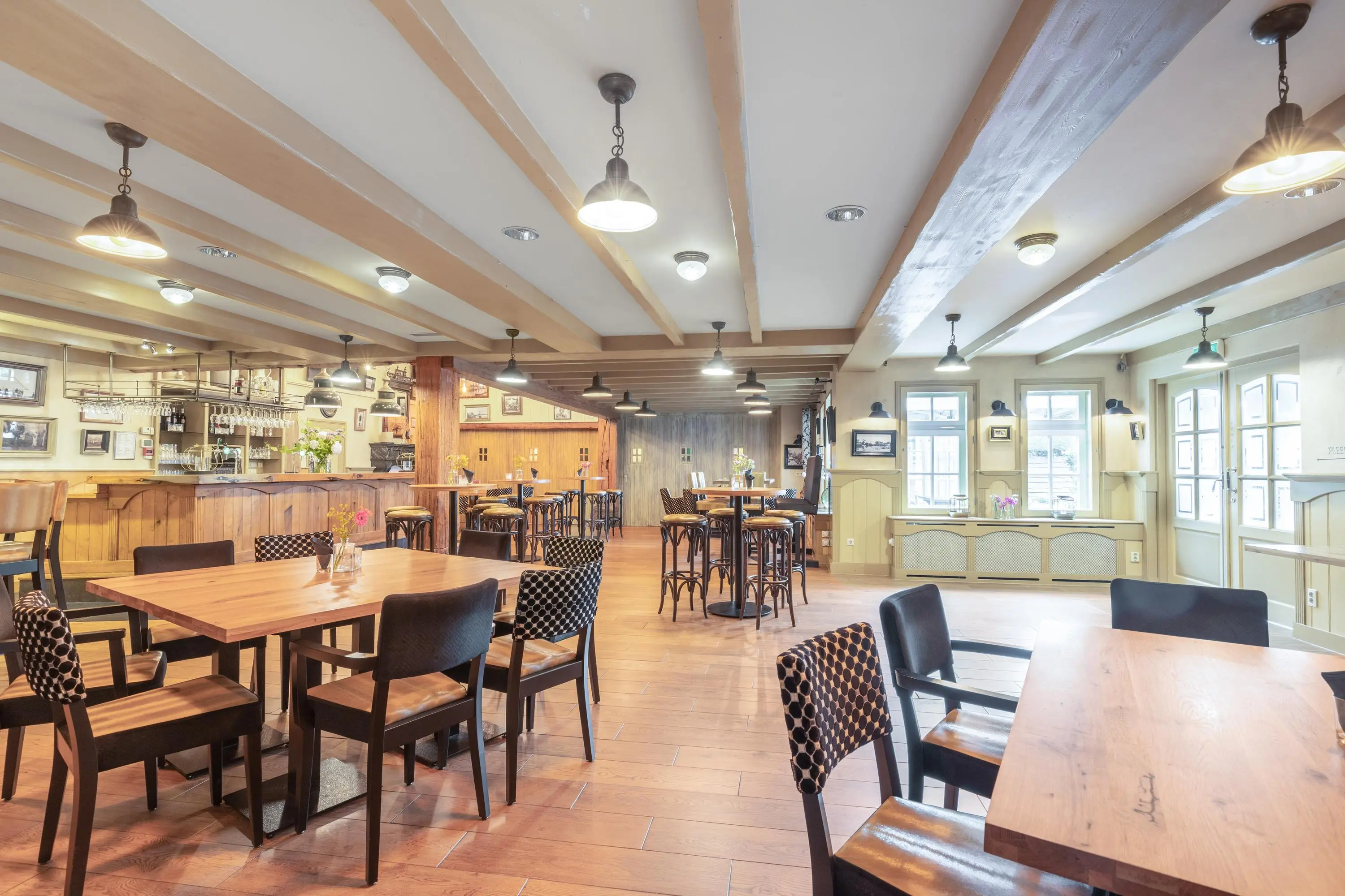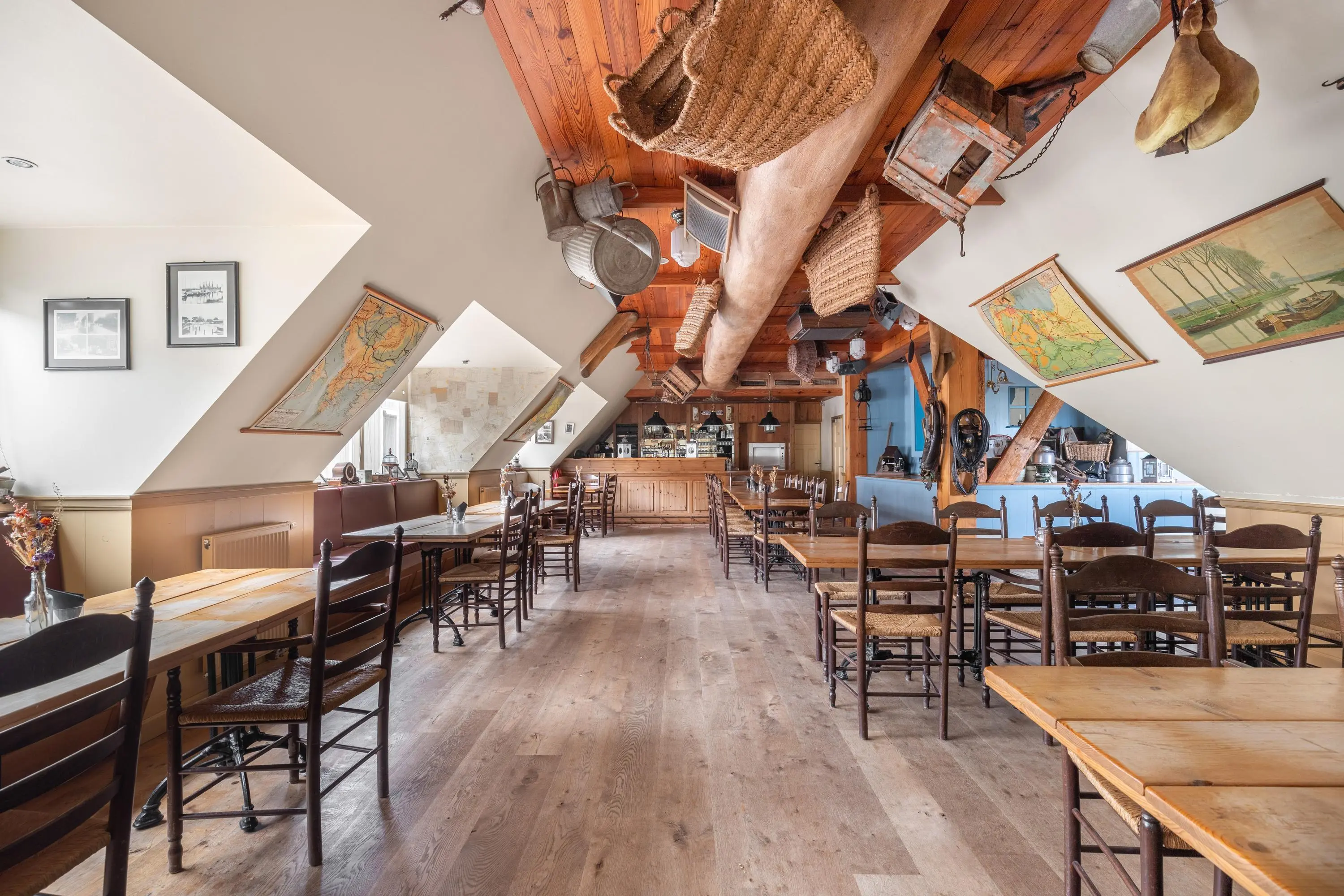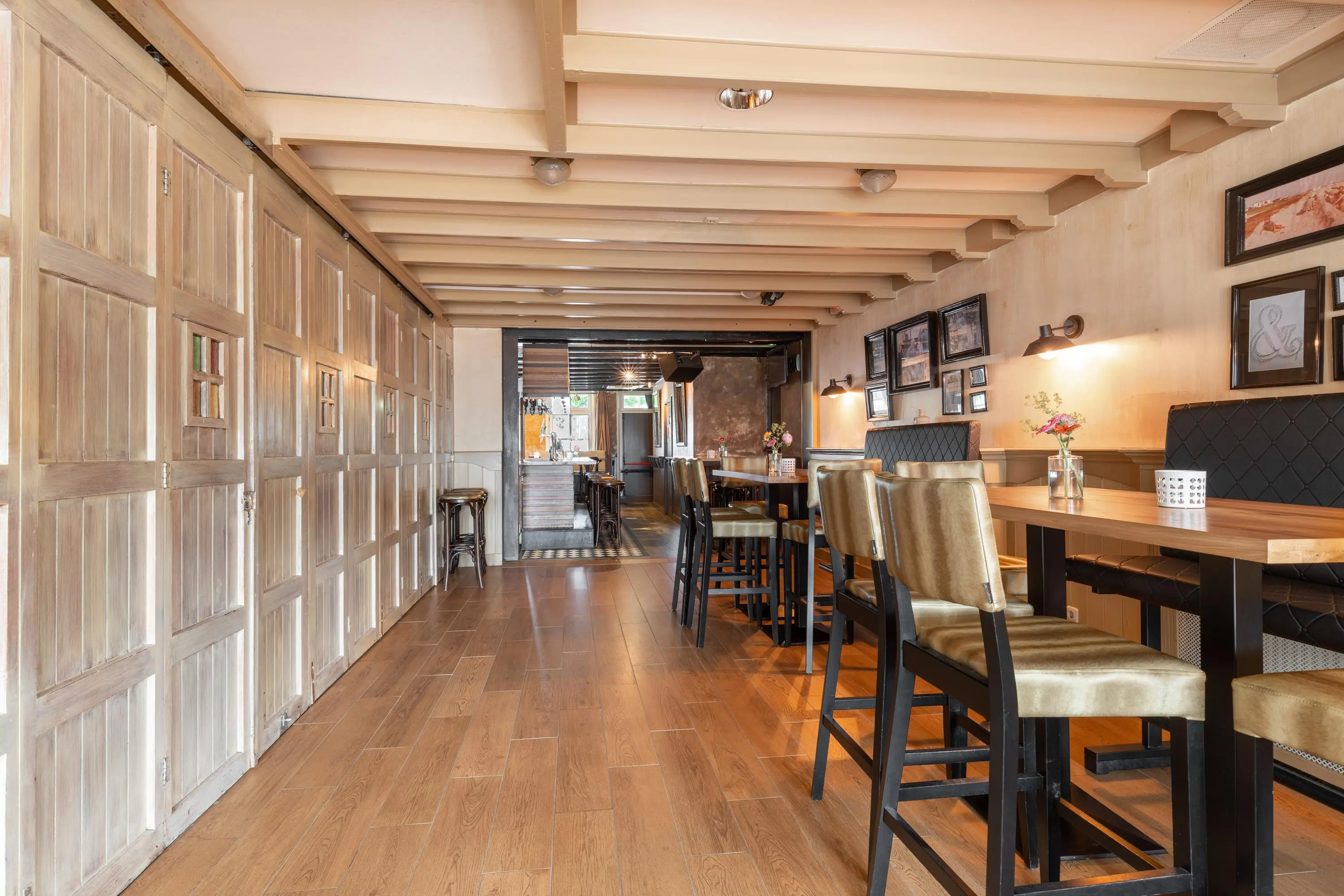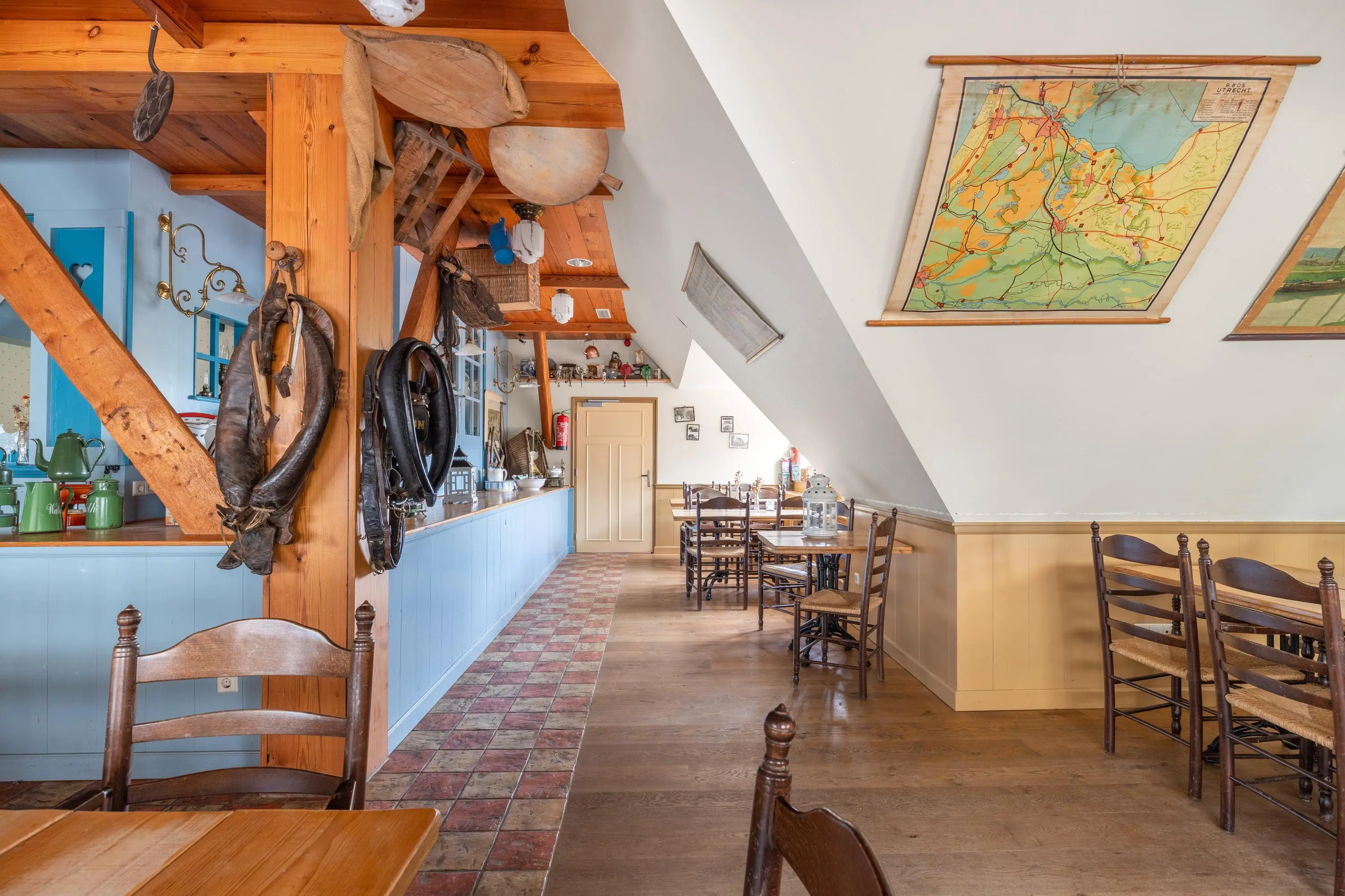 De voormalige stolpboerderij is met respect voor het historische karakter verbouwd tot een volwaardige horecalocatie. Op de begane grond (369 m²) bevindt zich het restaurant, voorzien van een aparte bar met tapinstallatie en een warme, uitnodigende sfeer die zich uitstekend leent voor lange avonden tafelen. Op de eerste verdieping (254 m²) is een sfeervolle ruimte ingericht die zich bij uitstek leent voor kleinere feesten, vergaderingen of groepsdiners.