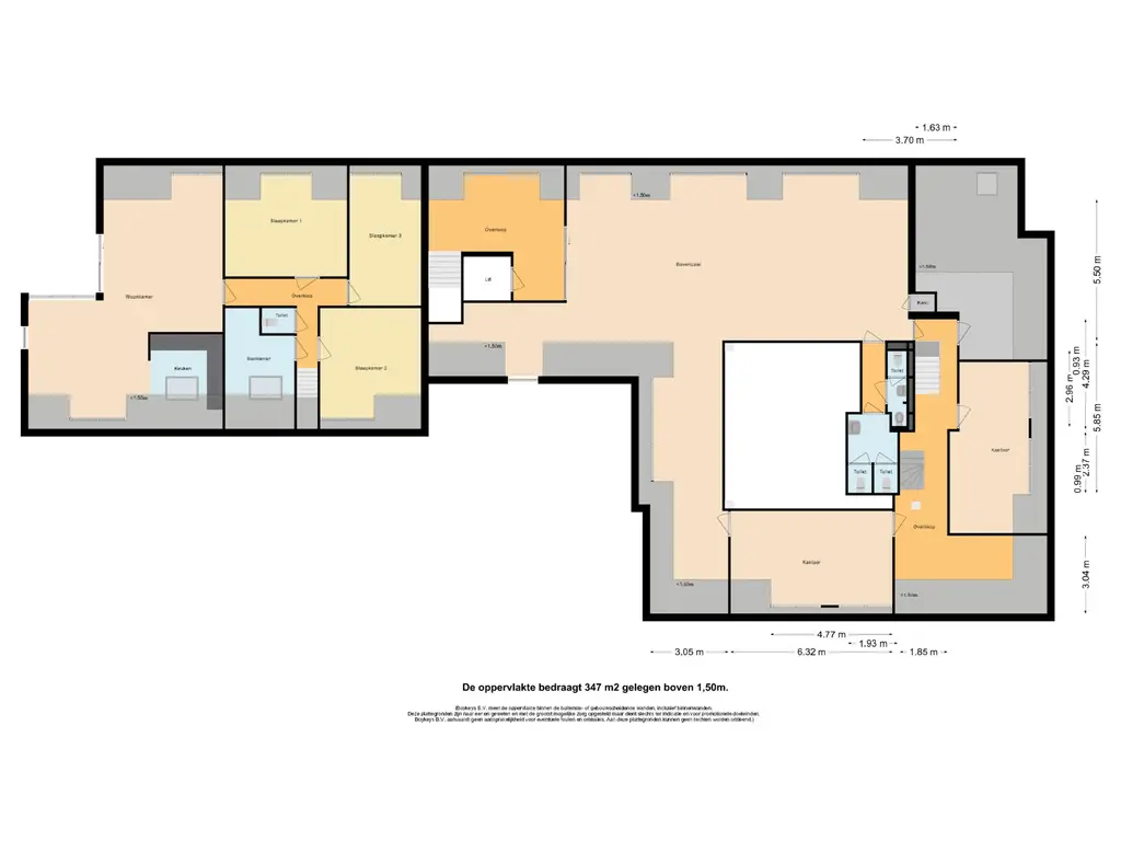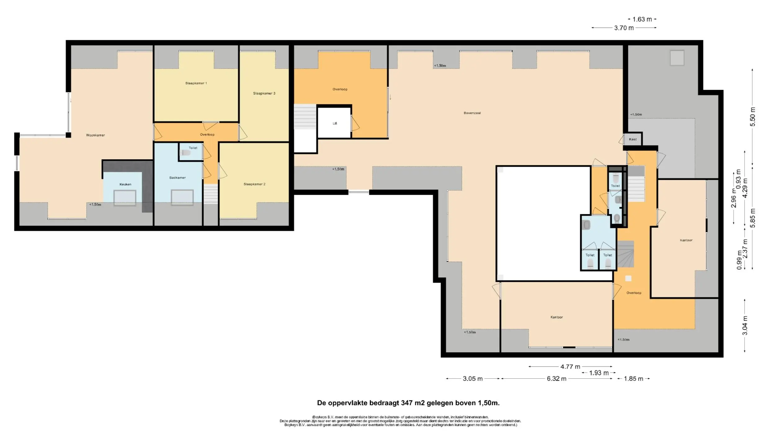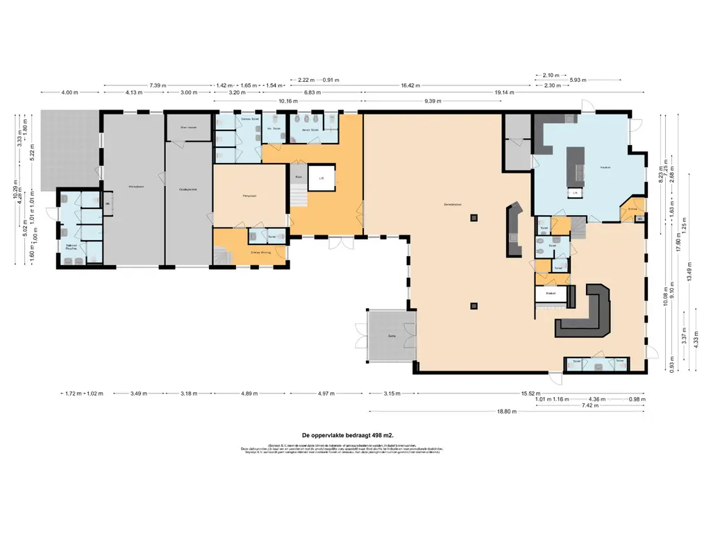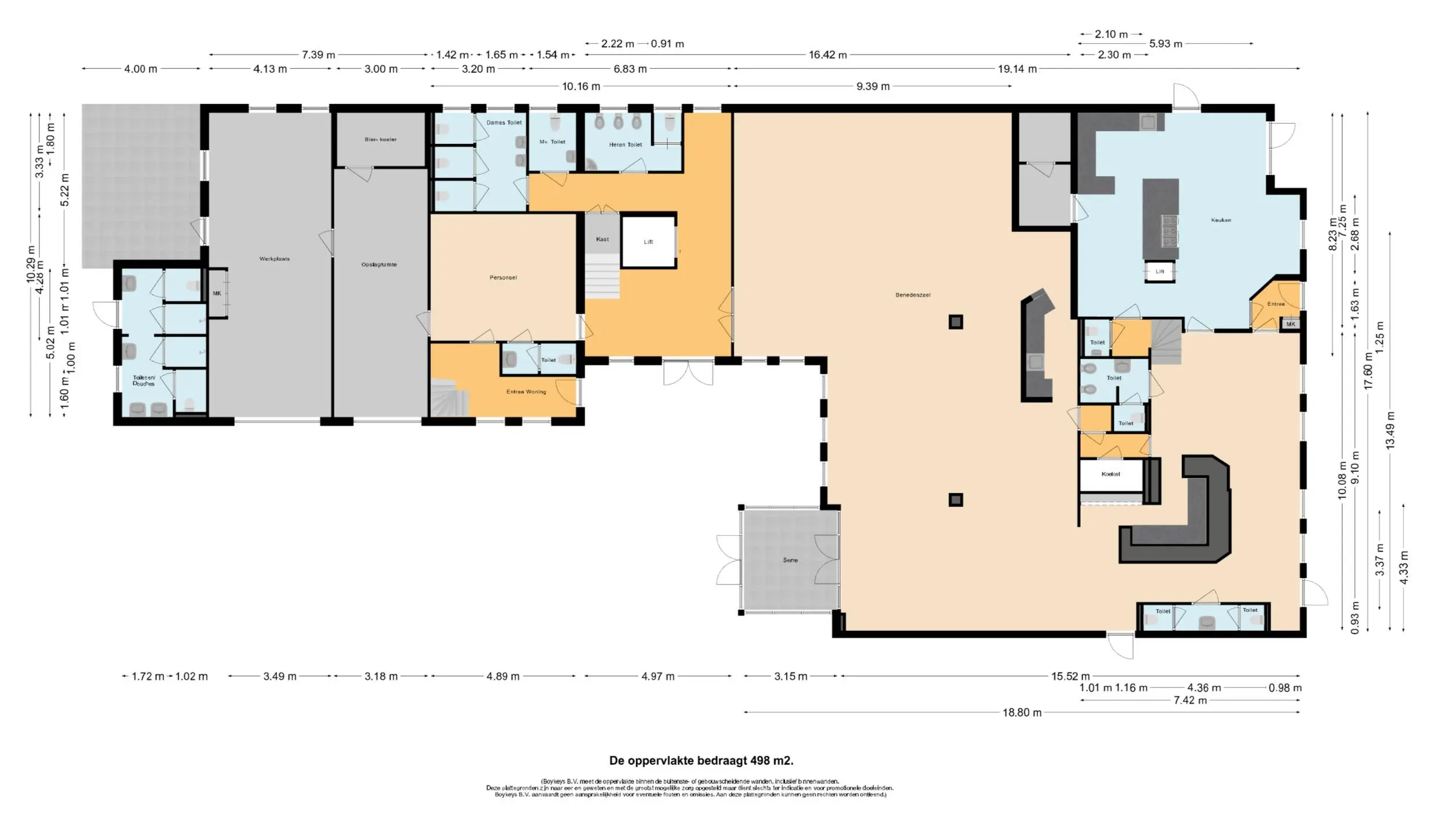 - Totale oppervlakte: 623 m² (369 m² restaurant + 254 m² multifunctionele verdieping);