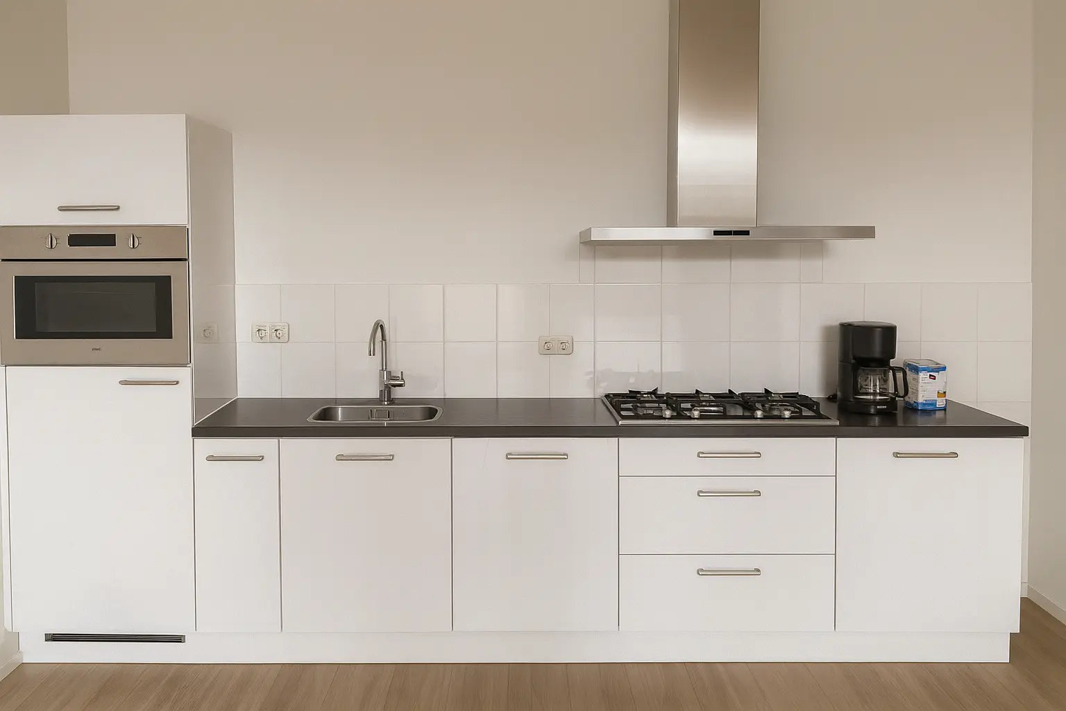 - Ruime woonkamer met open keuken en inbouwapparatuur;