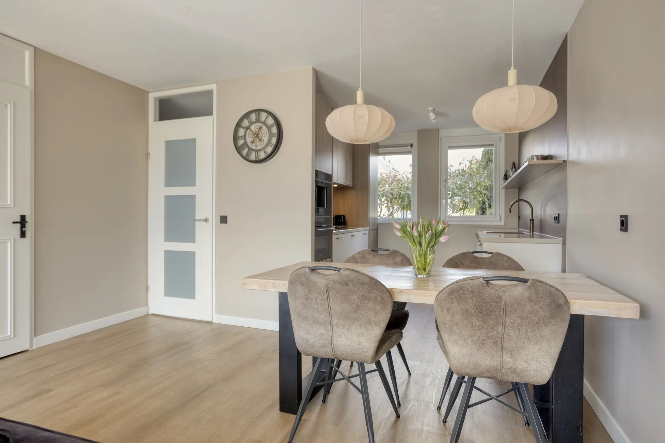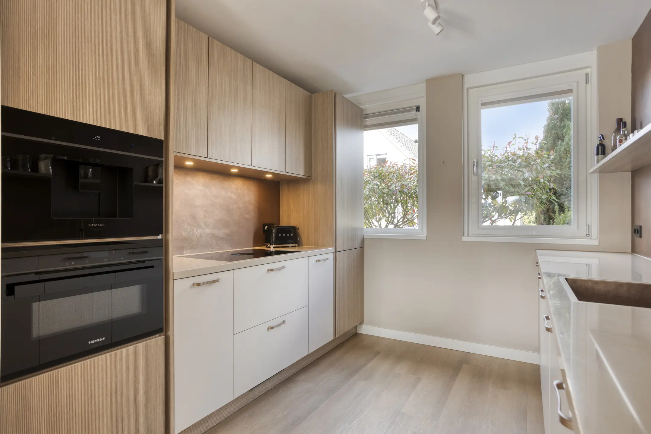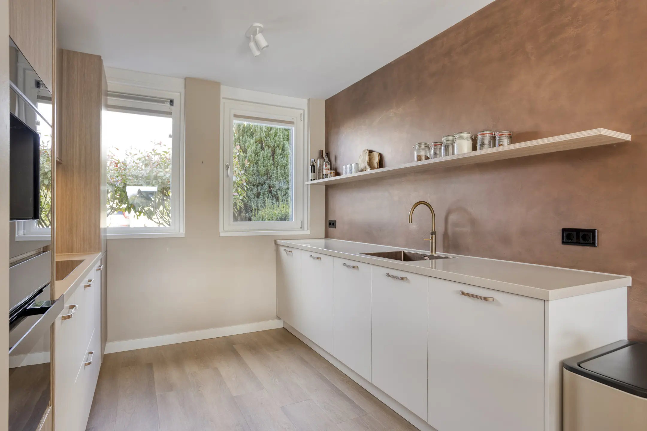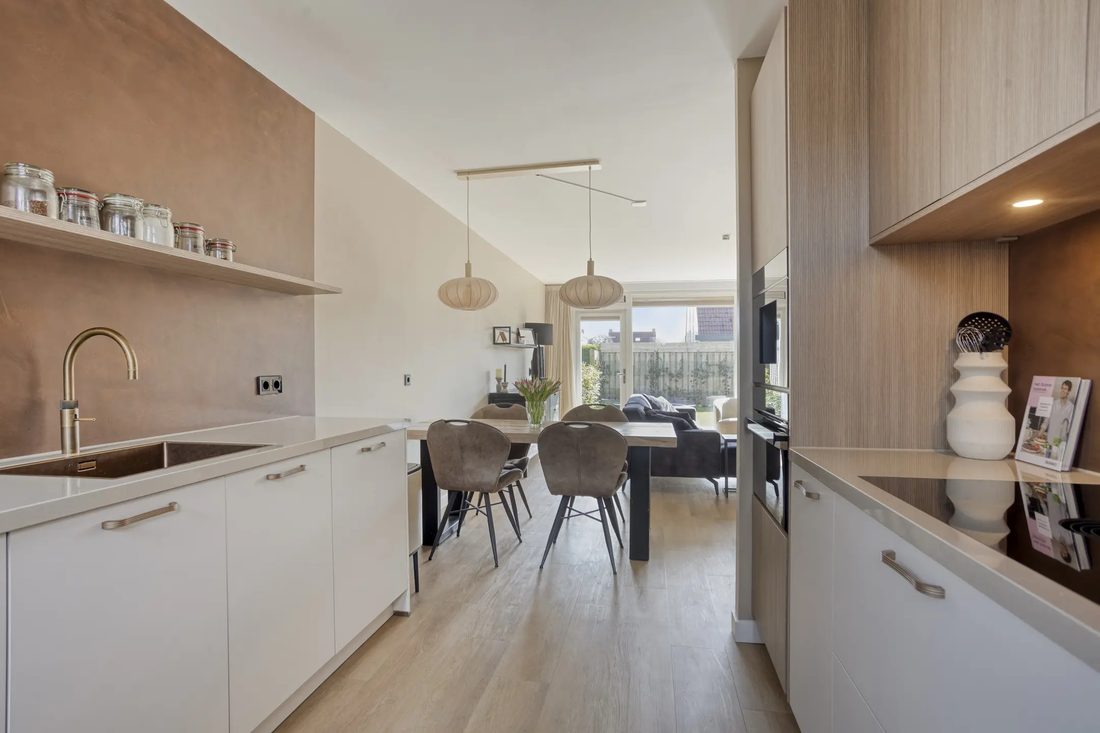 De woonkamer is tuingericht, heerlijk licht en voorzien van een sfeervolle inbouwhaard. Aan de voorzijde bevindt zich een luxe keuken uit 2024, uitgerust met diverse inbouwapparatuur, waaronder een Quooker en een koffiemachine voor de lekkerste creaties.