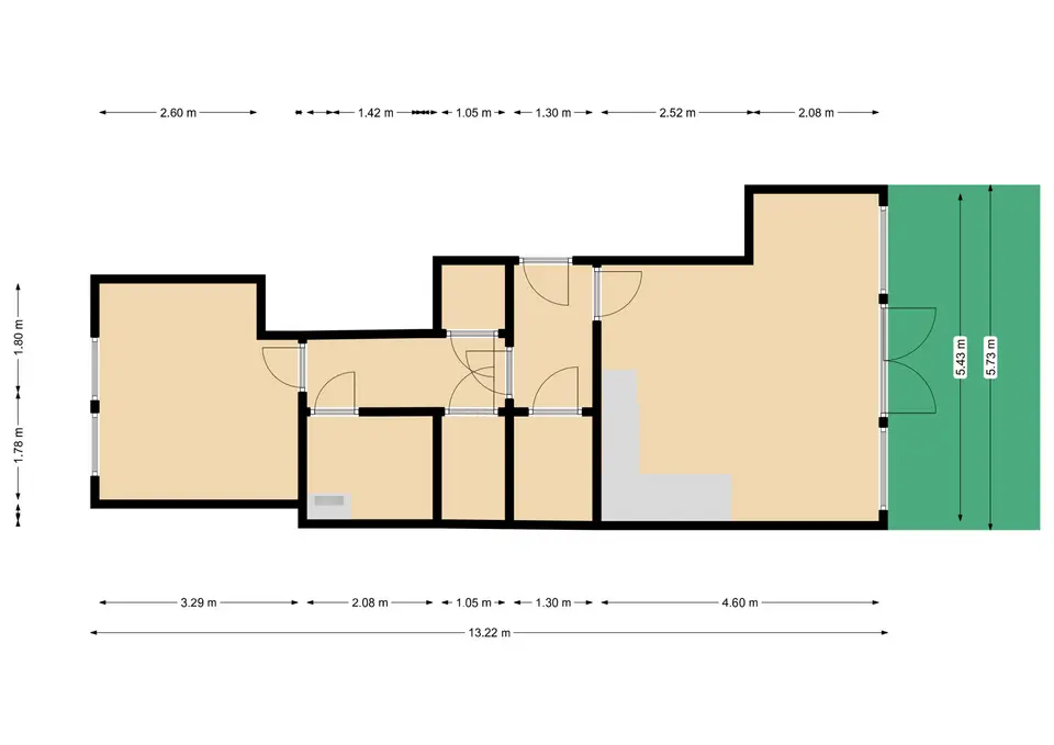 You enter the apartment on the first floor via the central hall. The bright living room with open kitchen forms the heart of the home. The kitchen area can be decorated entirely to your own taste, perfect if you want to apply your own style.