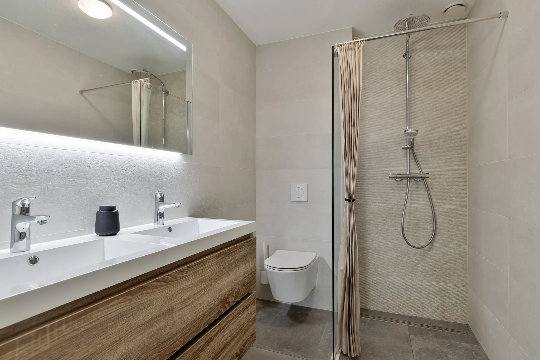 Om in een (bijna) nieuw appartement te wonen hoeft u niet 2 jaar te wachten…én u kunt het wonen direct ervaren tijdens een vrijblijvende bezichtiging in plaatst vanuit een brochure. Noemenswaardig is het feit dat beide slaapkamers zijn voorzien van eigen sanitair, wel zo ideaal. Het gehele appartement beschikt over comfortabele vloerverwarming (én zomers desgewenst koeling) en mede daardoor over energielabel A++. Kortom, de verduurzaming heeft hier reeds plaatsgevonden en bent u klaar voor de toekomst. In de onderbouw heeft u nog de beschikking over een eigen parkeerplaats met berging.