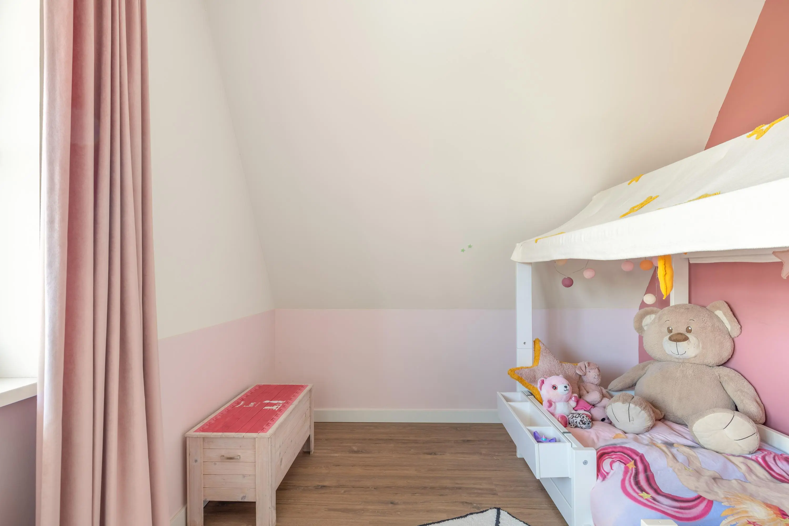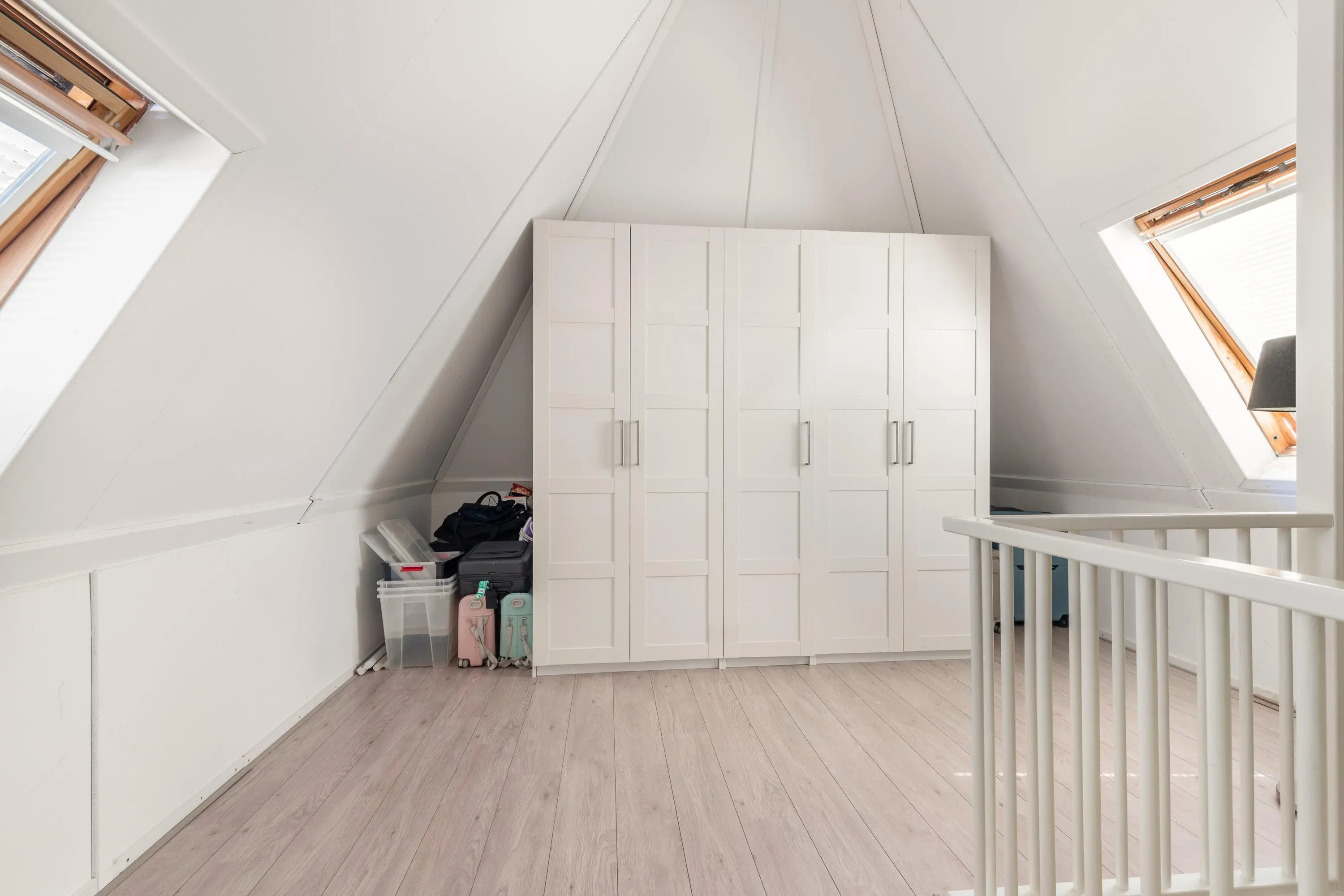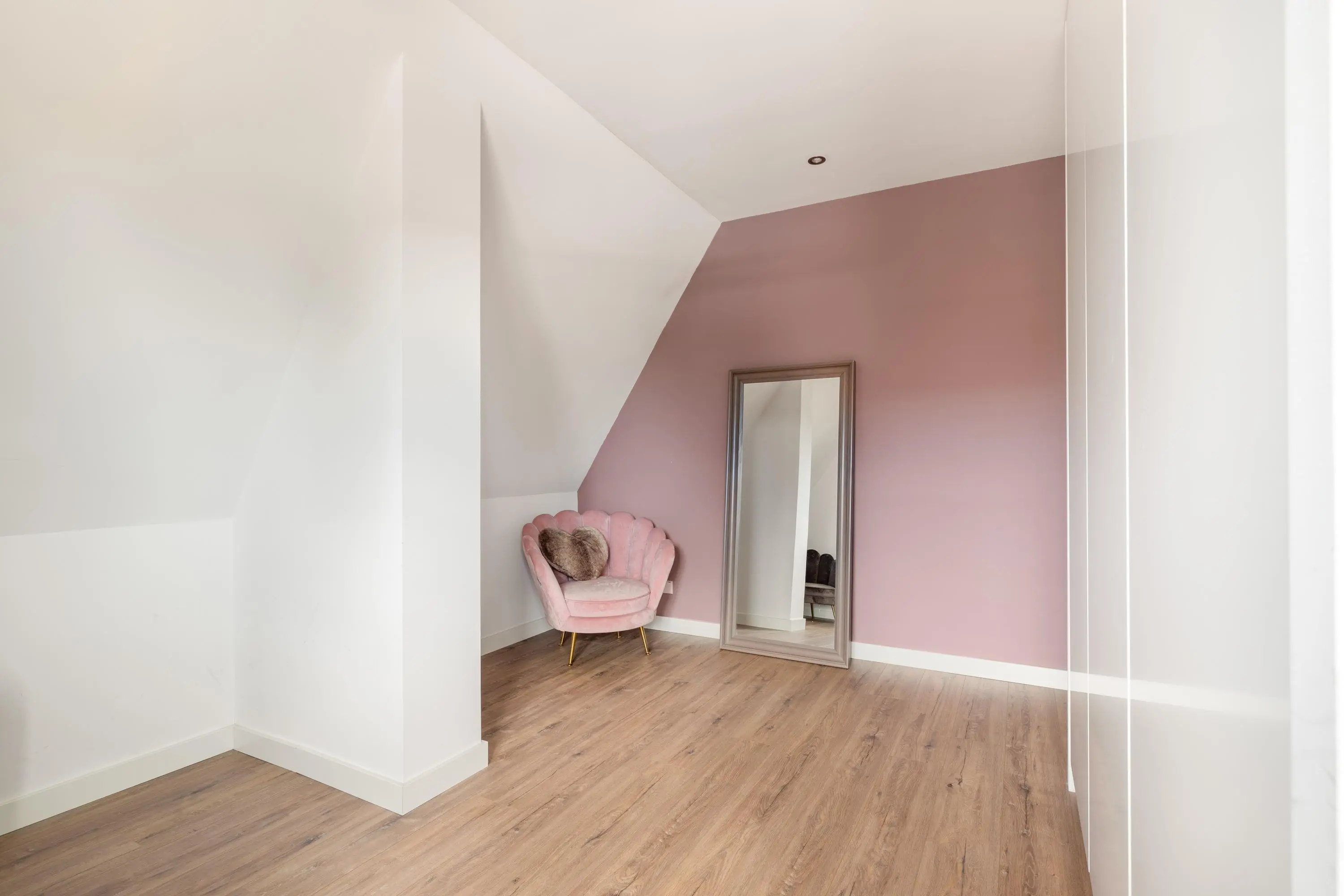 Via de vaste trap bereik je de tweede verdieping. Hier vind je een ruime overloop en een vijfde slaapkamer, die ook uitstekend dienst kan doen als hobby- of werkkamer.