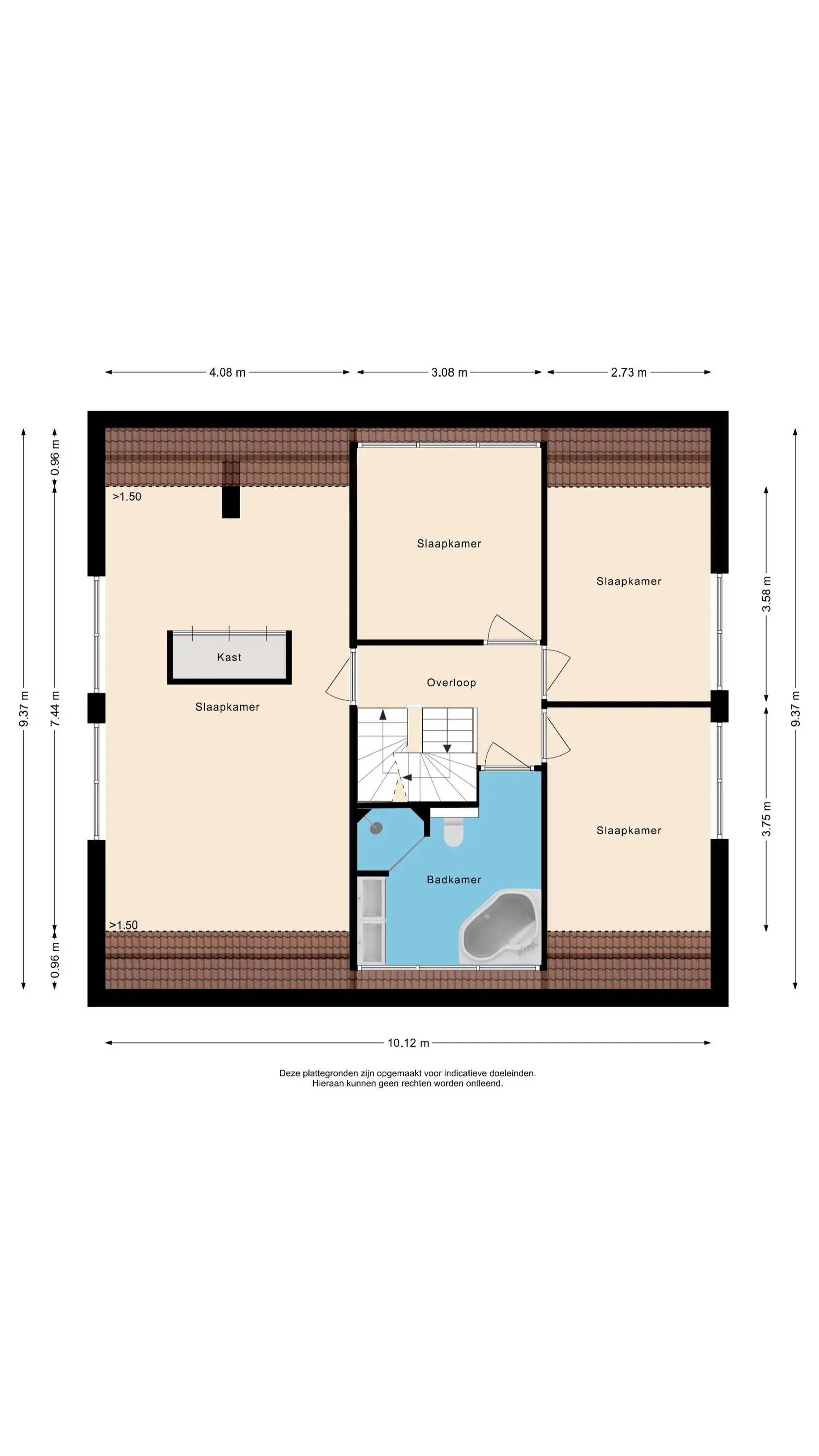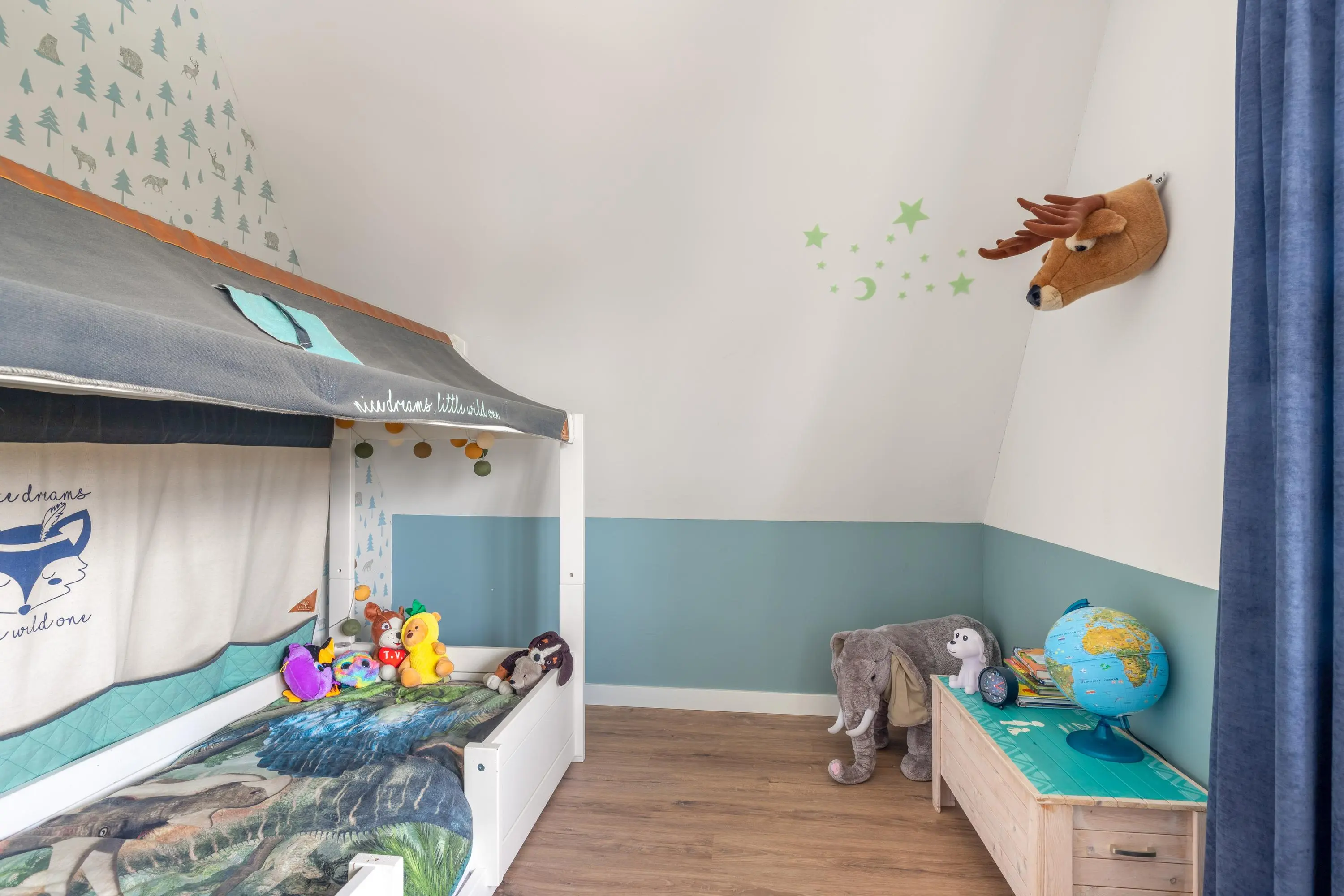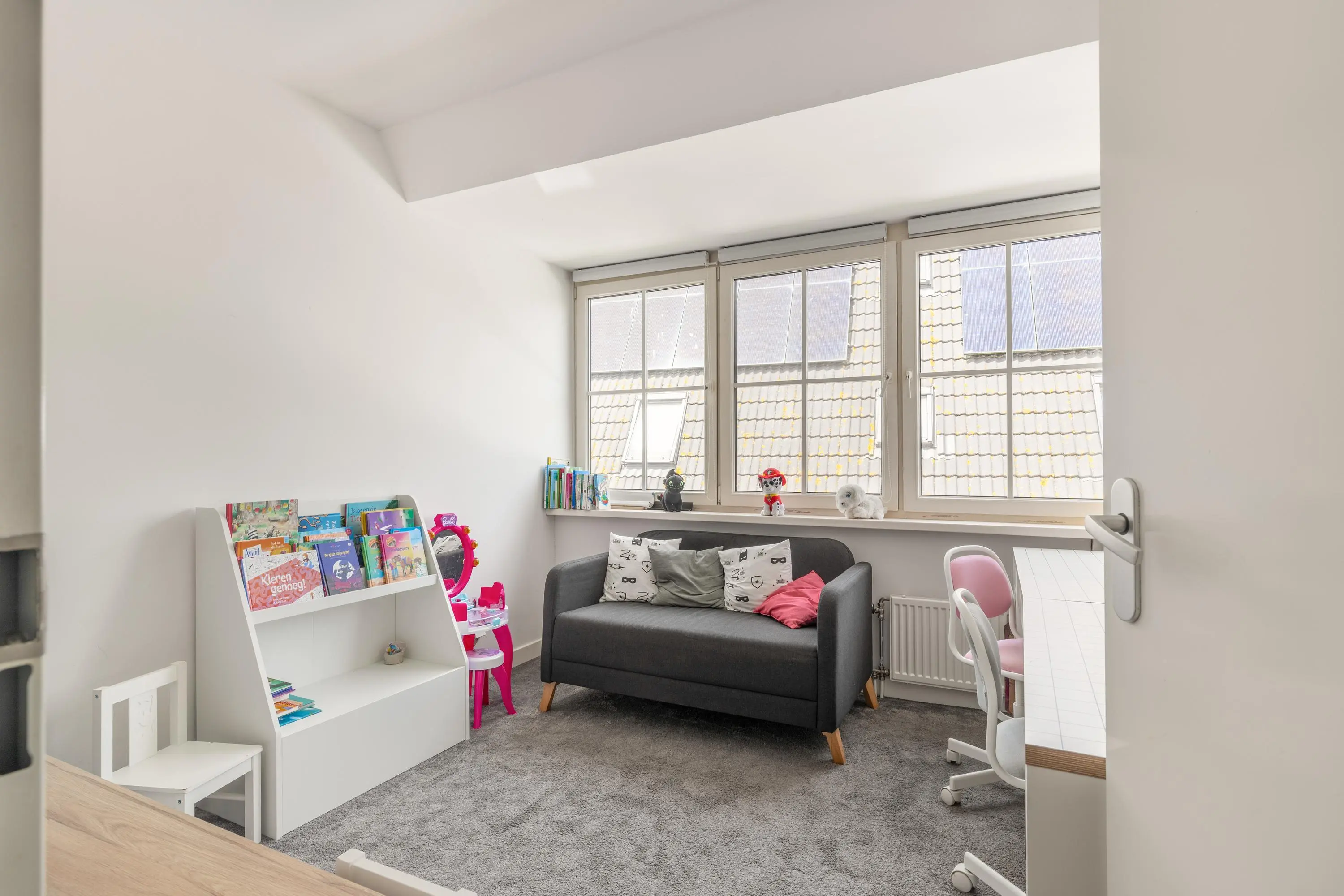 Via de vaste trap bereik je de tweede verdieping. Hier vind je een ruime overloop en een vijfde slaapkamer, die ook uitstekend dienst kan doen als hobby- of werkkamer.