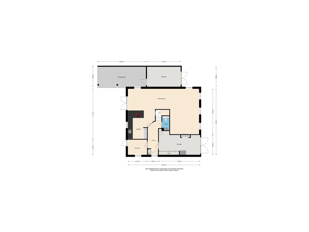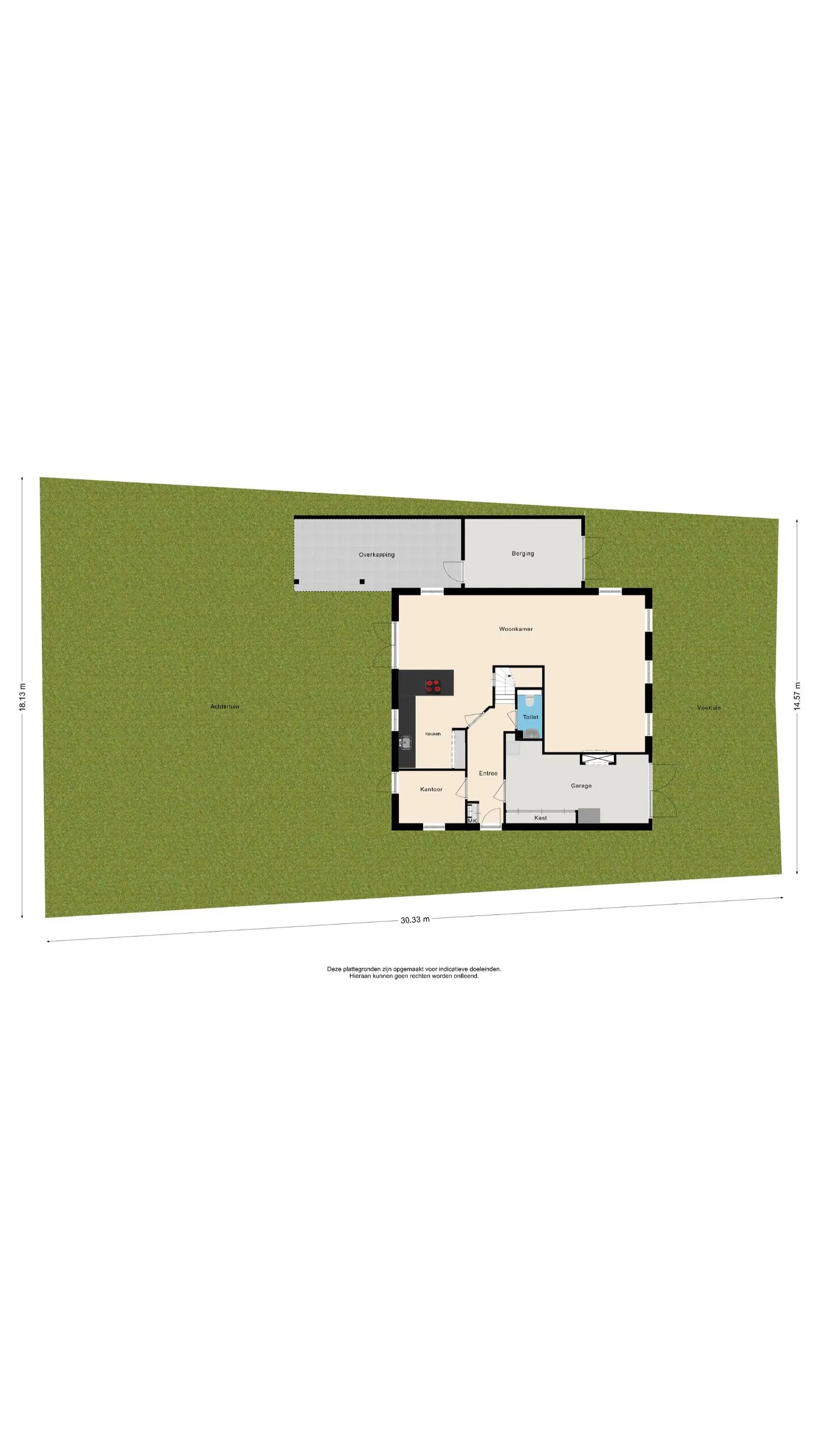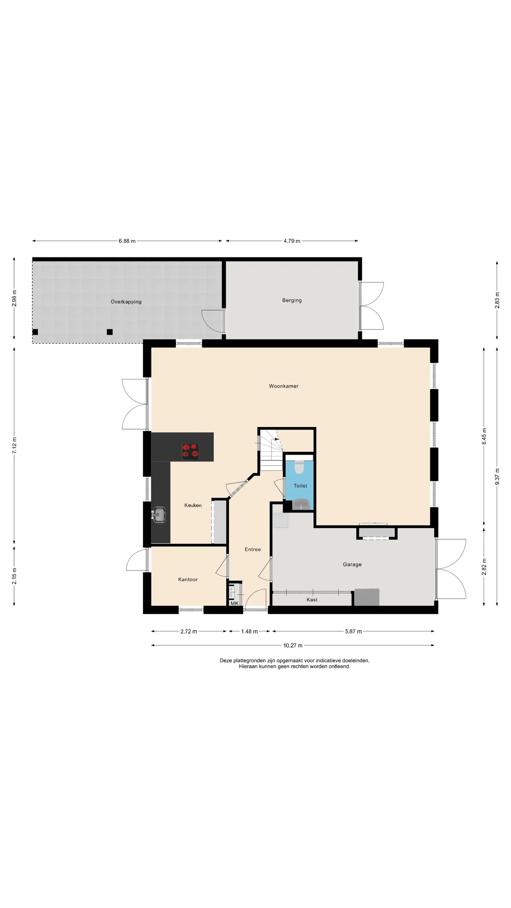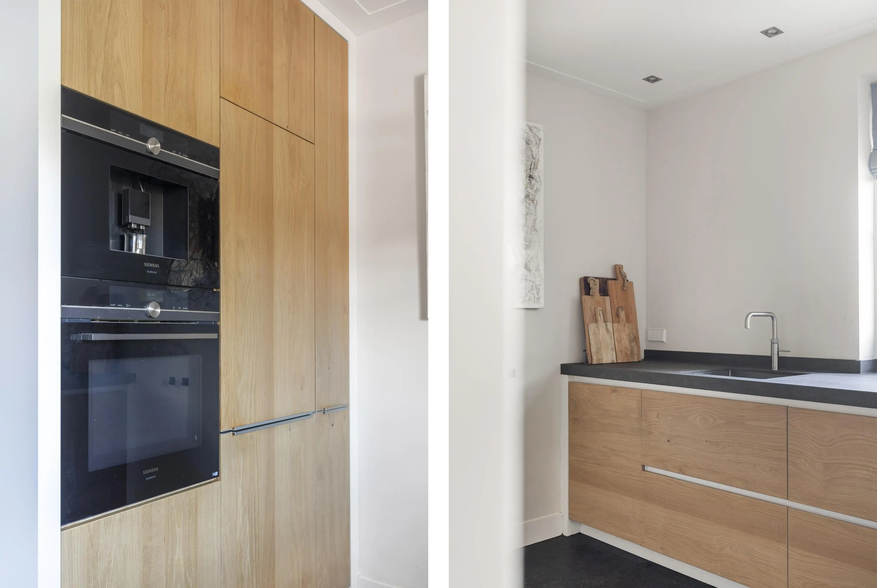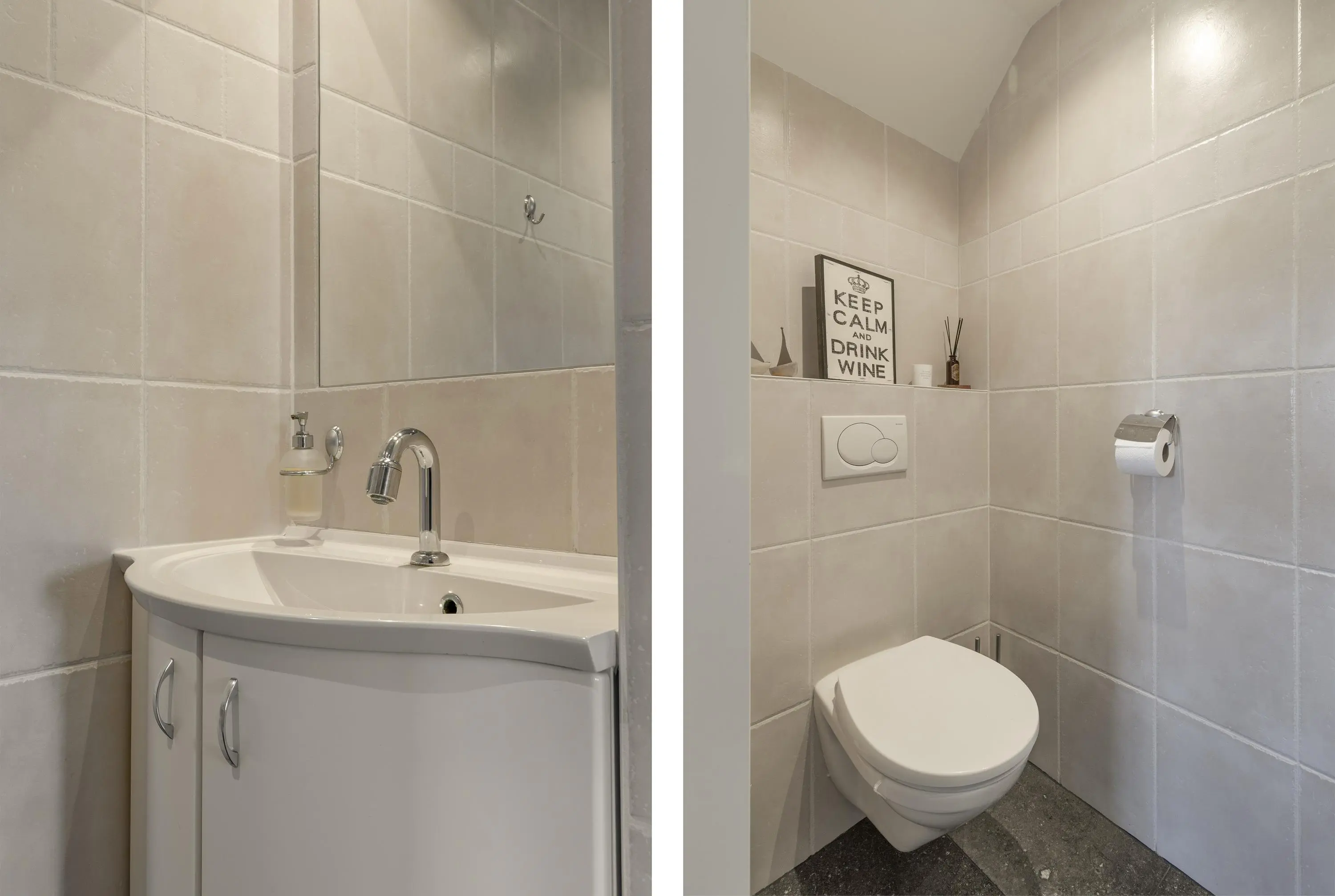 Bij binnenkomst stap je in een nette hal met toegang tot het toilet, het kantoor en de garage. Vanuit de hal loop je door naar de moderne open keuken, voorzien van luxe inbouwapparatuur en een Quooker. De keuken biedt uitzicht op de tuin en loopt naadloos over in de eetkamer met openslaande deuren naar buiten, perfect om het binnen- en buitenleven te combineren. De woonkamer ligt aan de voorzijde van de woning en geniet veel natuurlijk licht dankzij de vele raampartijen. De gehele begane grond is voorzien van vloerverwarming, wat zorgt voor optimaal comfort.