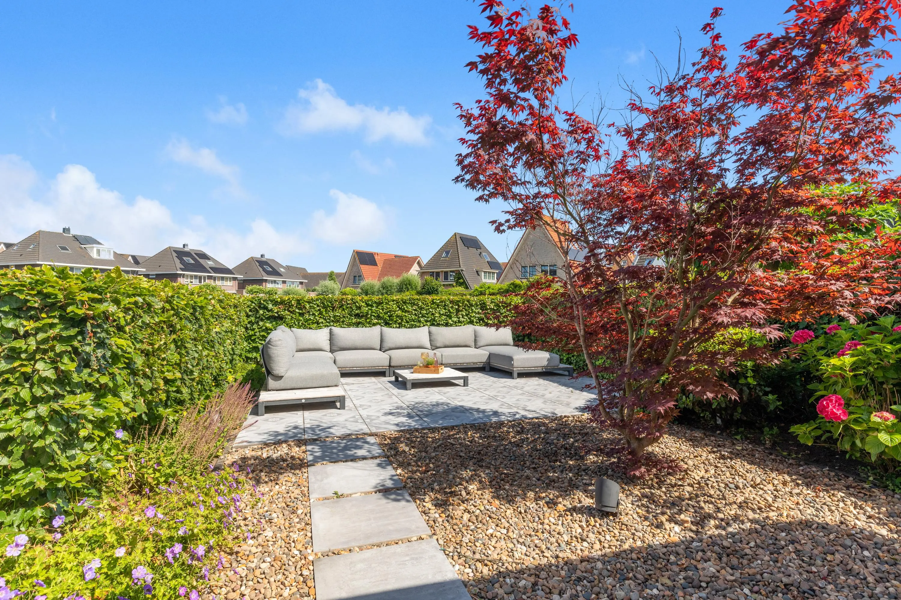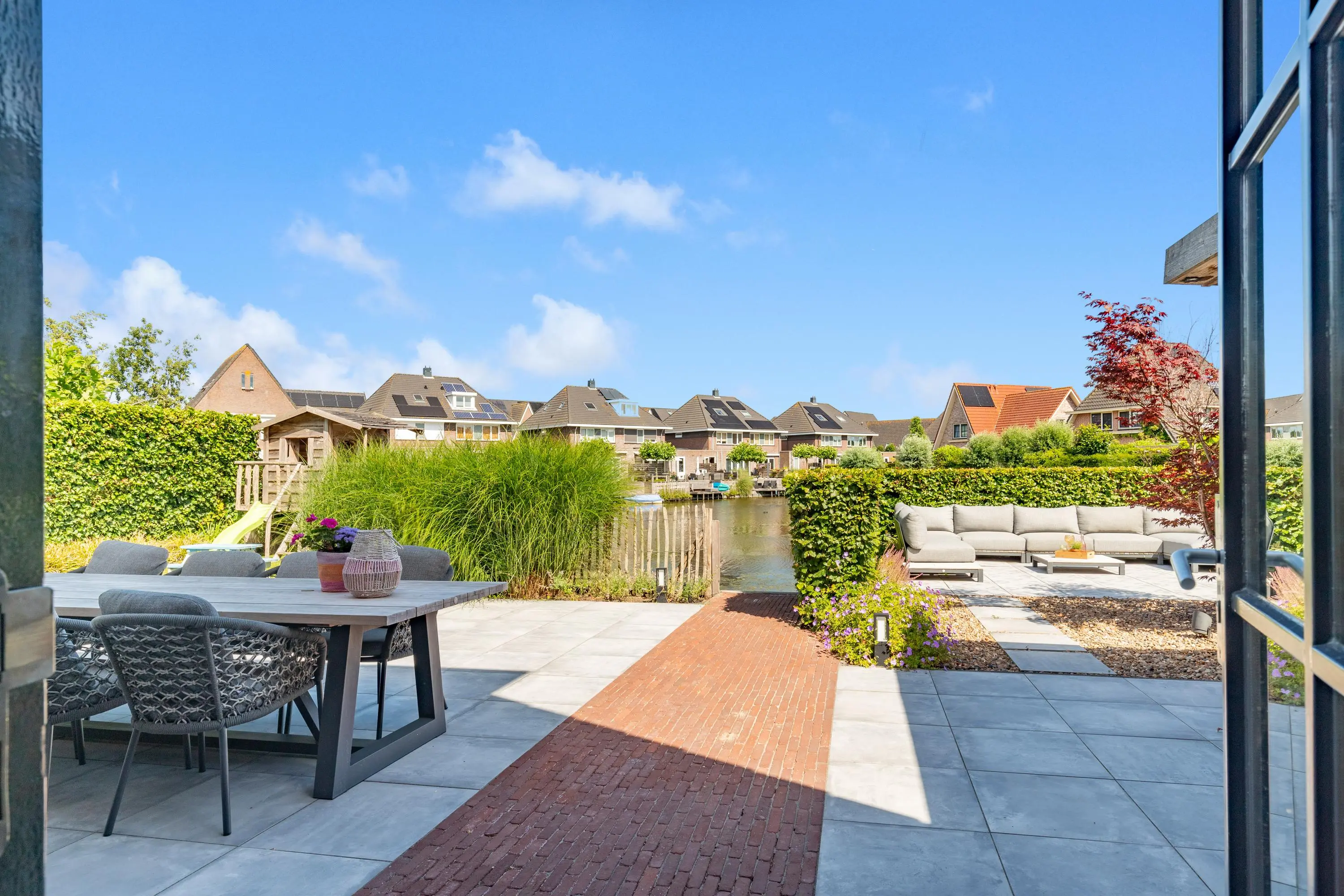 De fraai aangelegde tuin is goed onderhouden en biedt een schitterend uitzicht over het verlengde van het Uitgeestermeer. Met een bootje vaar je zo je eigen achtertuin in, of je gaat direct vanaf je vlonder het water op om te suppen. Er zijn twee ruime terrassen met plek voor zowel een loungeset als een eettafel. Daarnaast beschikt de tuin over een overkapping, waardoor je het hele jaar door buiten kunt barbecueën. Vanuit de overkapping bereik je de berging met vloerverwarming, handig voor het stallen van bijvoorbeeld een motor, fietsen of tuingereedschap.