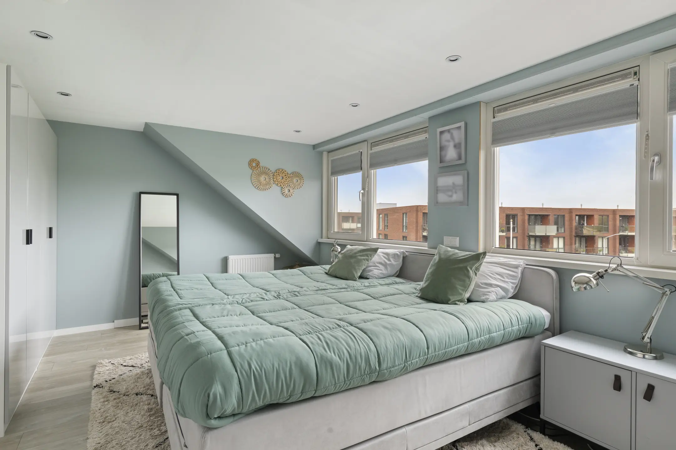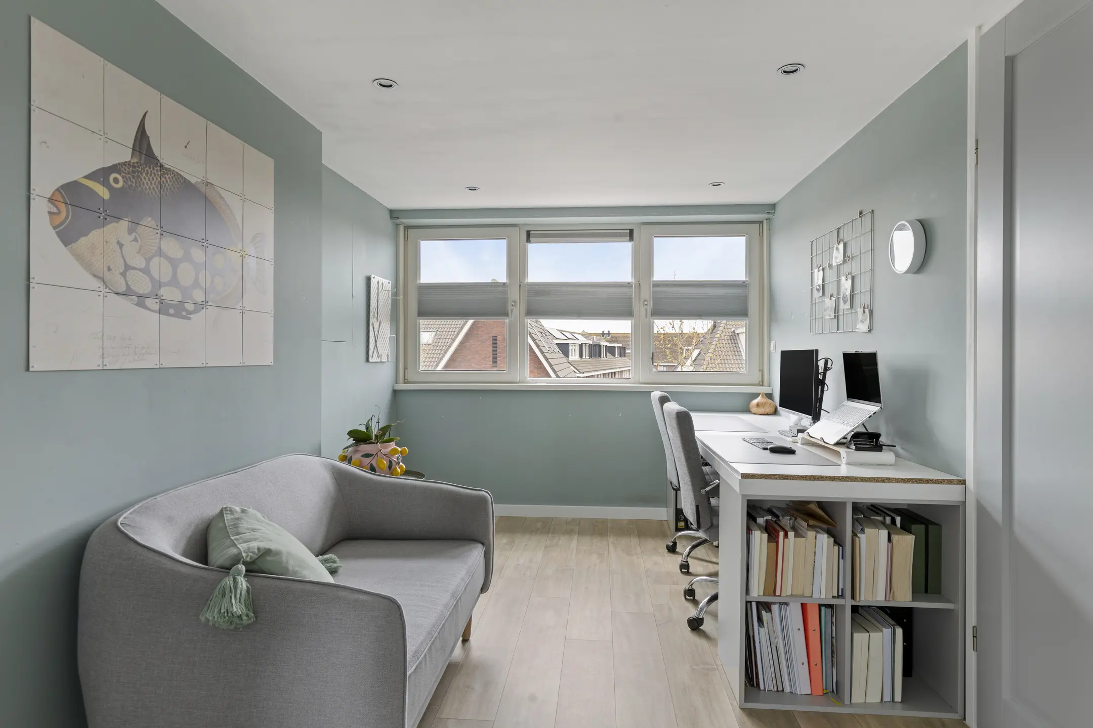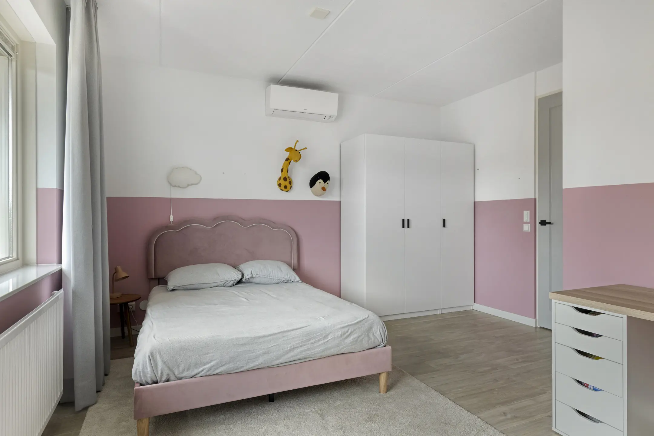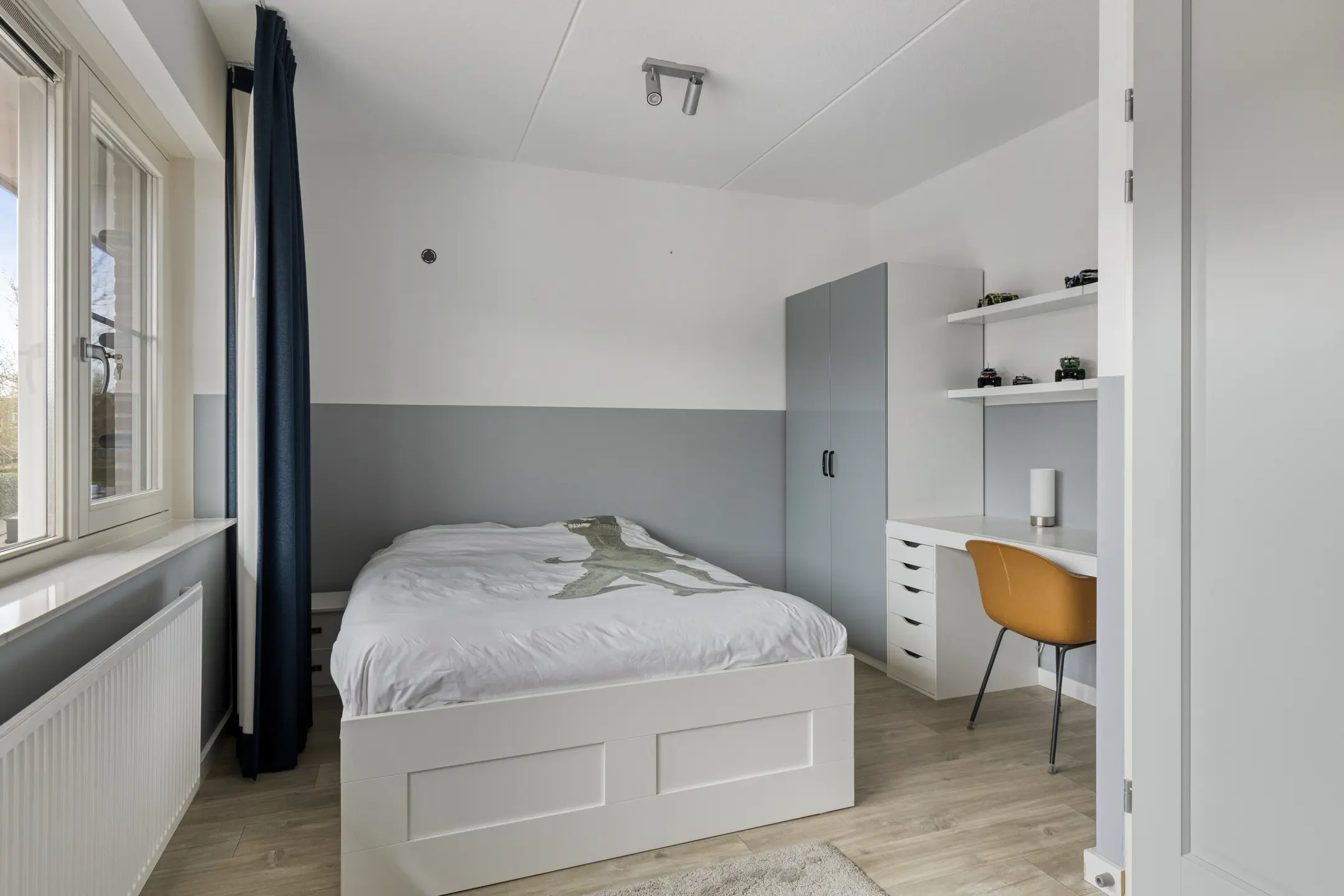 Op de eerste verdieping bevinden zich twee ruime slaapkamers met strak gestuukte wanden en een nette, praktisch ingerichte badkamer met inloopdouche, wastafelmeubel en toilet. De tweede verdieping biedt dankzij de dakkapel een derde, zeer ruime slaapkamer. Extra comfort in de zomer wordt geboden door de airconditioning in elke slaapkamer.