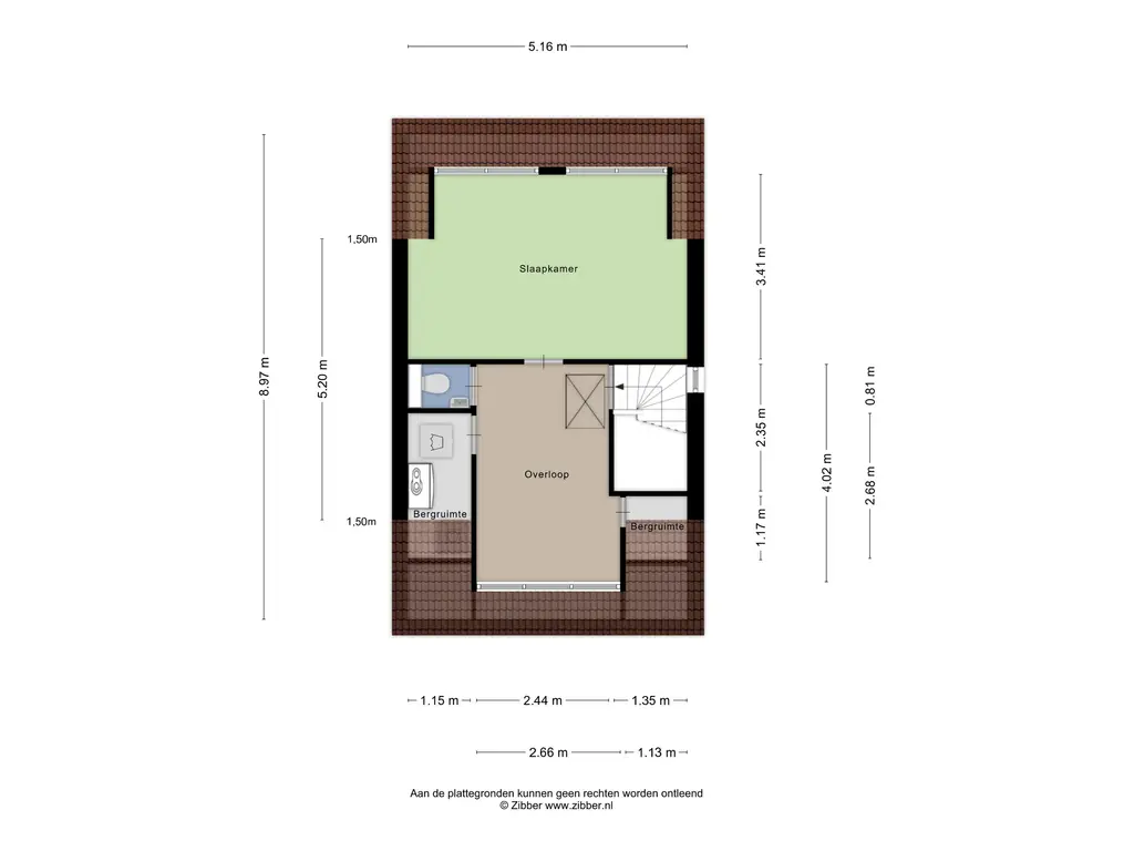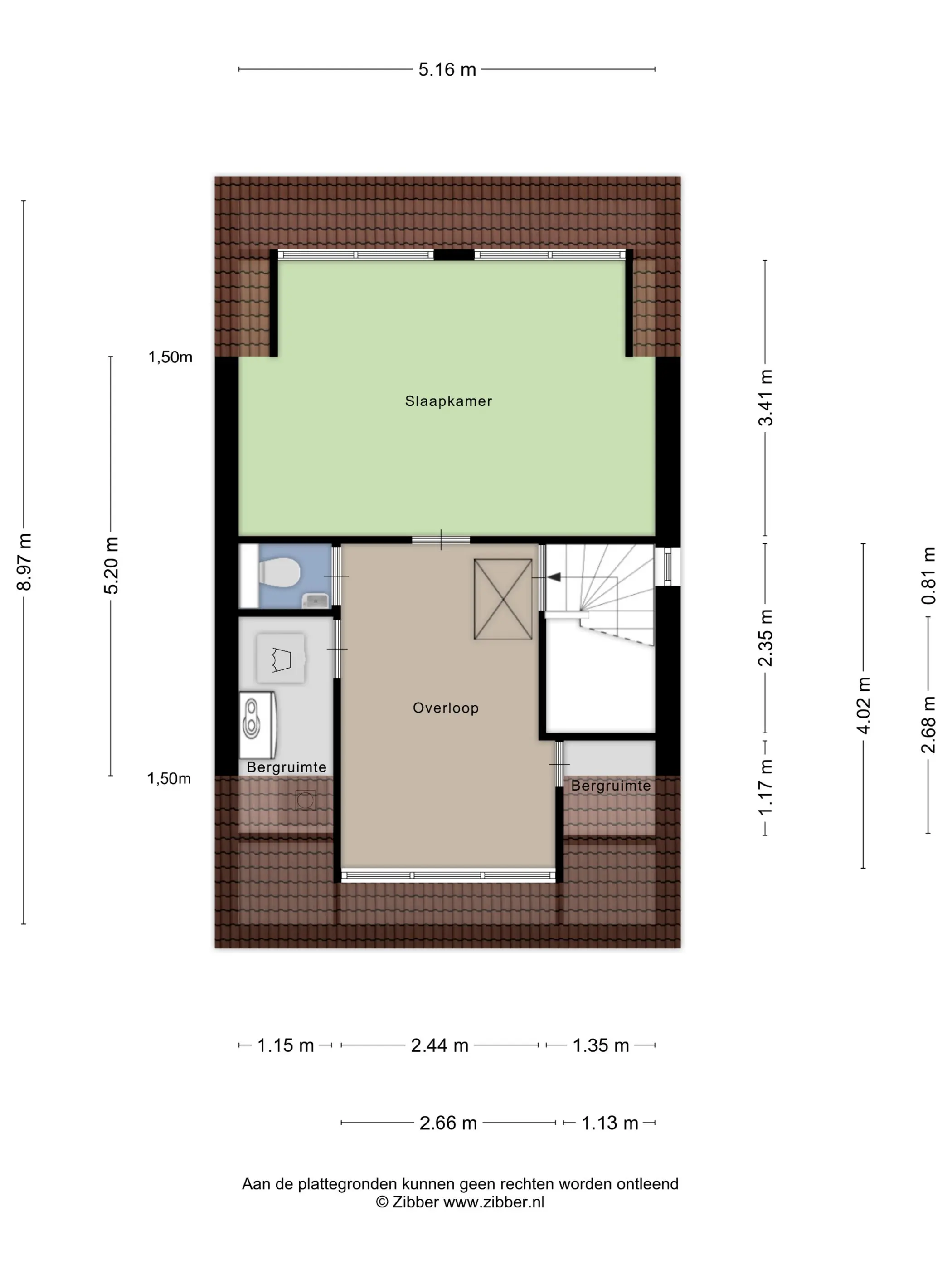 Op de overloop, die zich uitstekend leent als thuiswerkplek maar ook kan worden ingericht als extra slaapkamer, bevinden zich de wasruimte en de toegang tot het toilet. Daarnaast is er een praktische vliering aanwezig die zorgt voor extra bergruimte.