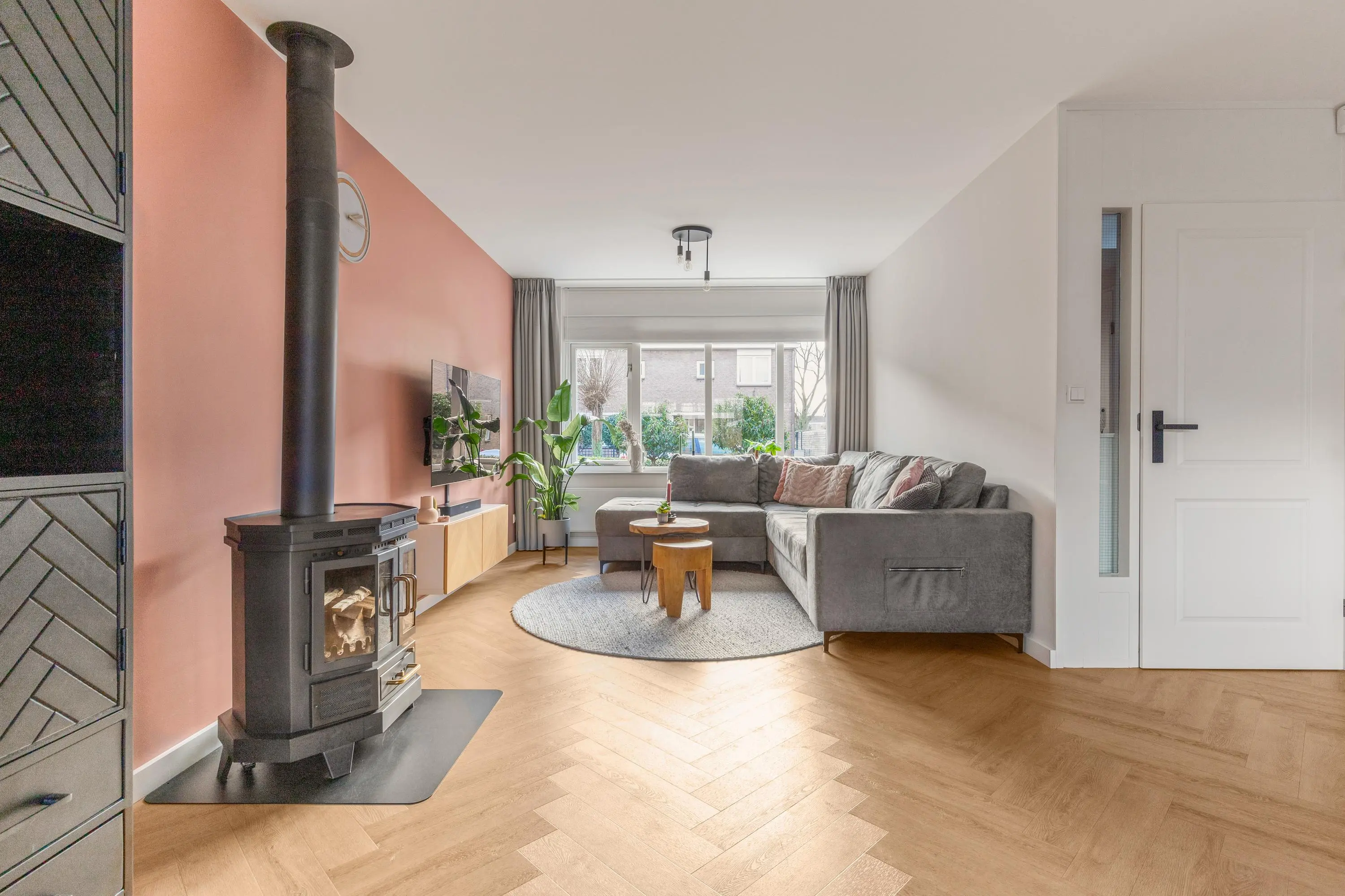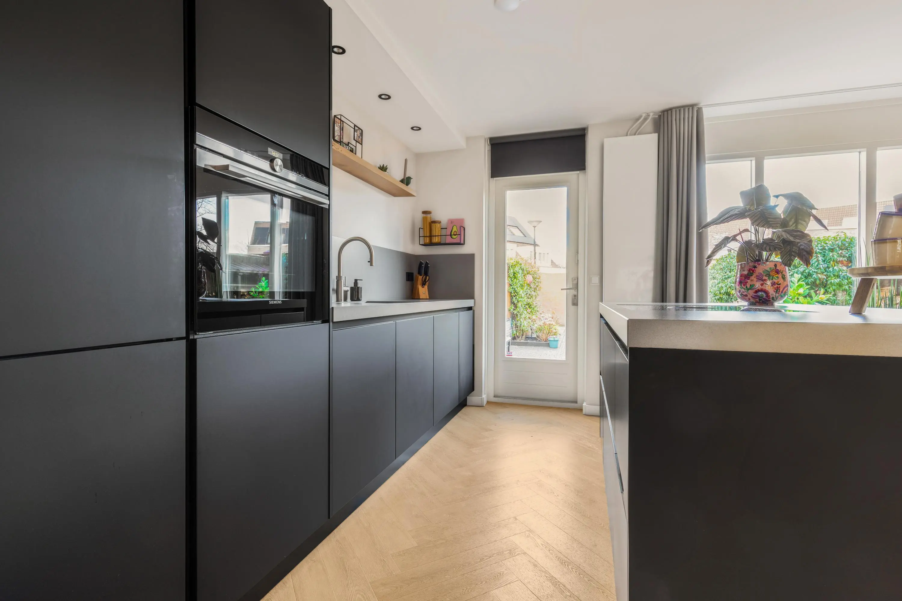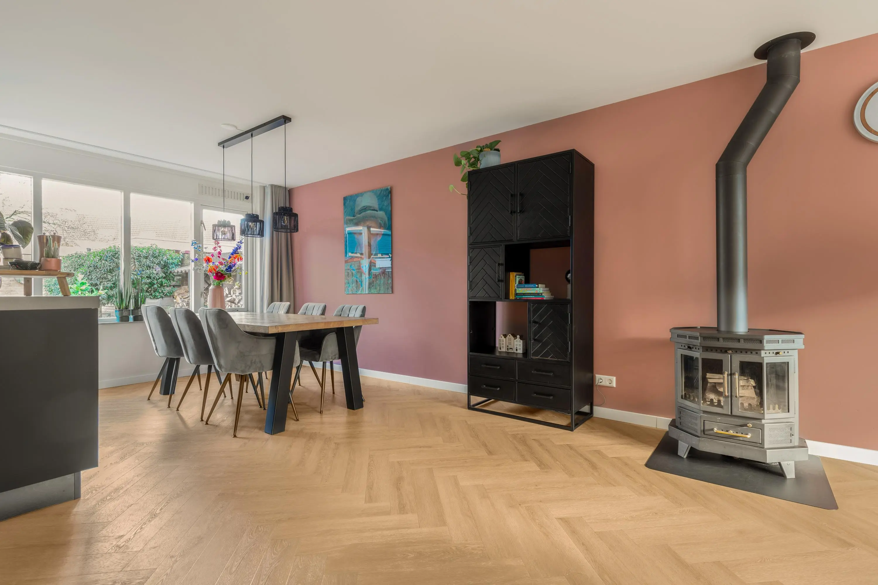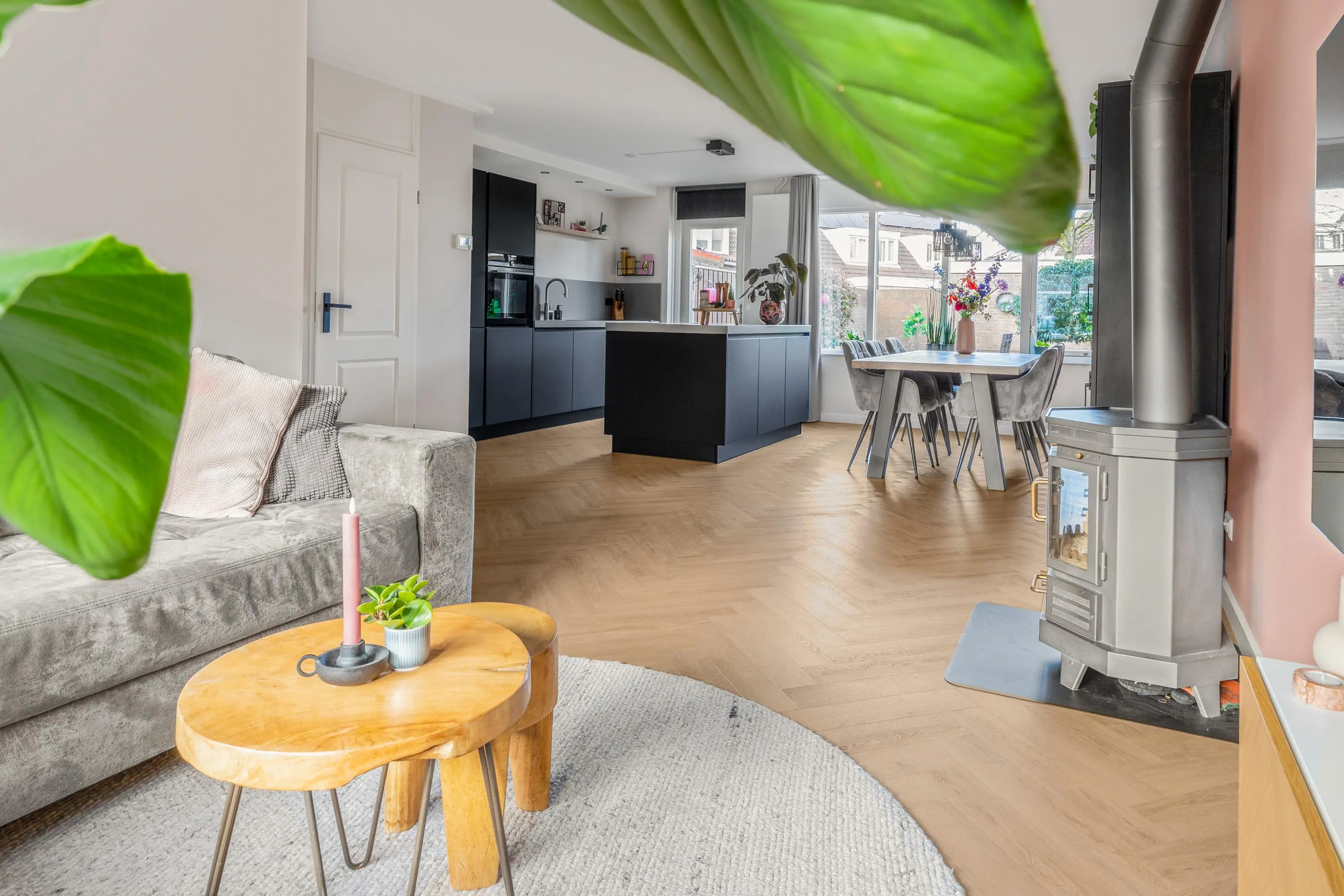 Via de entree kom je in de hal met toegang tot de woonkamer en het separate toilet. De ruime doorzonwoonkamer beschikt over veel natuurlijke lichtinval en is voorzien van een sfeervolle open haard, wat zorgt voor een warme en gezellige uitstraling. De afwerking van de woning is zeer netjes met een prachtige PVC vloer en strak gestukte wanden. De open en zeer moderne keuken (2021) sluit naadloos aan op de woonkamer en is ingericht met een kookeiland. De keuken is uitgerust met diverse inbouwapparatuur, waaronder een inductie kookplaat, vaatwasser en een combi-oven. Deze heerlijke woonkeuken is een ideale ruimte voor gezellige avonden met familie en vrienden.