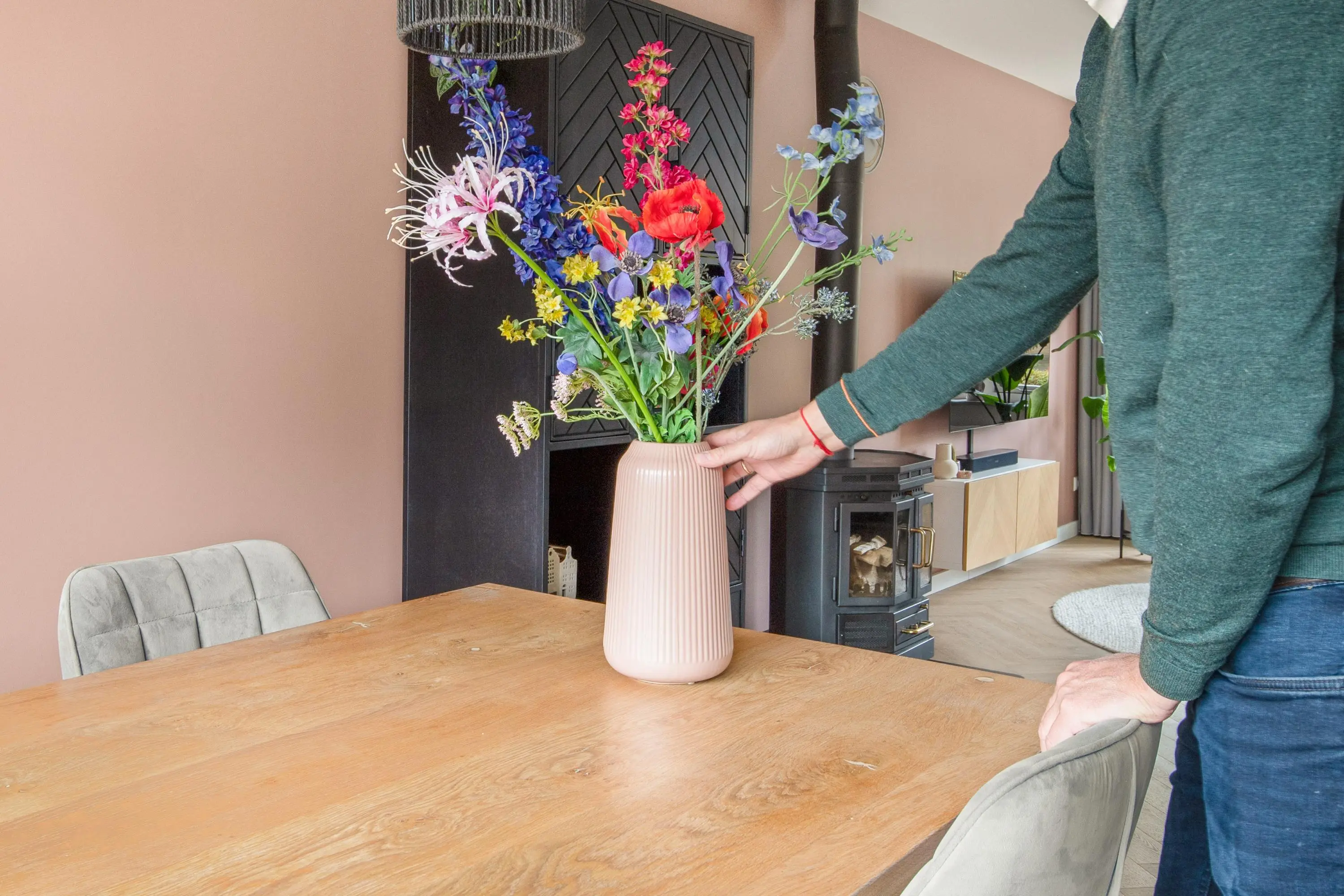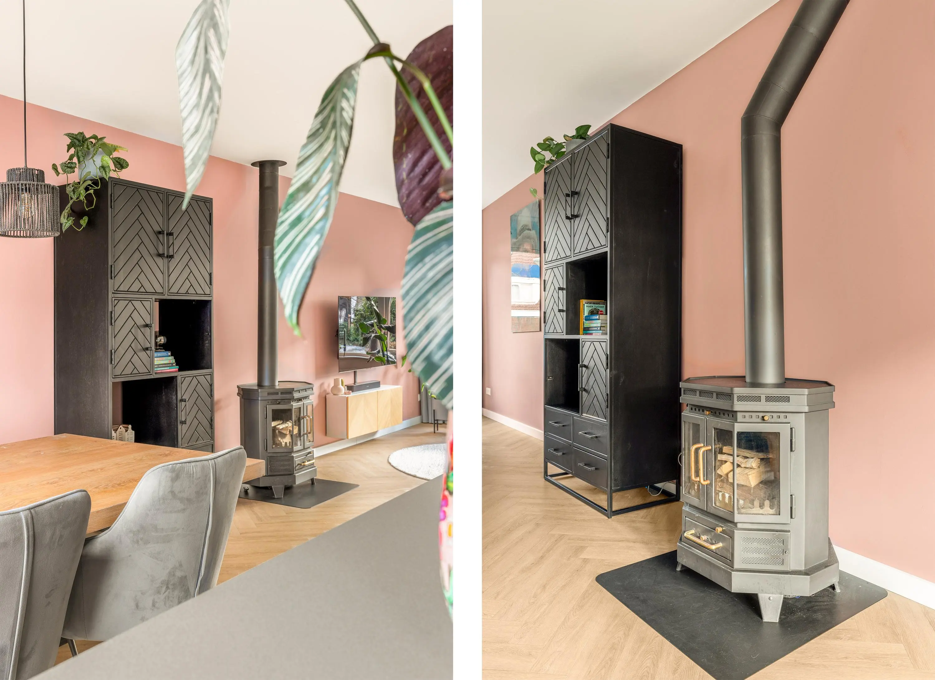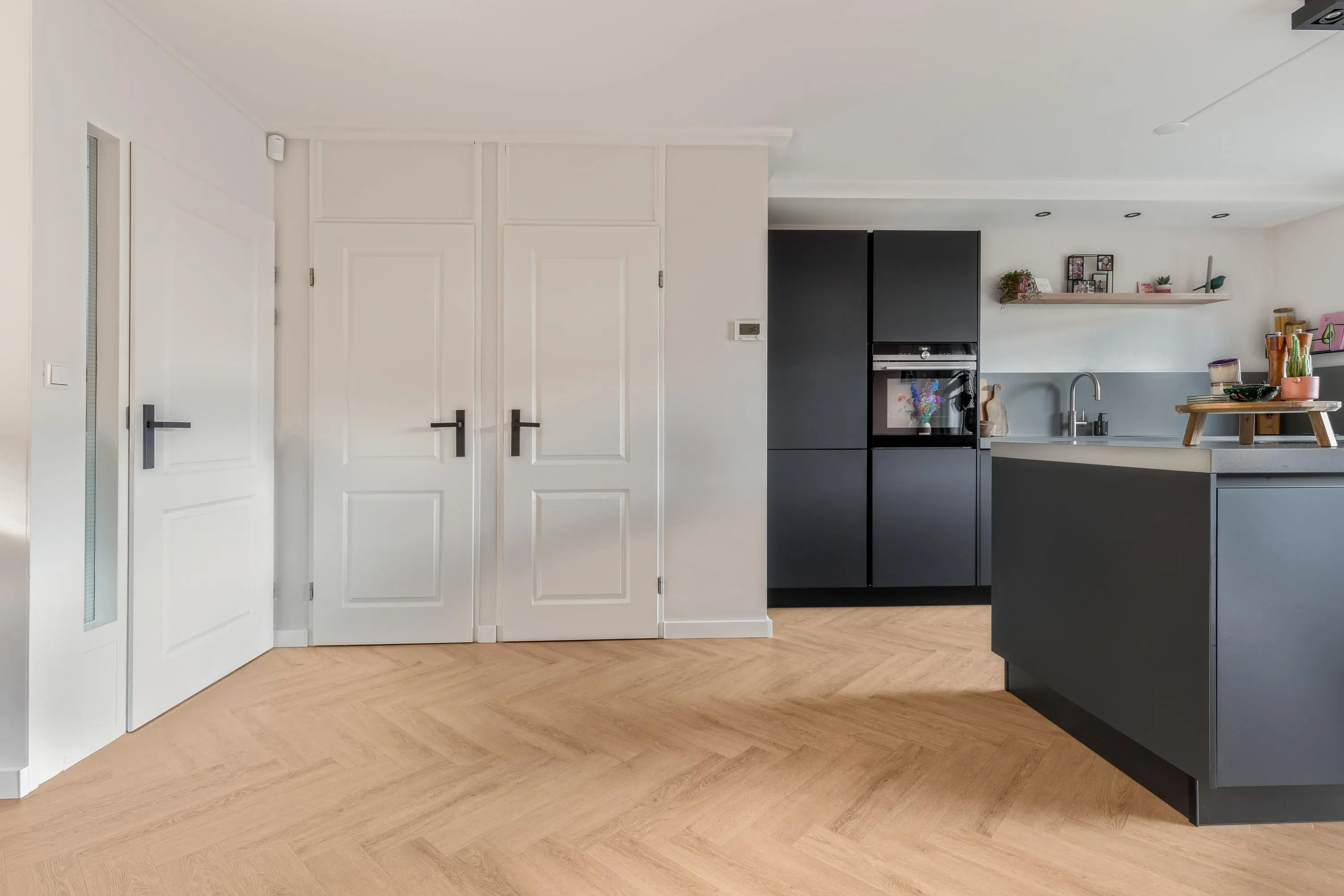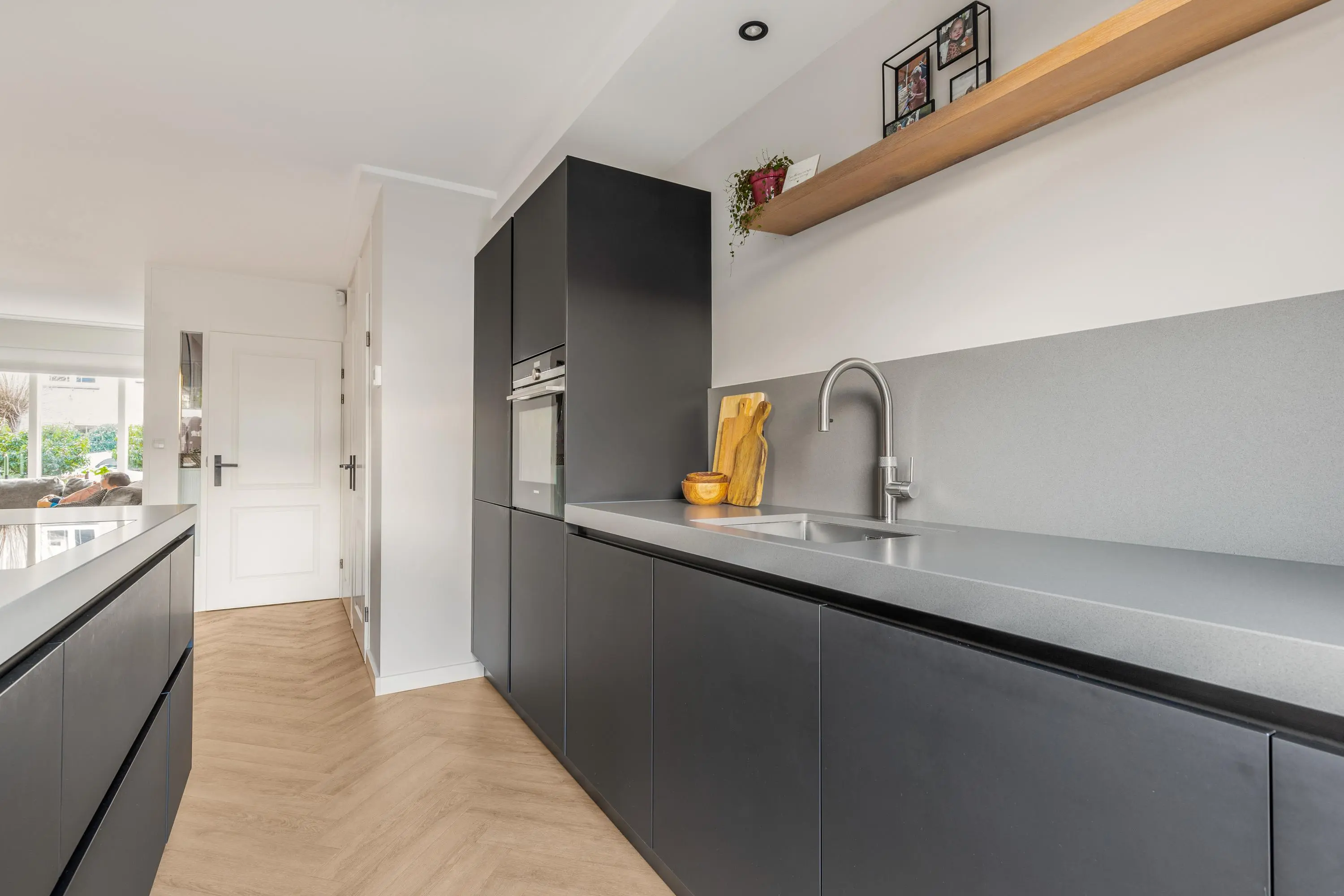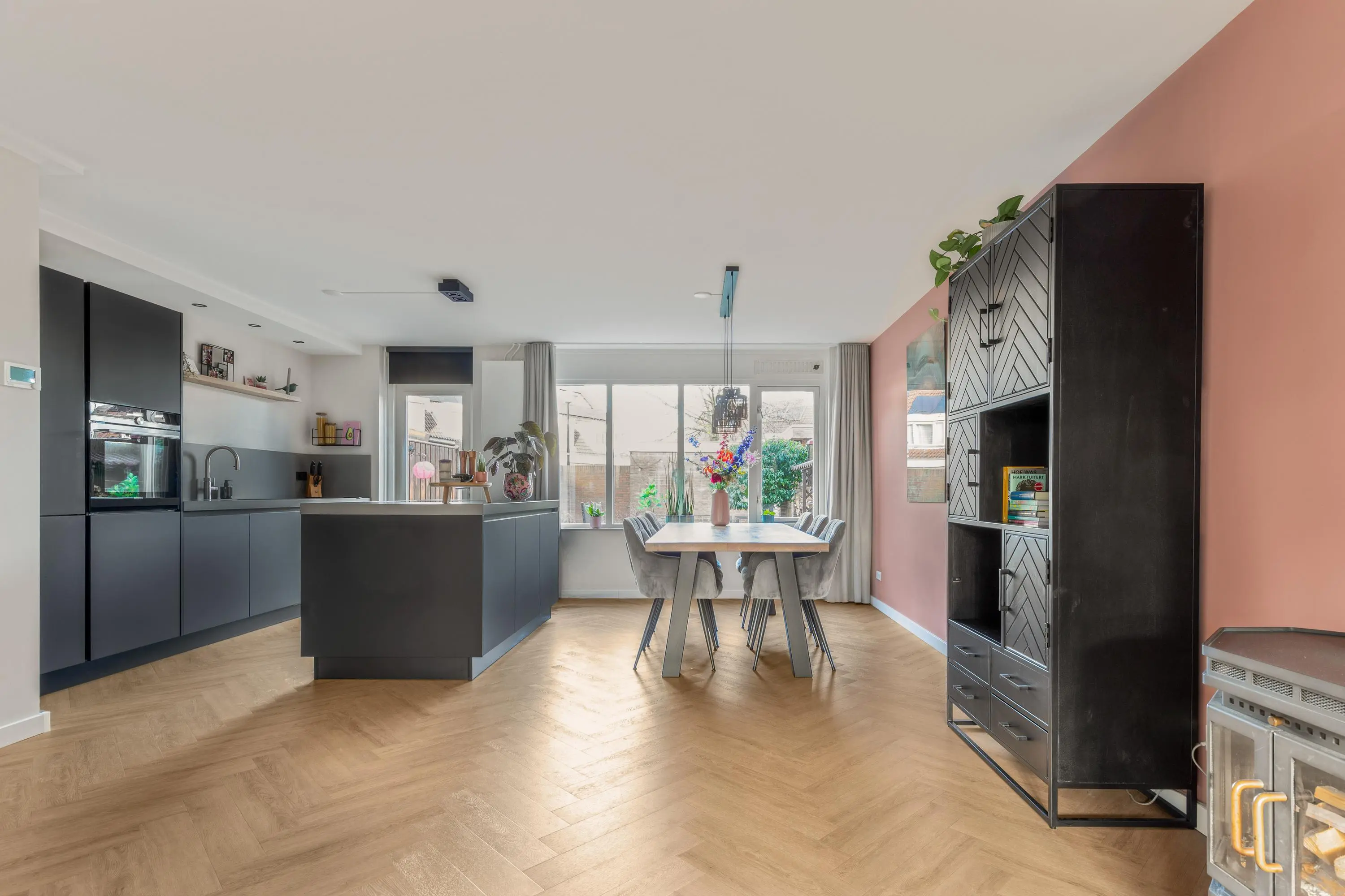 Via de entree kom je in de hal met toegang tot de woonkamer en het separate toilet. De ruime doorzonwoonkamer beschikt over veel natuurlijke lichtinval en is voorzien van een sfeervolle open haard, wat zorgt voor een warme en gezellige uitstraling. De afwerking van de woning is zeer netjes met een prachtige PVC vloer en strak gestukte wanden. De open en zeer moderne keuken (2021) sluit naadloos aan op de woonkamer en is ingericht met een kookeiland. De keuken is uitgerust met diverse inbouwapparatuur, waaronder een inductie kookplaat, vaatwasser en een combi-oven. Deze heerlijke woonkeuken is een ideale ruimte voor gezellige avonden met familie en vrienden.