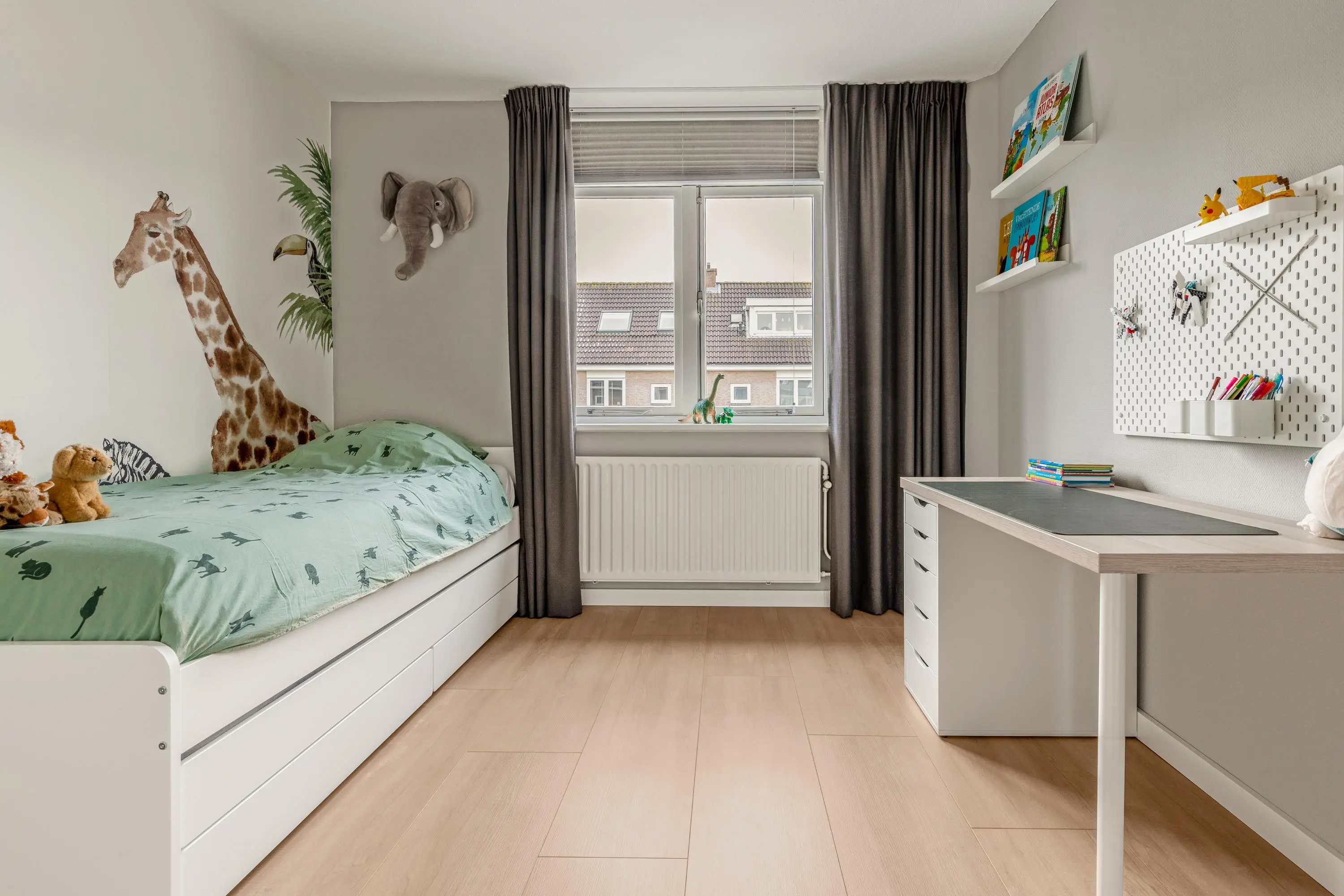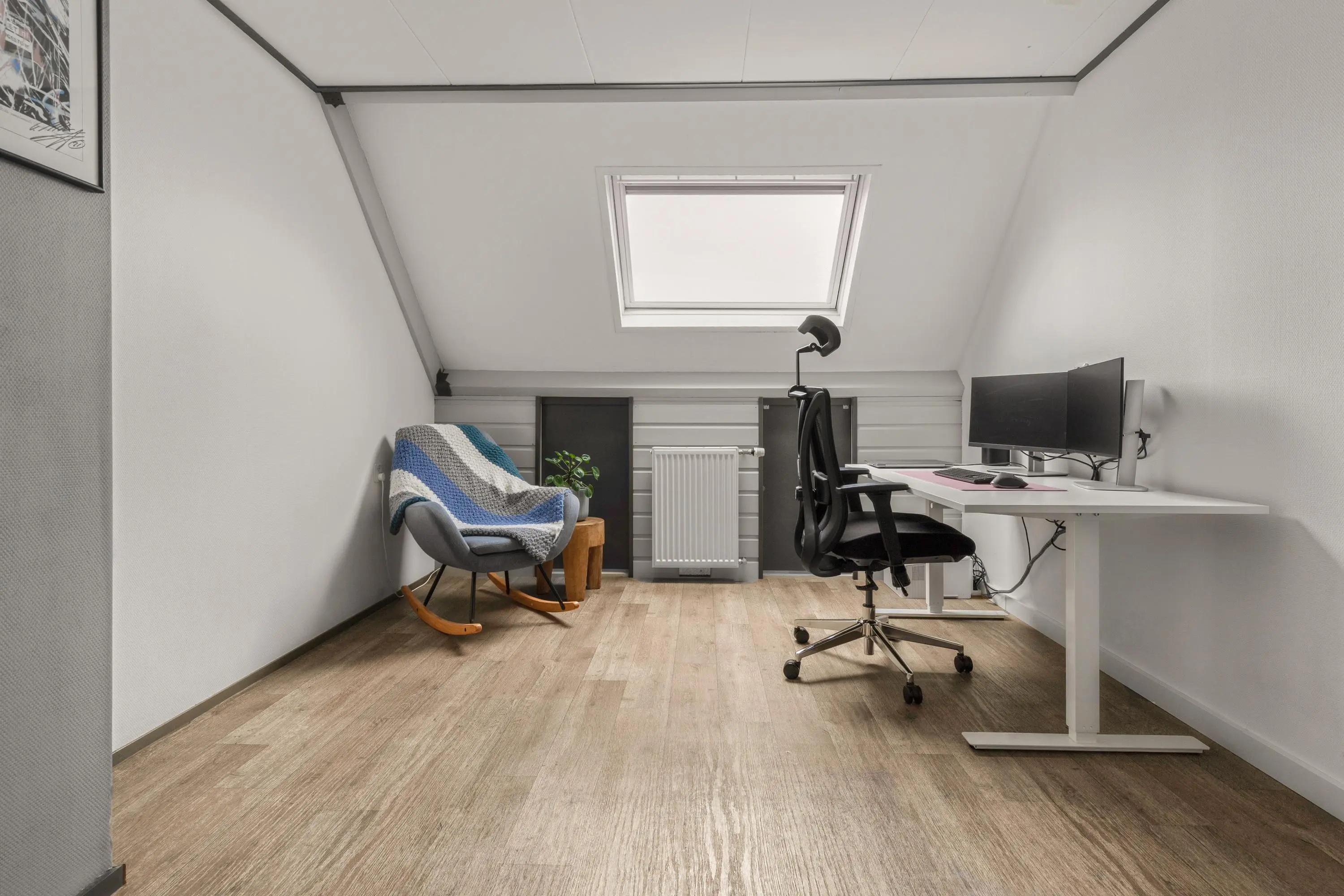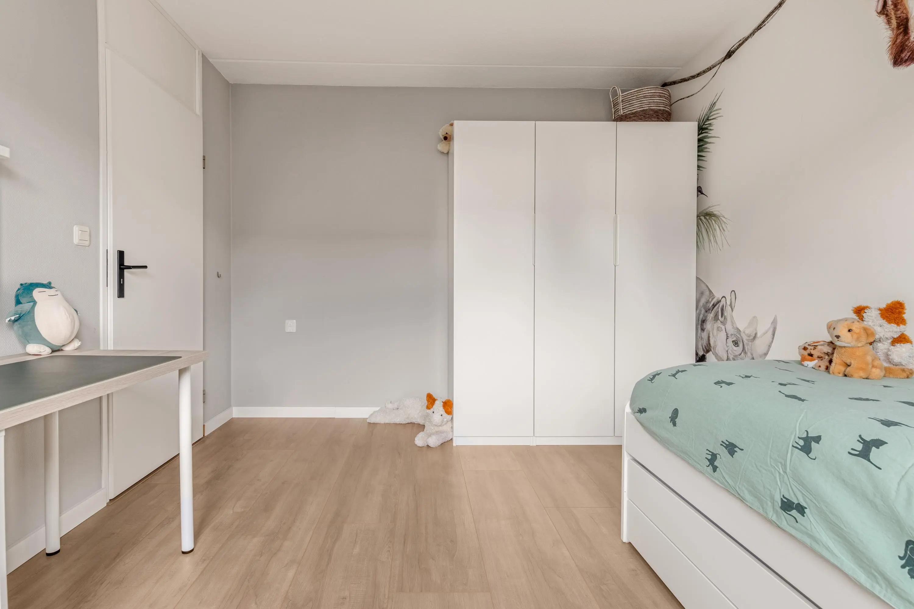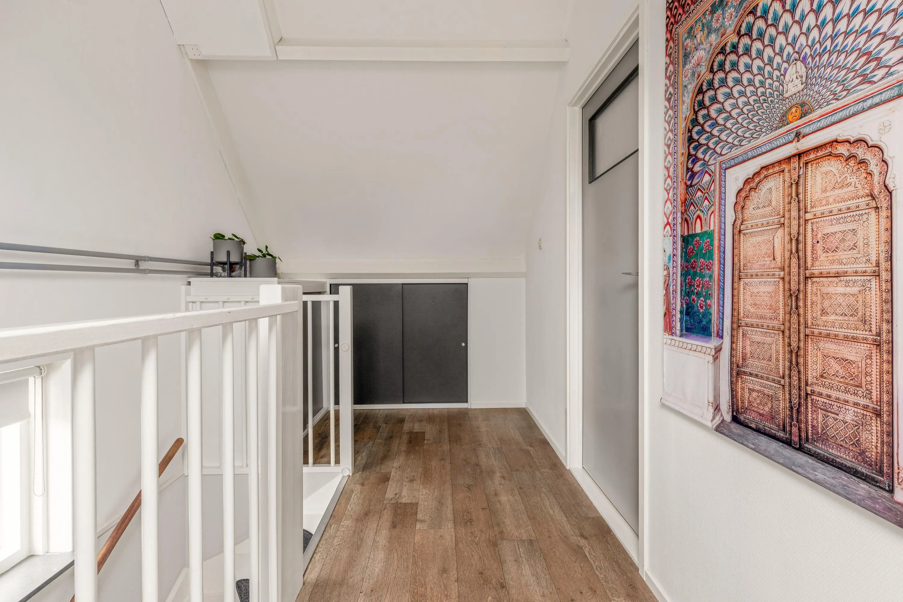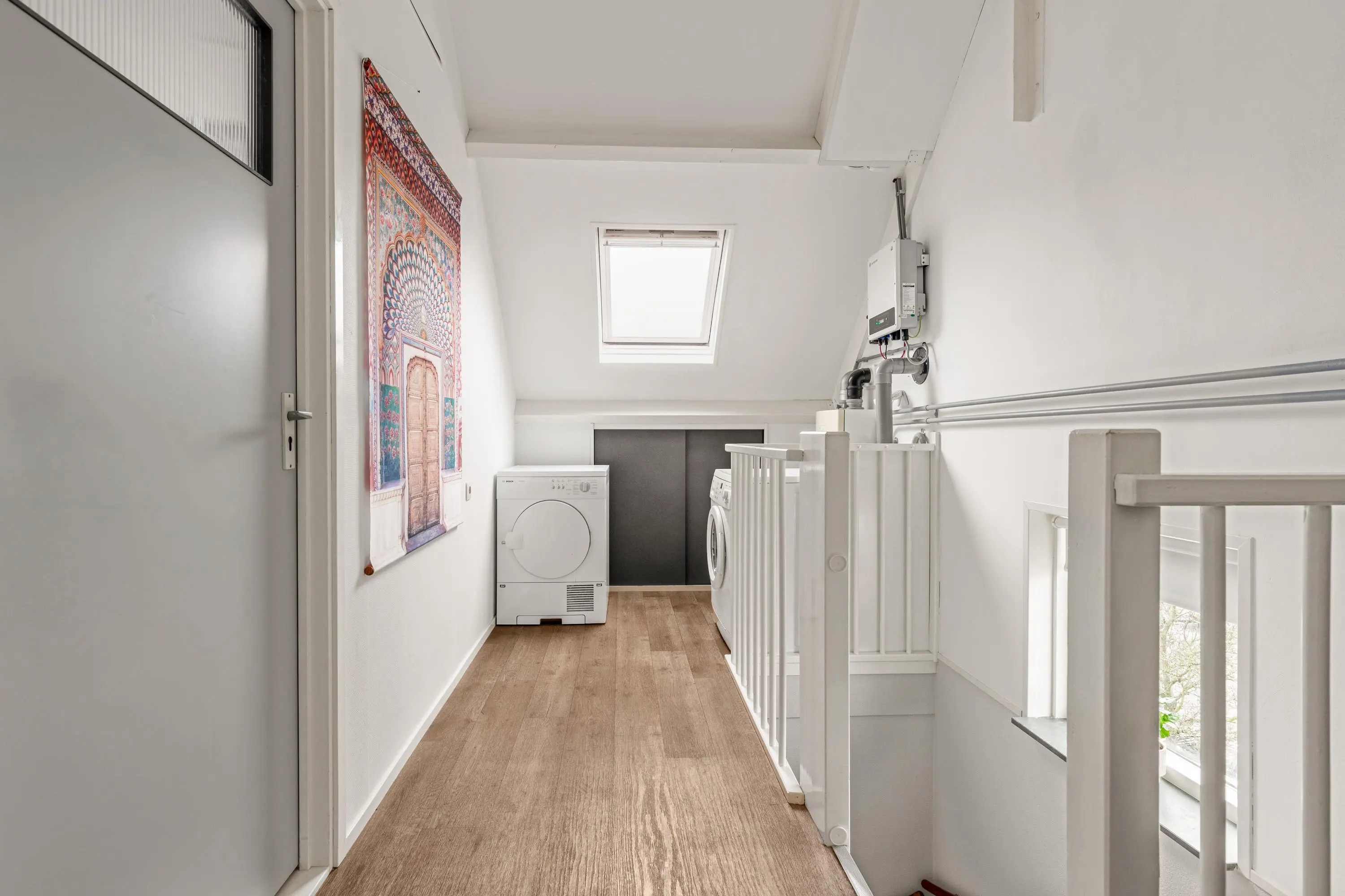 Op de eerste verdieping bevinden zich drie goed bemeten slaapkamers. De kleinere kamer is uitermate geschikt als garderobe, werk- of babykamer. De ruime badkamer bevindt zich aan de voorzijde van de woning en is voorzien van een toilet, wastafelmeubel en douche. Op de tweede verdieping tref je de vierde slaapkamer van deze fijne woning. Op deze verdieping vind je verder de benodigde aansluitingen voor de wasmachine en droger en handige knieschotten voor extra opbergruimte.