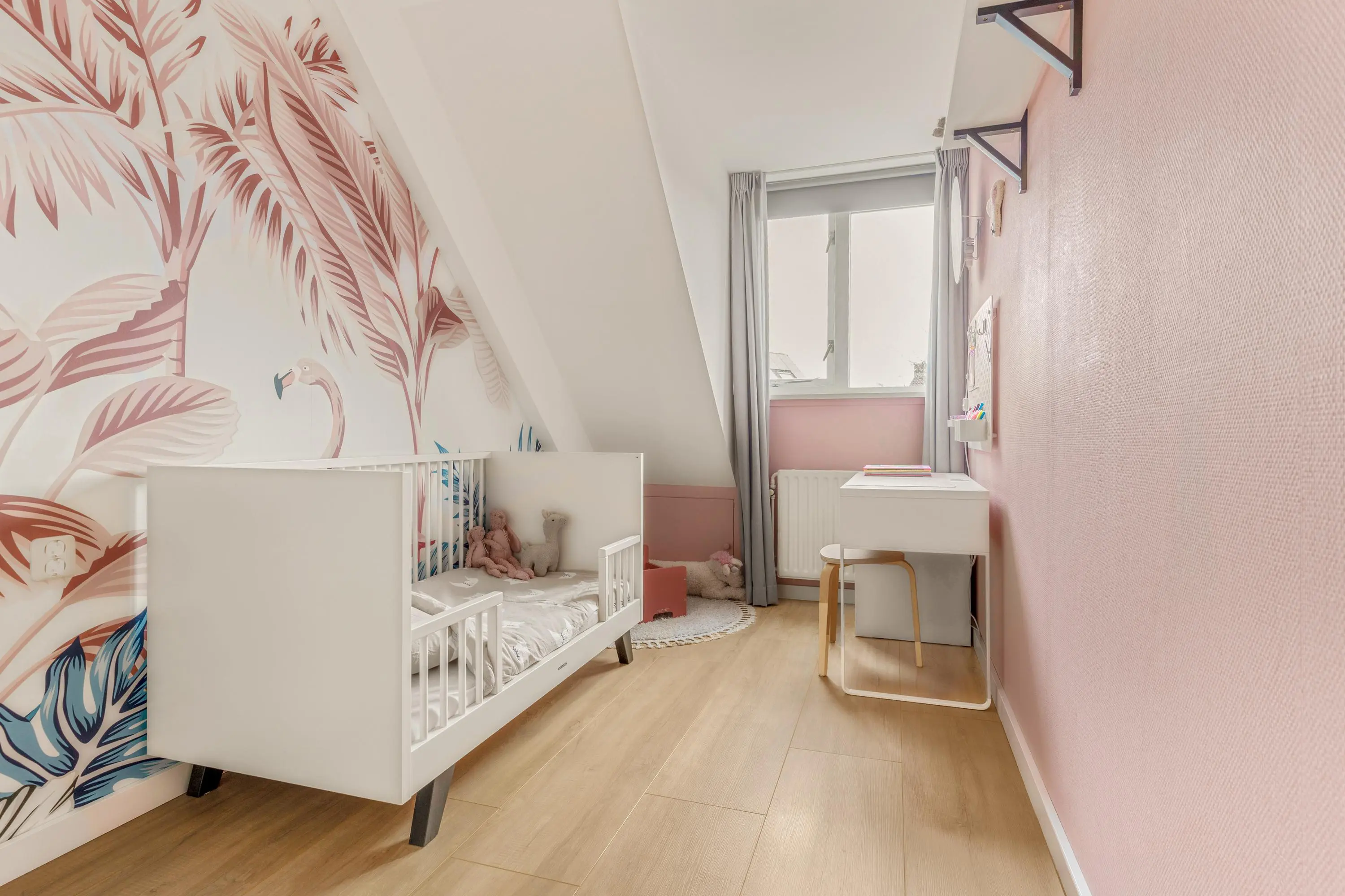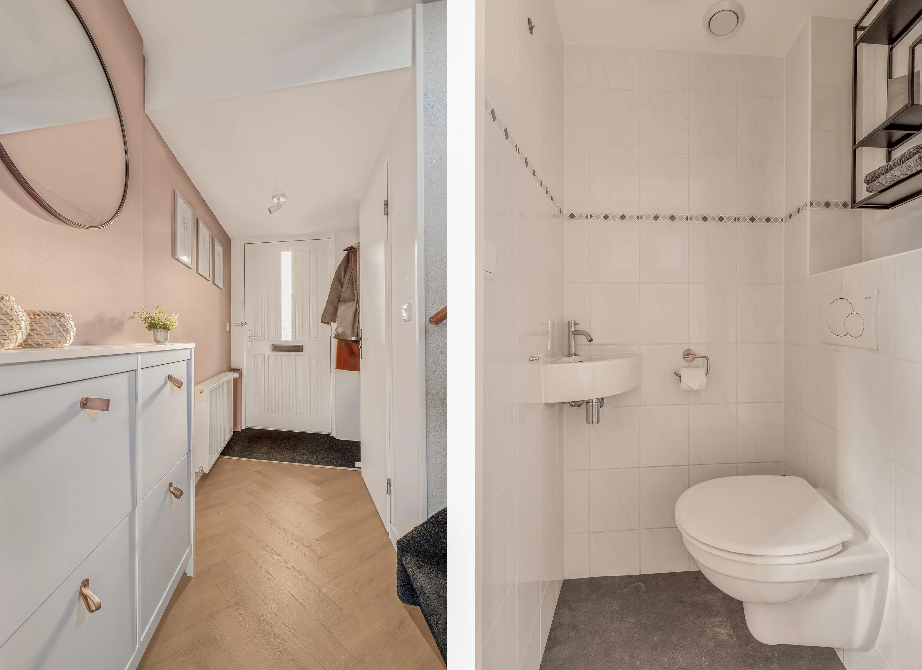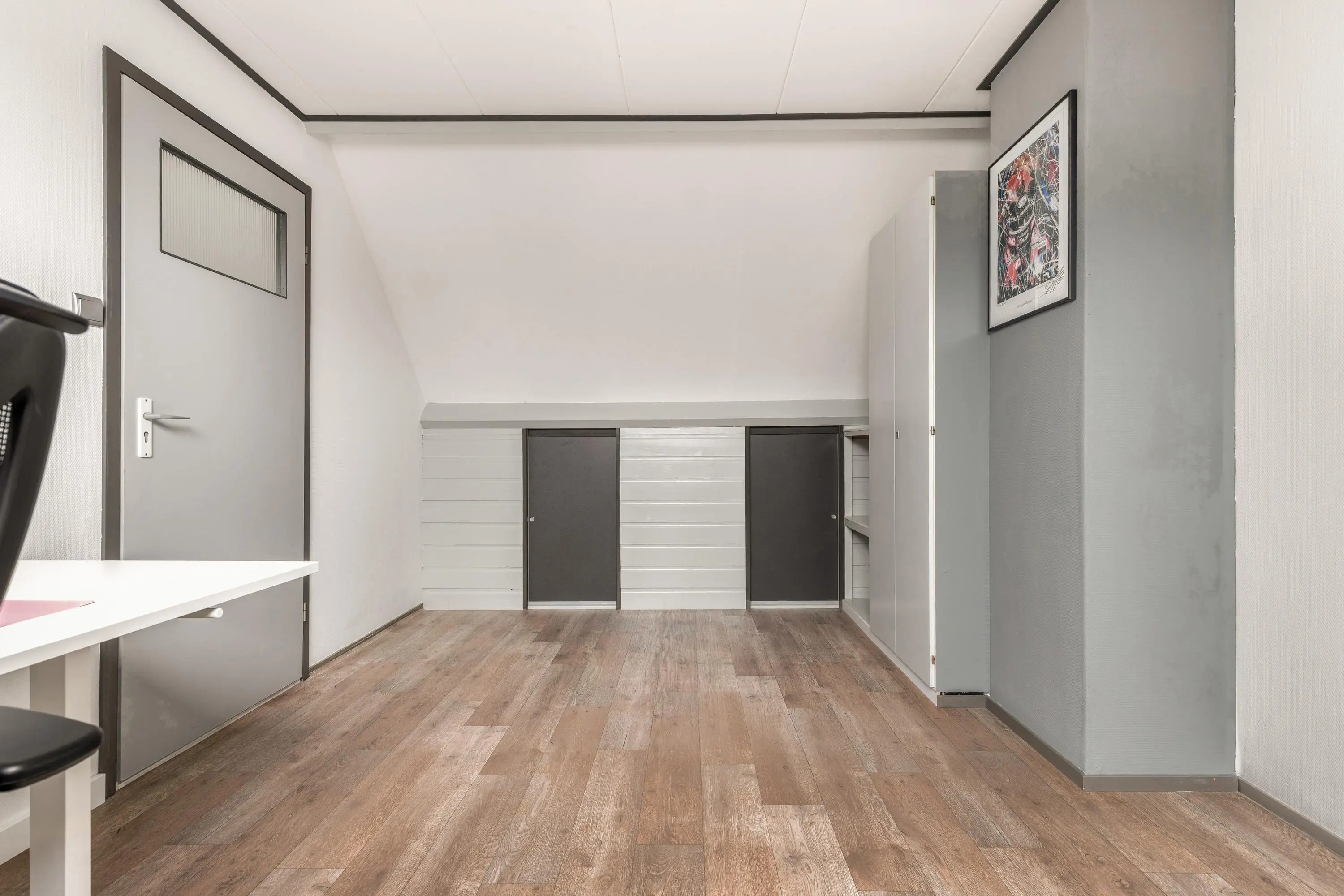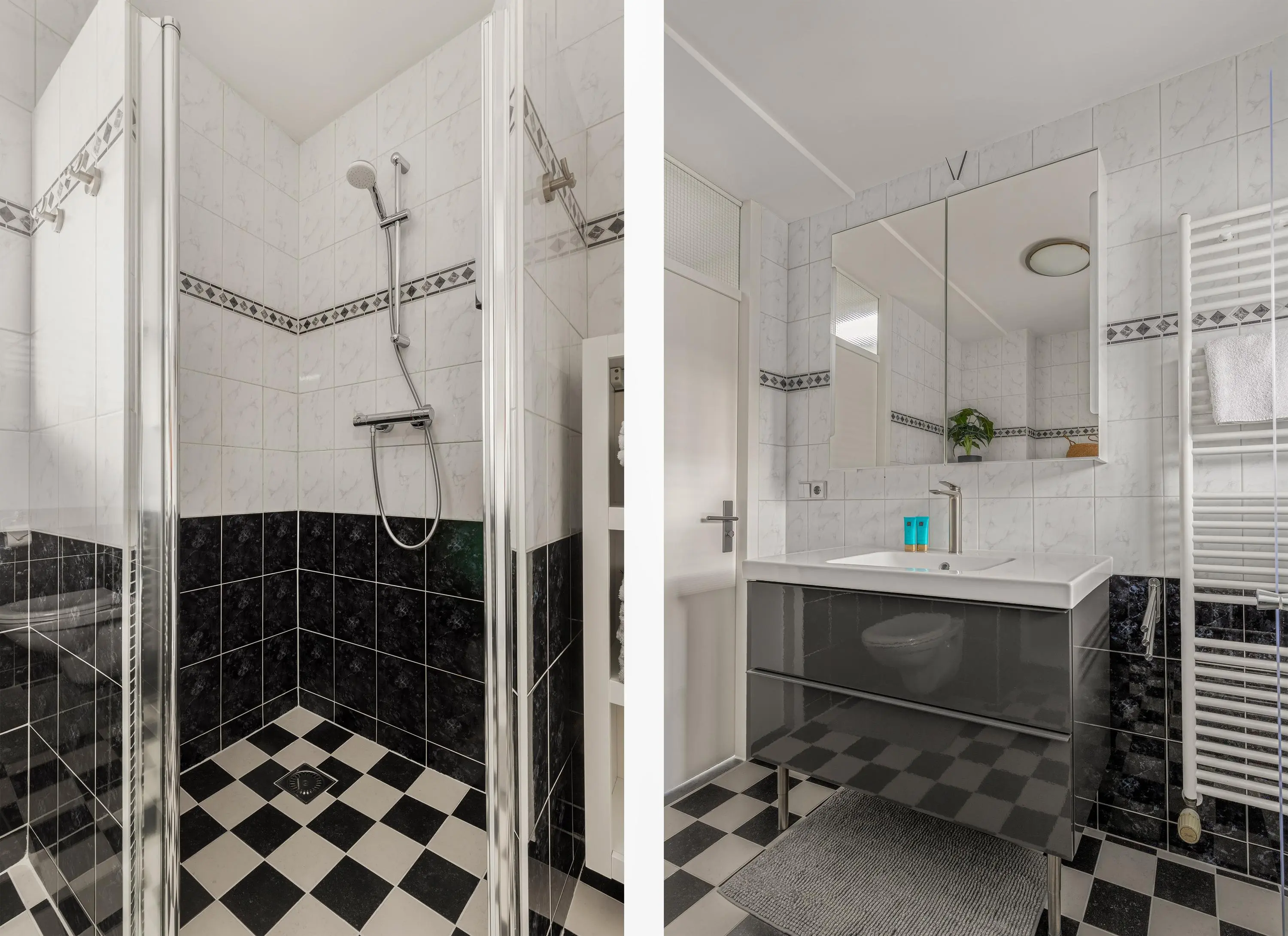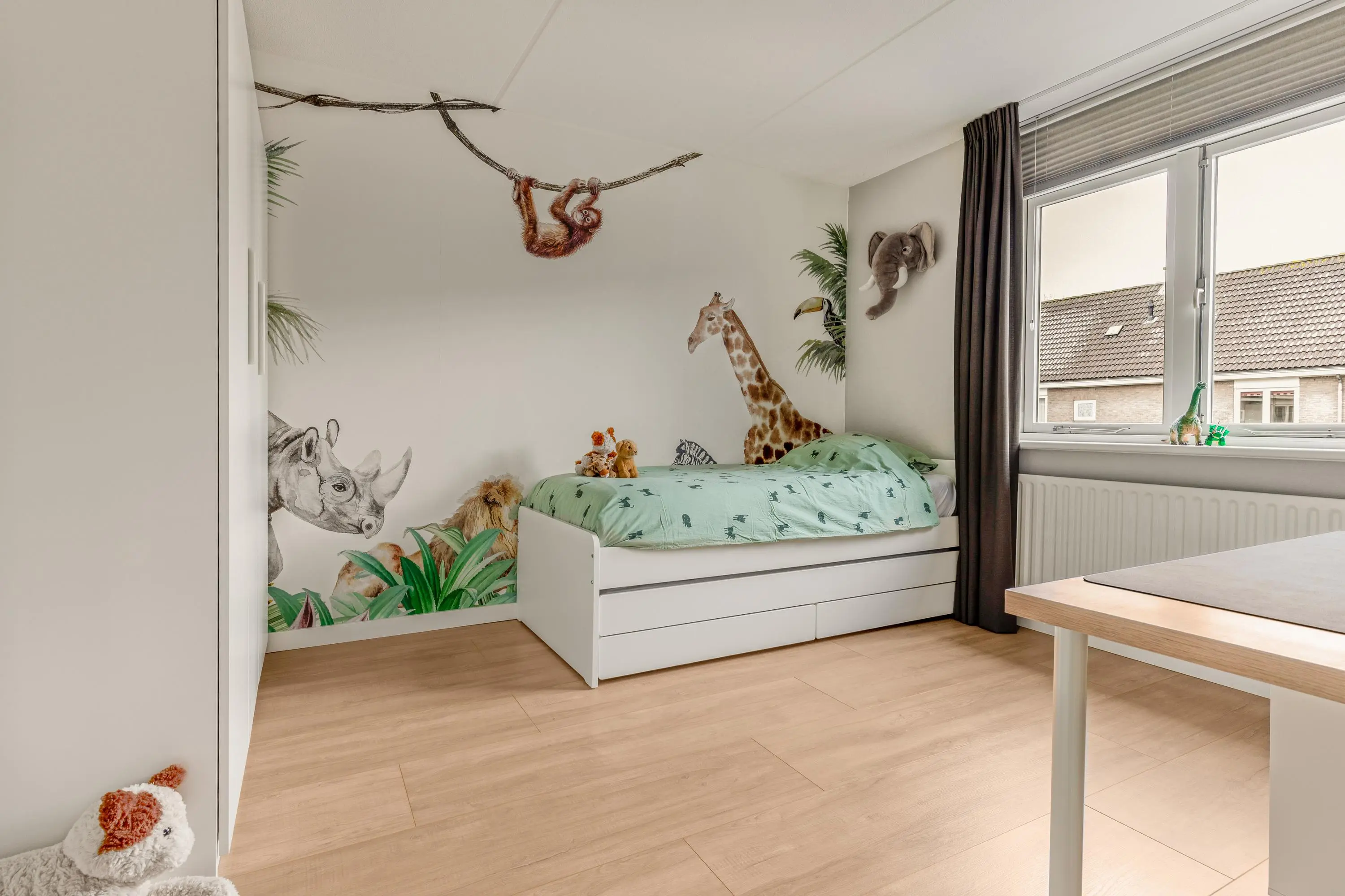 Op de eerste verdieping bevinden zich drie goed bemeten slaapkamers. De kleinere kamer is uitermate geschikt als garderobe, werk- of babykamer. De ruime badkamer bevindt zich aan de voorzijde van de woning en is voorzien van een toilet, wastafelmeubel en douche. Op de tweede verdieping tref je de vierde slaapkamer van deze fijne woning. Op deze verdieping vind je verder de benodigde aansluitingen voor de wasmachine en droger en handige knieschotten voor extra opbergruimte.