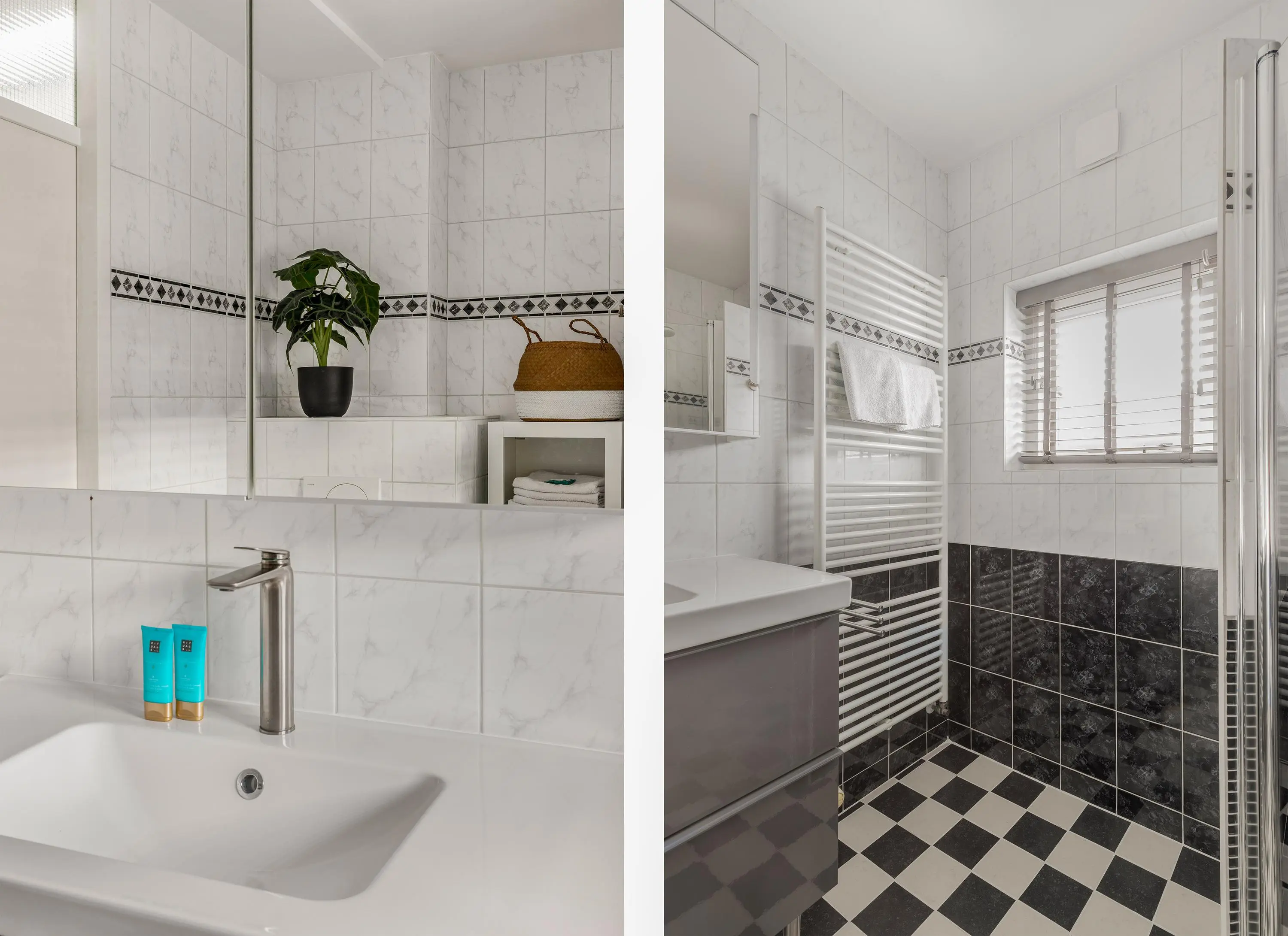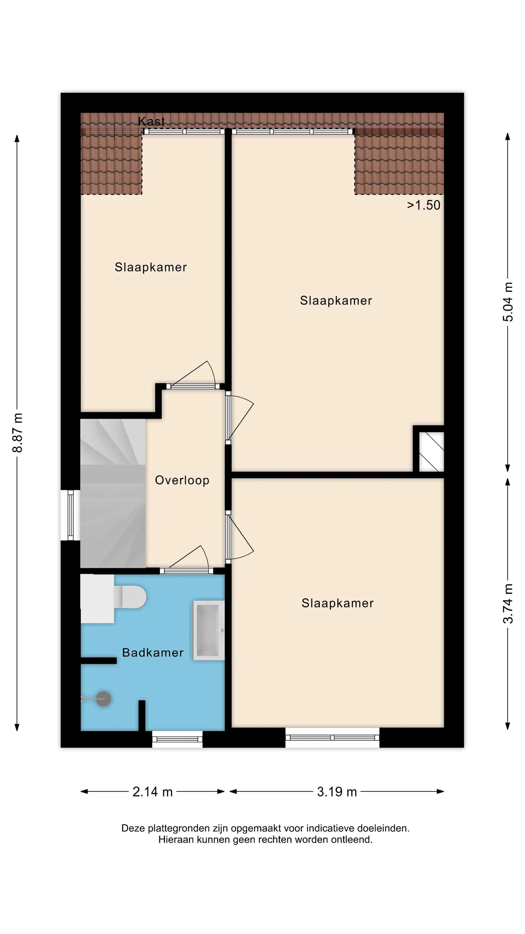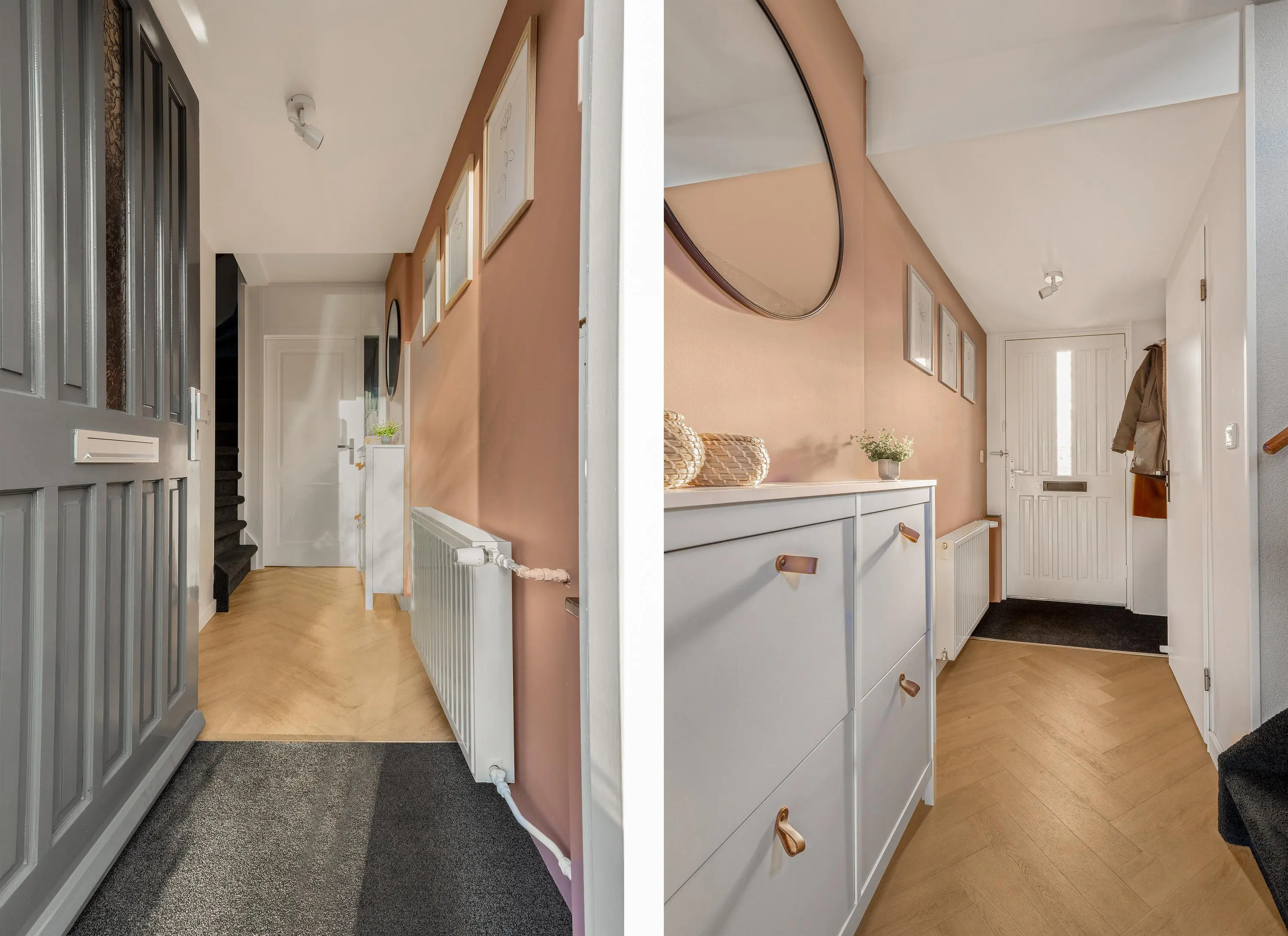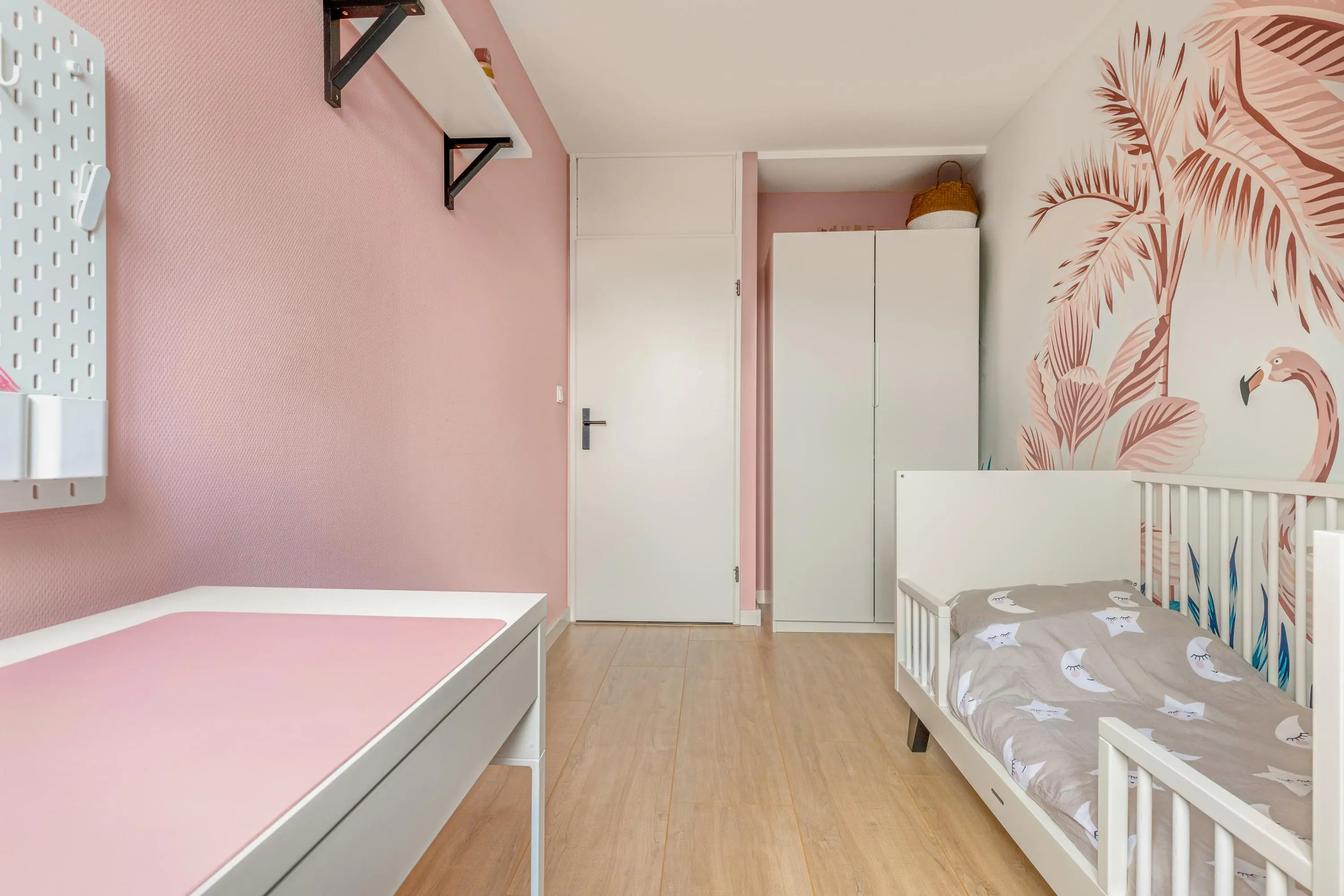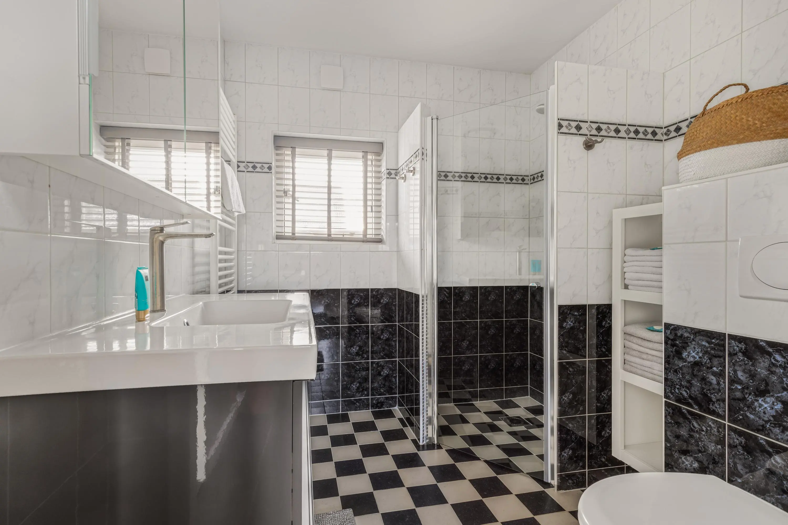 Op de eerste verdieping bevinden zich drie goed bemeten slaapkamers. De kleinere kamer is uitermate geschikt als garderobe, werk- of babykamer. De ruime badkamer bevindt zich aan de voorzijde van de woning en is voorzien van een toilet, wastafelmeubel en douche. Op de tweede verdieping tref je de vierde slaapkamer van deze fijne woning. Op deze verdieping vind je verder de benodigde aansluitingen voor de wasmachine en droger en handige knieschotten voor extra opbergruimte.