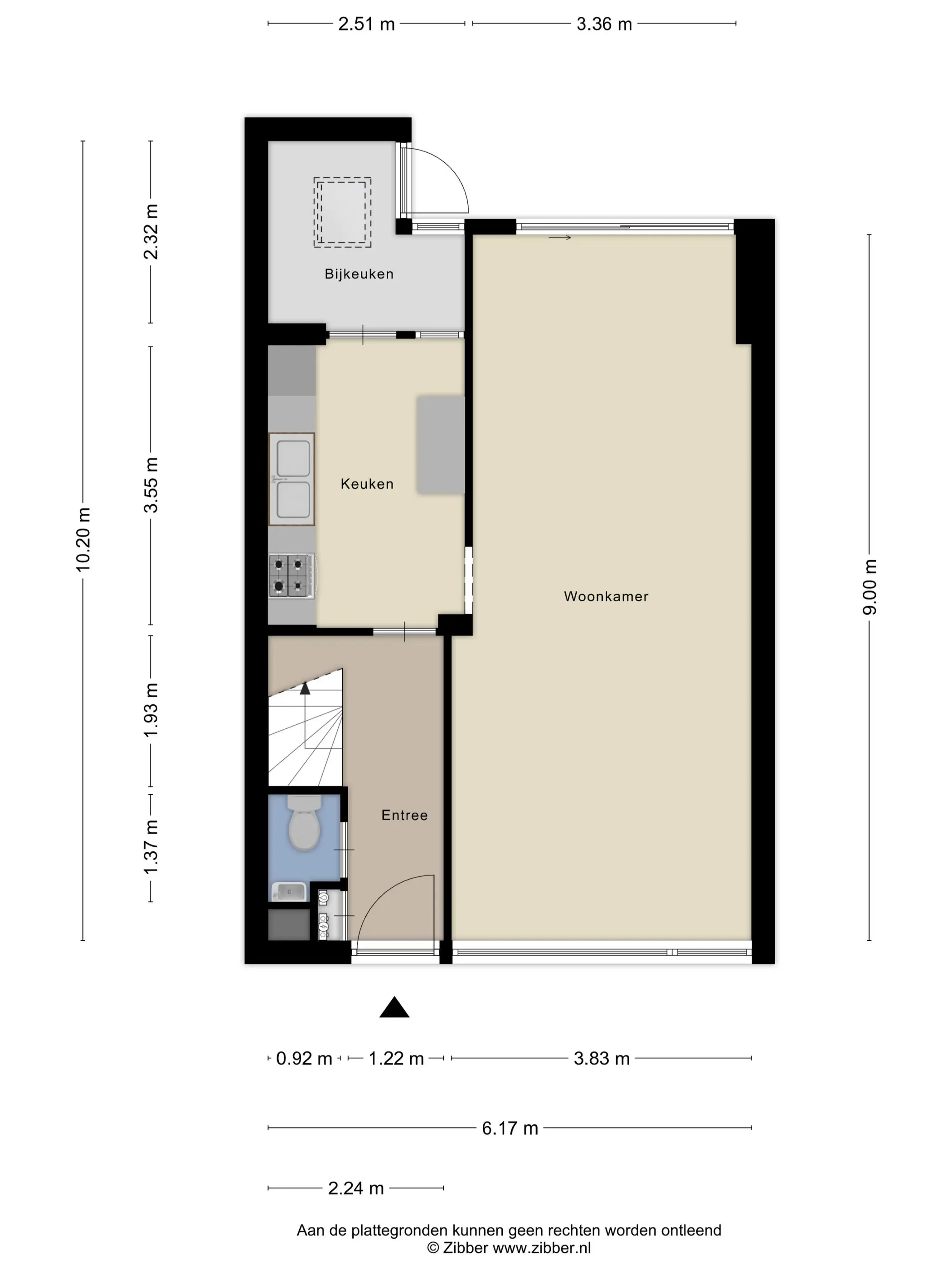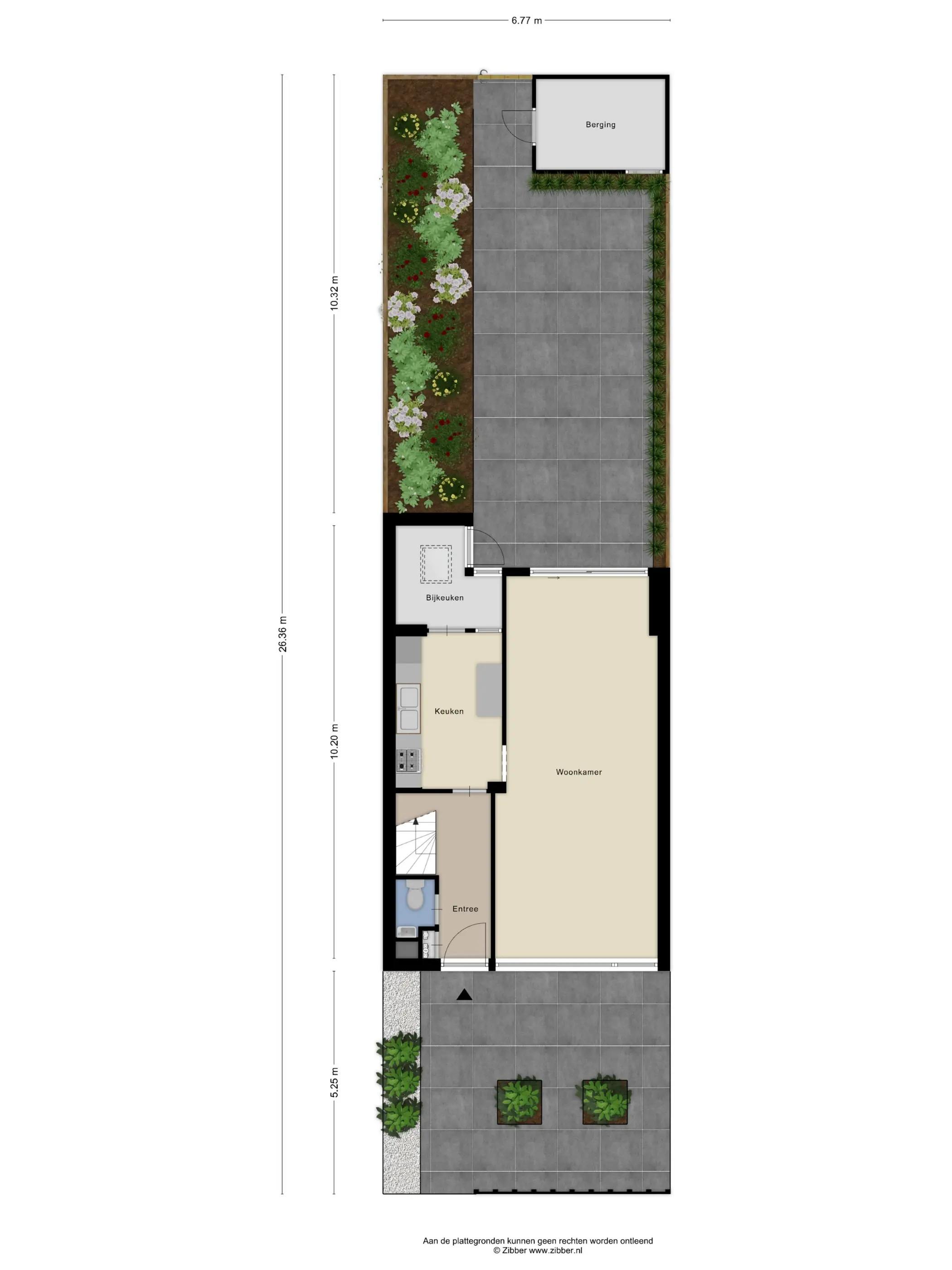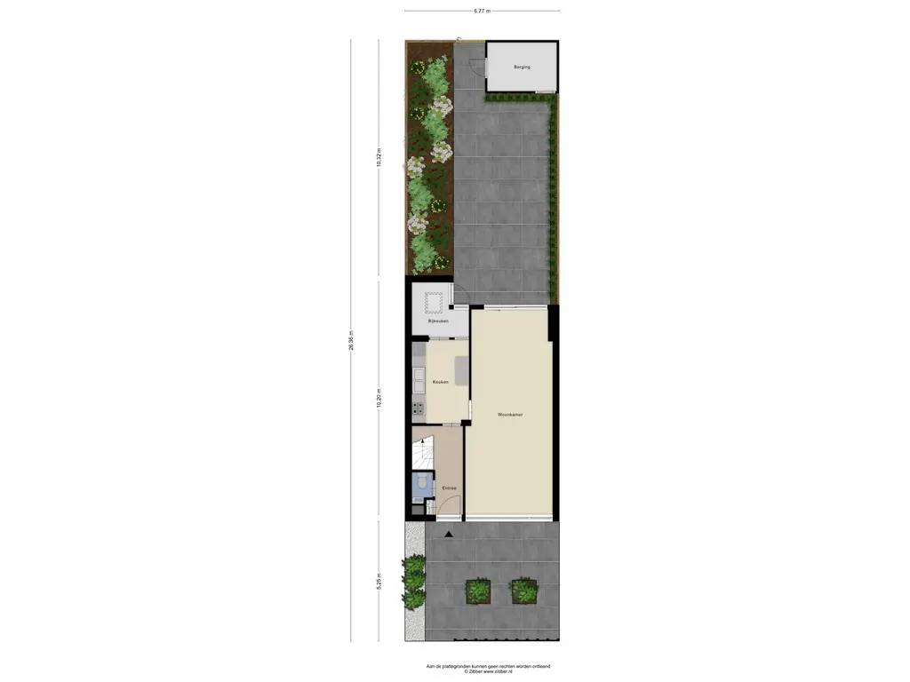 - op de begane grond uitgebouwd over de volle breedte inclusief bijkeuken