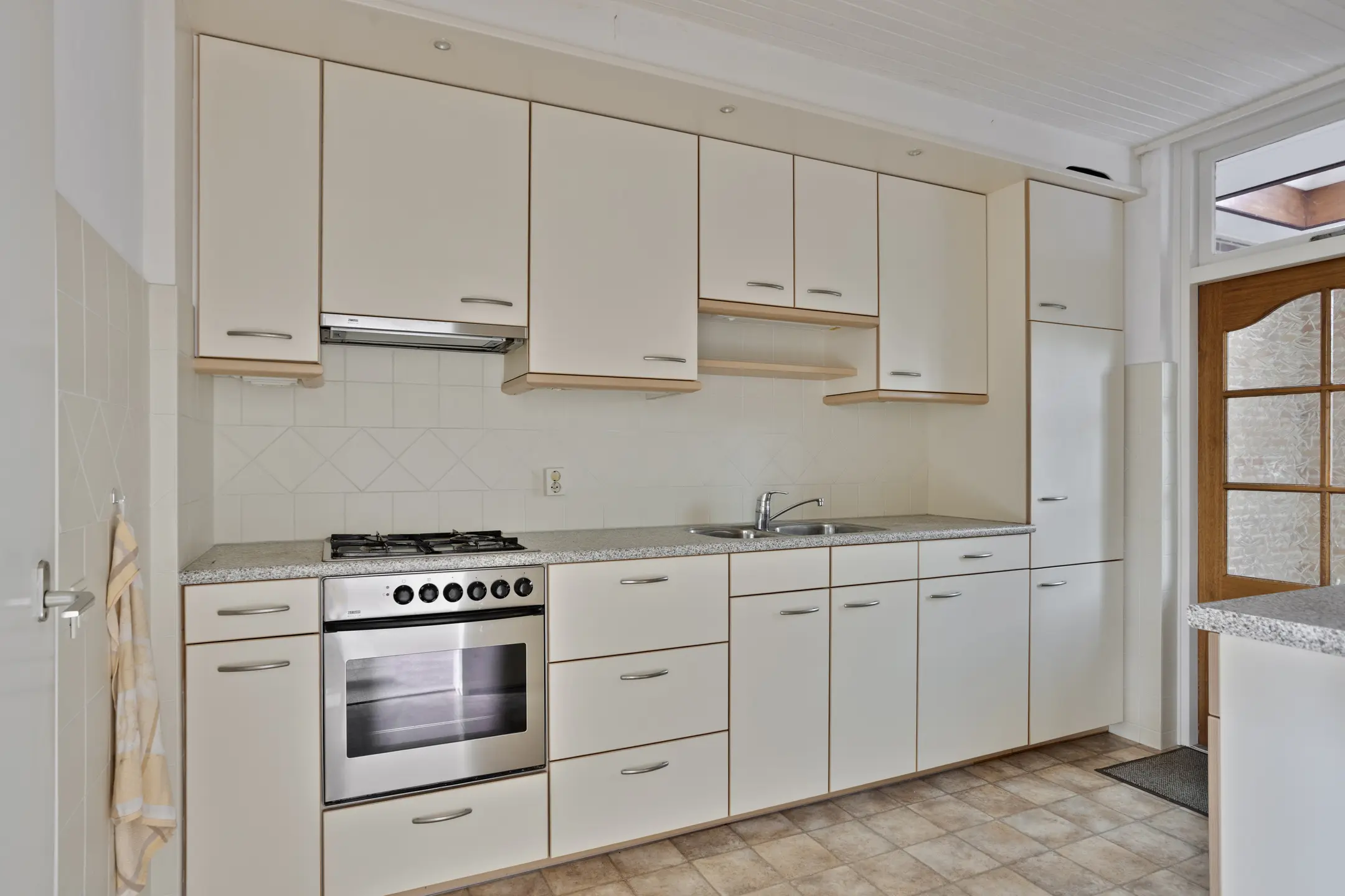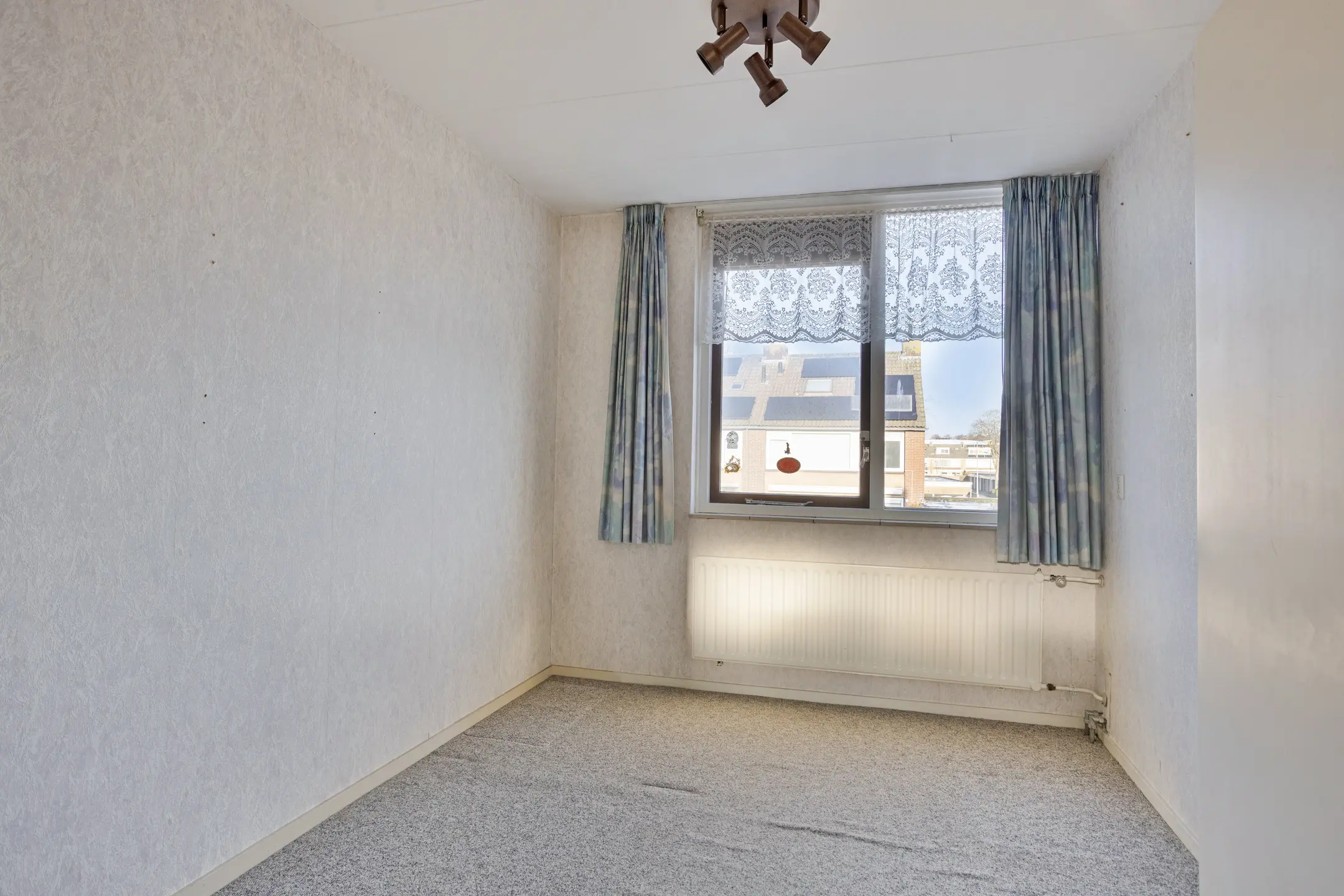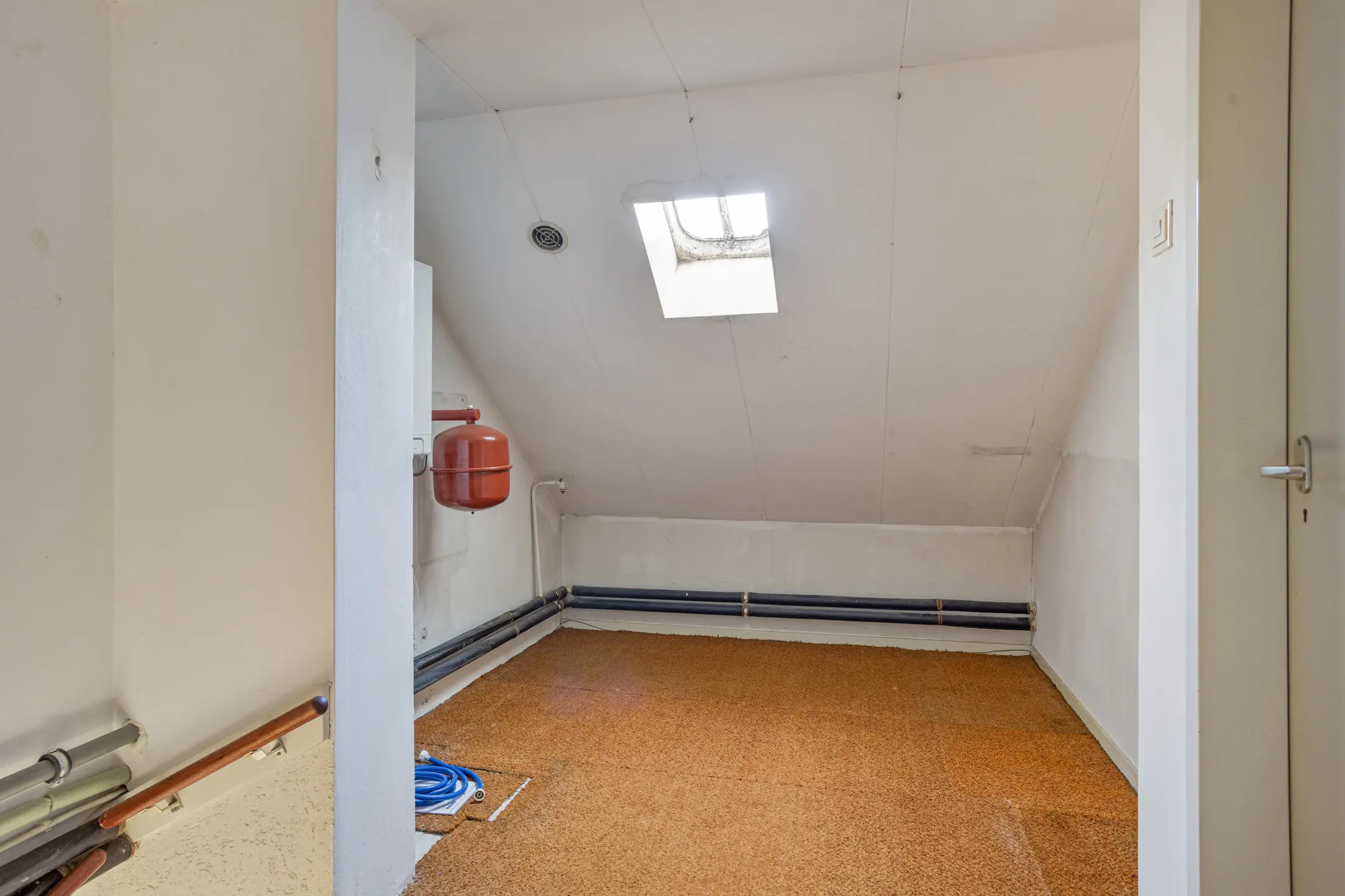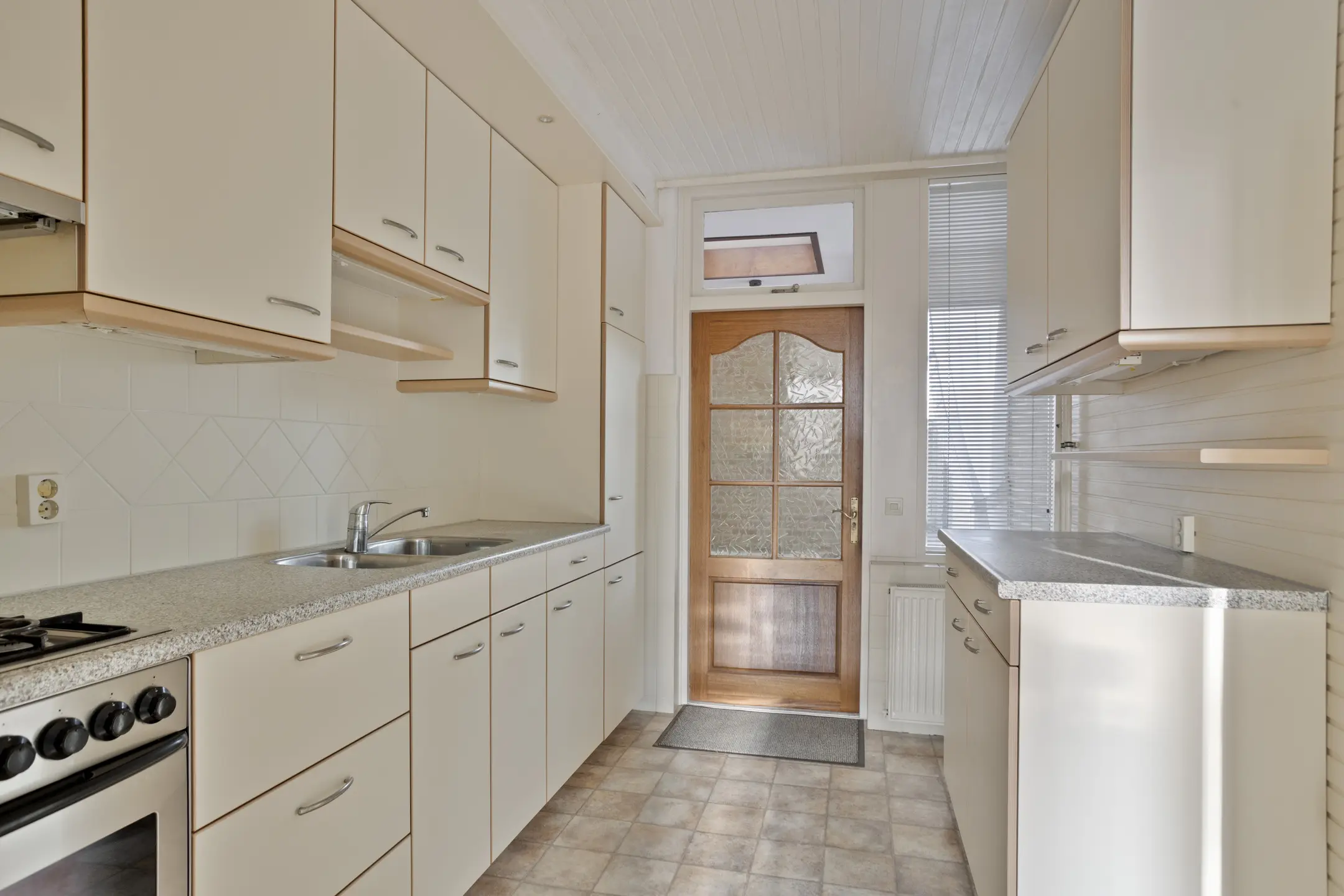 Indeling: entree/hal met o.a. garderobe en trapopgang naar de 1e verdieping. Toiletruimte. Goed bemeten doorzonkamer met een uitstekende lichtinval (lengte ca. 9 meter) en voorzien van een schuifpui. De keuken beschikt over een eenvoudige opstelling met ideale bijkeuken en ook van hieruit heeft u toegang tot de achtertuin.1e verdieping: overloop met vaste trap naar de 2e verdieping. 3-tal goed bemeten slaapkamers met vaste kasten. Ruime maar eenvoudige badkamer. 2e verdieping: flinke voorzolder met o.a. de opstelling voor het witgoed alsmede de 4e (slaap)kamer voorzien van een dakkapel.