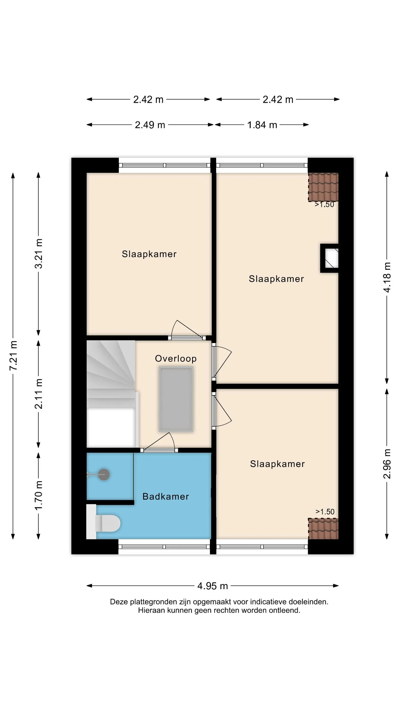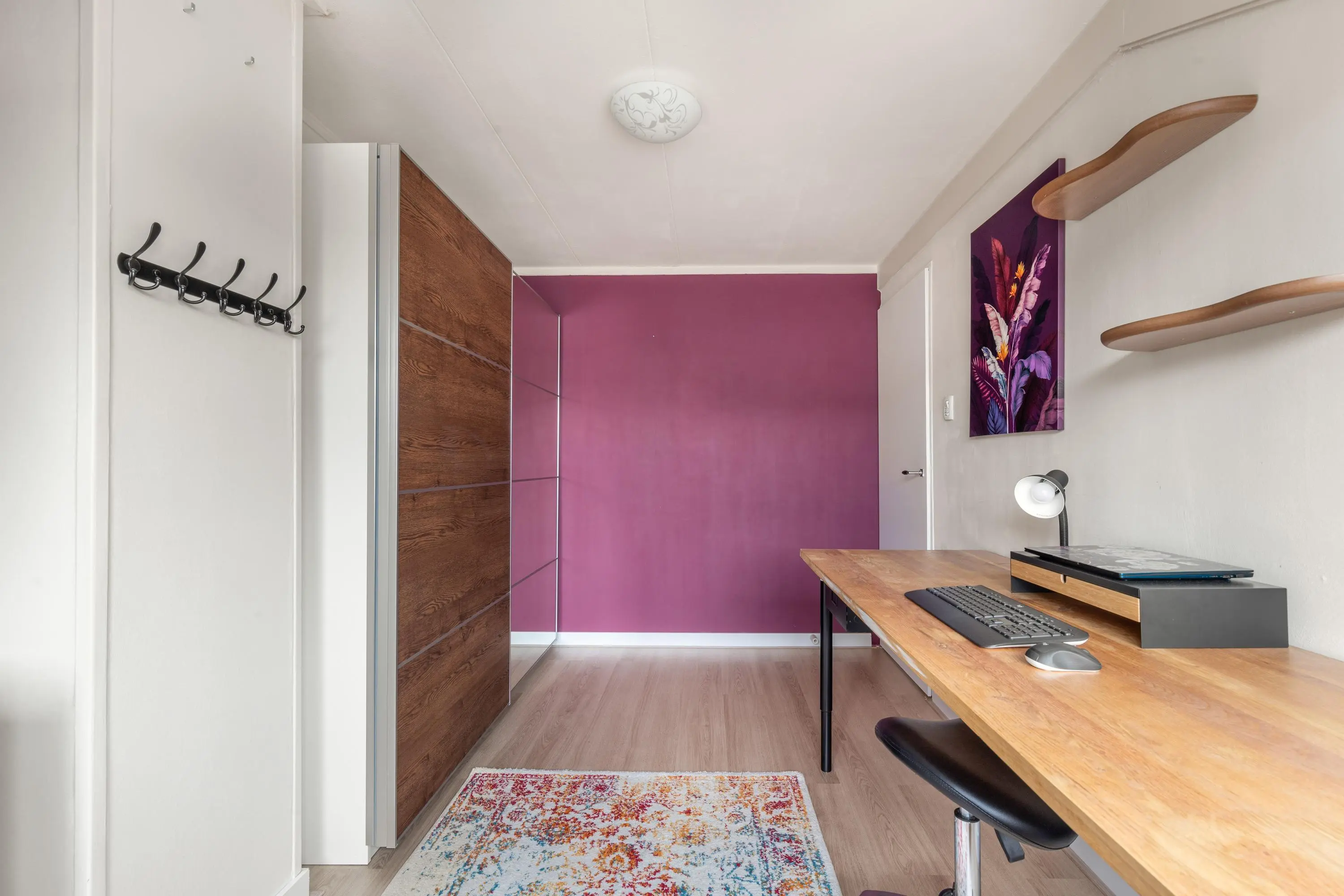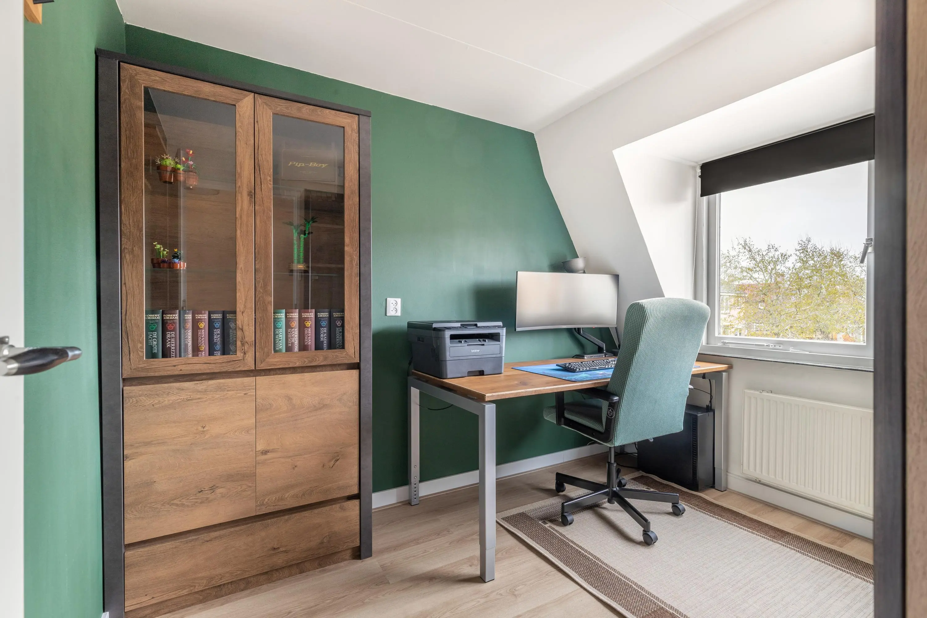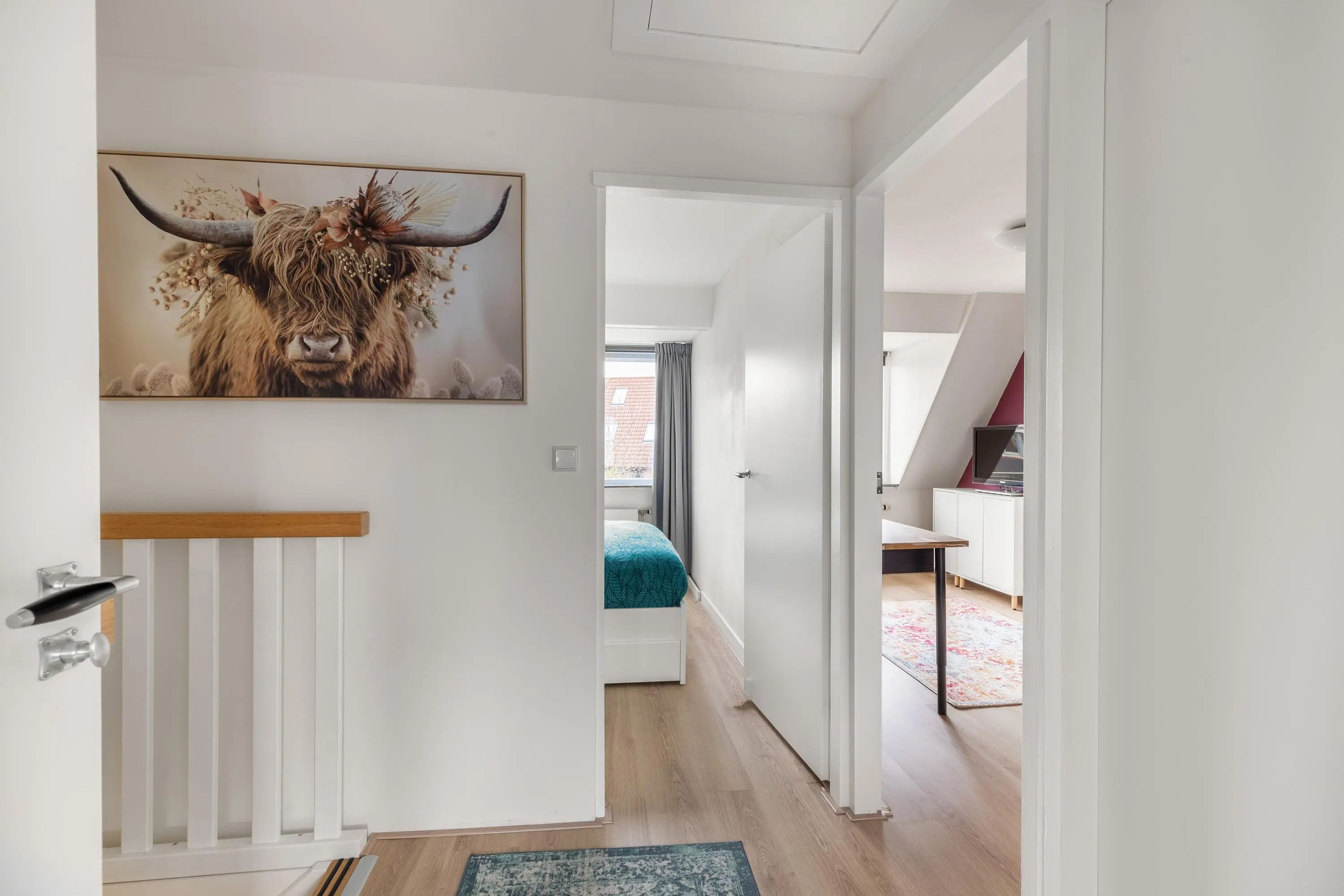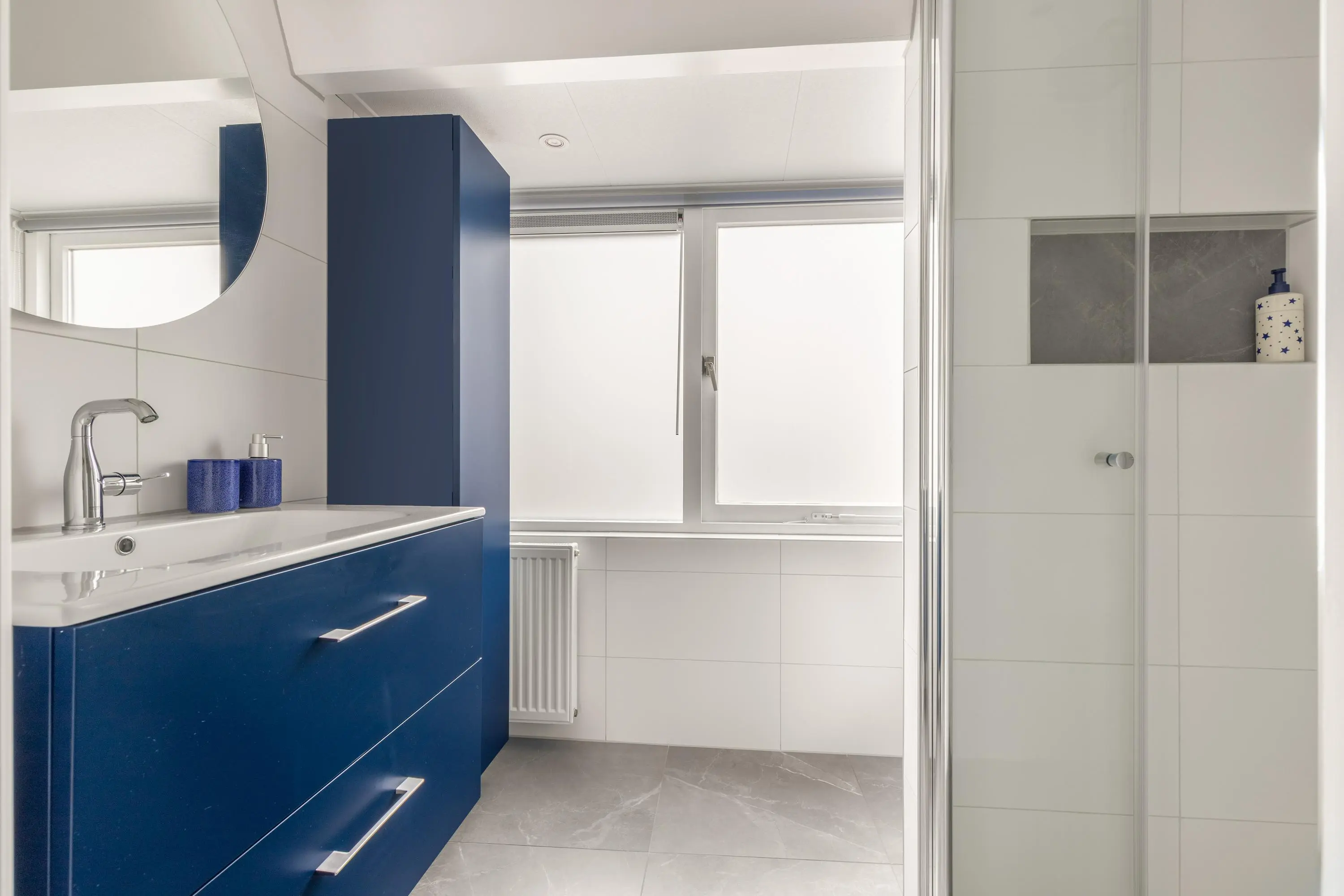 De trap brengt je naar de 1e verdieping met drie goede slaapkamers en badkamer, alsmede een vliering voor flink wat extra opbergruimte. De badkamer uit 2022 voelt comfortabel, licht en modern.